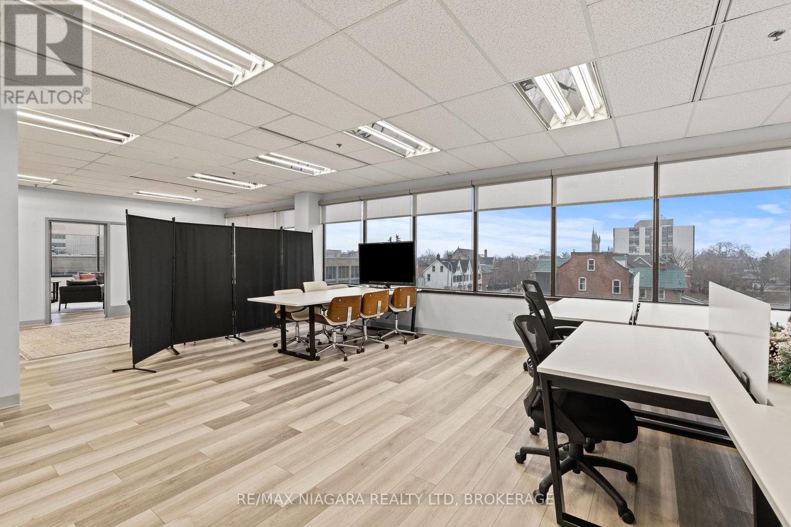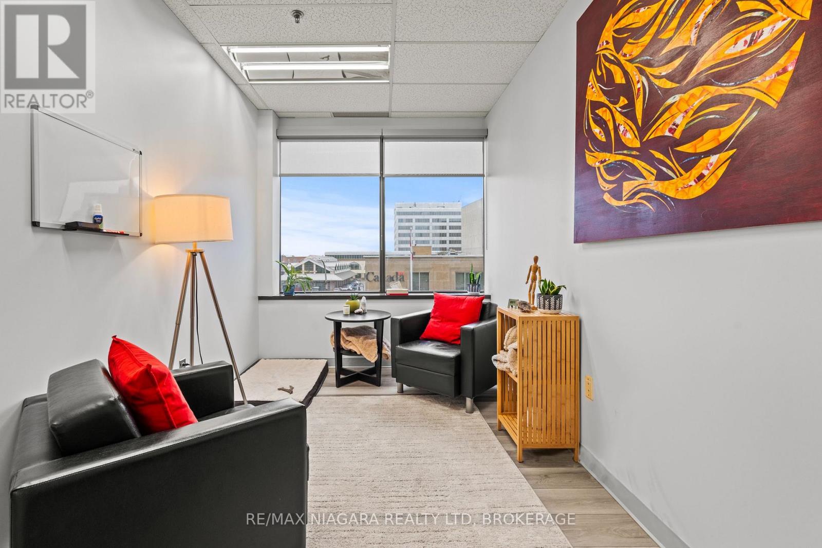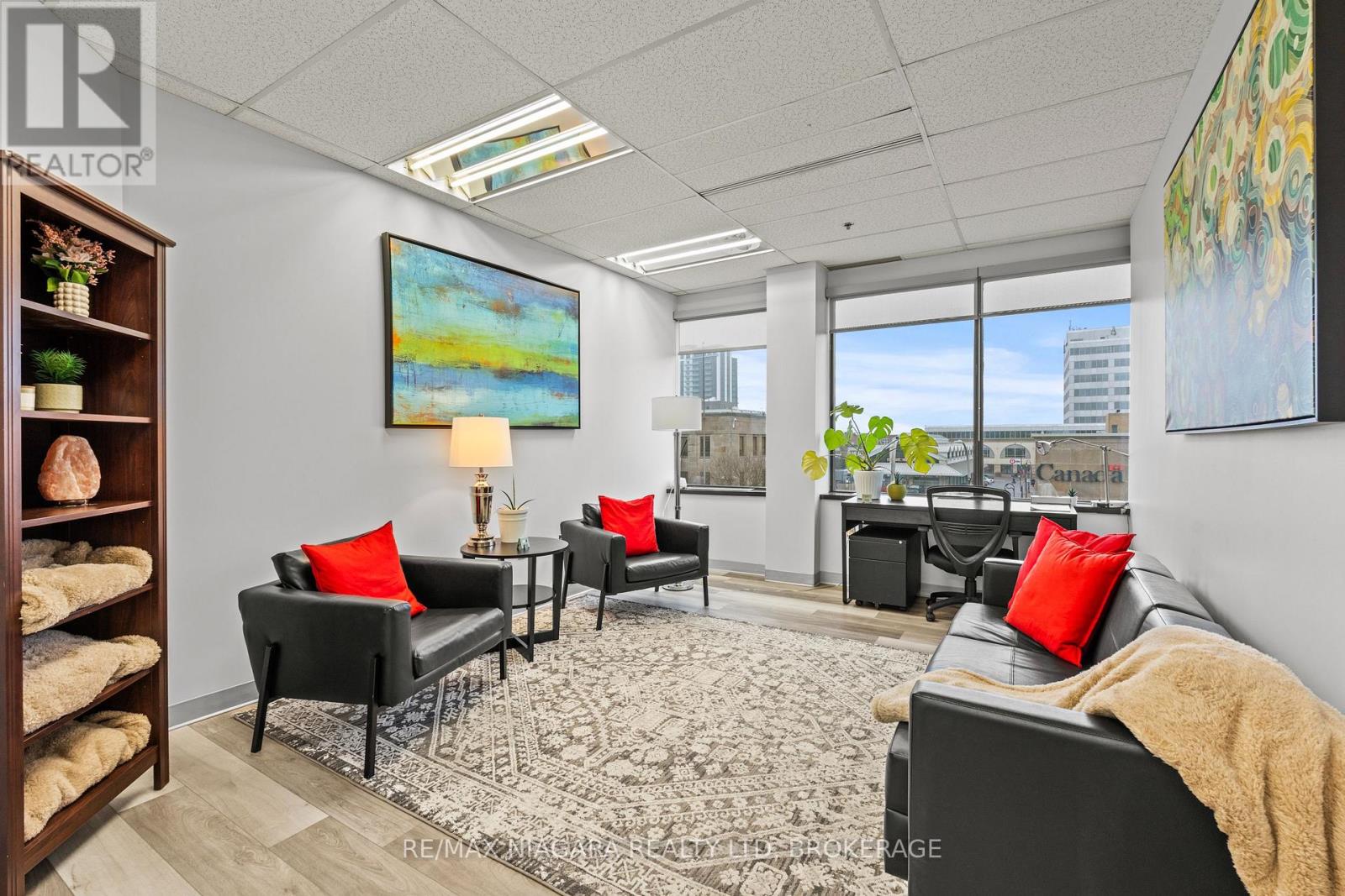 2,020 SQFT professional office space in the heart of downtown St. Catharines at 43 Church Street. Located on the 3rd floor with convenient elevator access, this turnkey unit offers a functional layout ideal for a wide range of professional uses. The space features four private, soundproof rooms, making it perfect for medical, therapy, legal, or consulting practices requiring privacy and quiet work environments. A bright, open reception/work area welcomes clients, complemented by a spacious kitchen and additional office space to support daily operations. Positioned steps from City Hall, the courthouse, transit terminal, restaurants, and the Fourth Avenue shopping corridor, this location provides excellent accessibility for both staff and clients. A move-in ready opportunity in a prime downtown location. (id:64974)