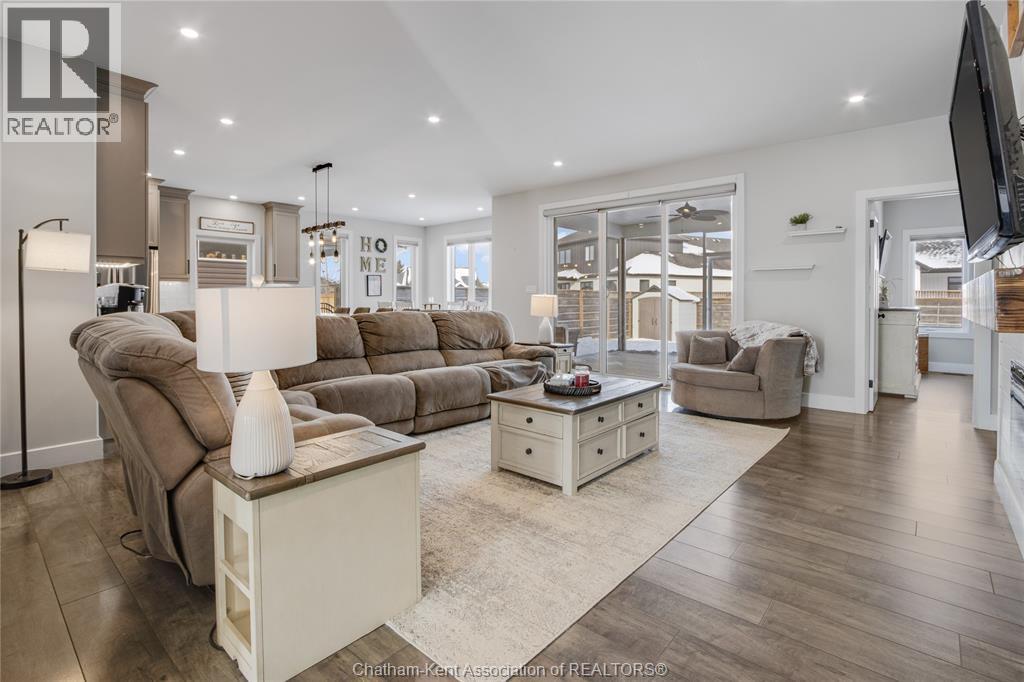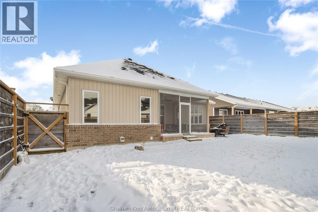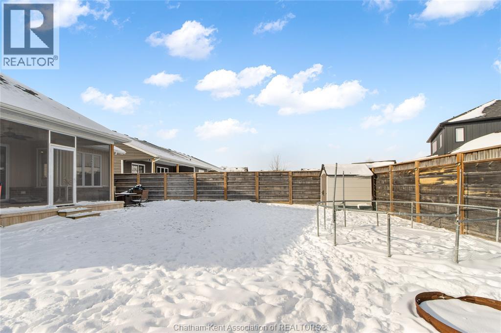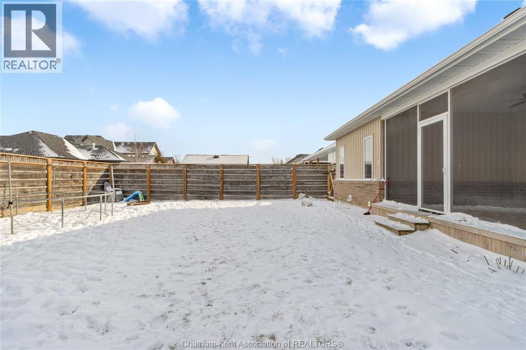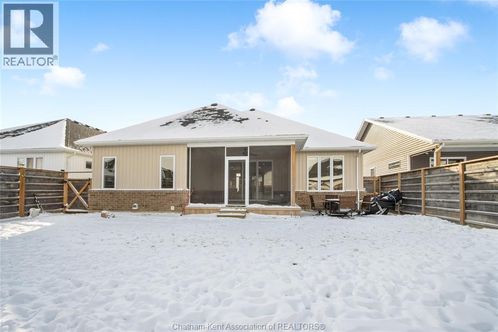 Welcome to main-floor living in this beautiful ranch-style home built by Depencier Builders. Upon entry, you’re greeted by a spacious foyer that opens into a bright, open-concept layout. The living room features an elegant electric fireplace that flows into the kitchen, complete with an island, quartz countertops, and ample cabinetry. A dedicated dining area sits just off the kitchen, making the layout ideal for everyday living and entertaining. Patio doors provide access to a fully screened, covered rear porch providing an inviting space to enjoy both daytime and evening use. The main floor offers three generous bedrooms, including a primary bedroom with a convenient three-piece ensuite. The full basement provides excellent potential for future development, with a roughed-in bathroom and generous space for additional living space or additional storage. Outside, the fully fenced backyard includes a storage shed and a patio with a gas line hookup for a fire table. A double concrete driveway leads to the double car garage, offering plenty of parking and convenience. A well-built home with thoughtful features and located in a quiet neighbourhood! Must be seen to be appreciated! Call today for a personal showing! (id:64974)