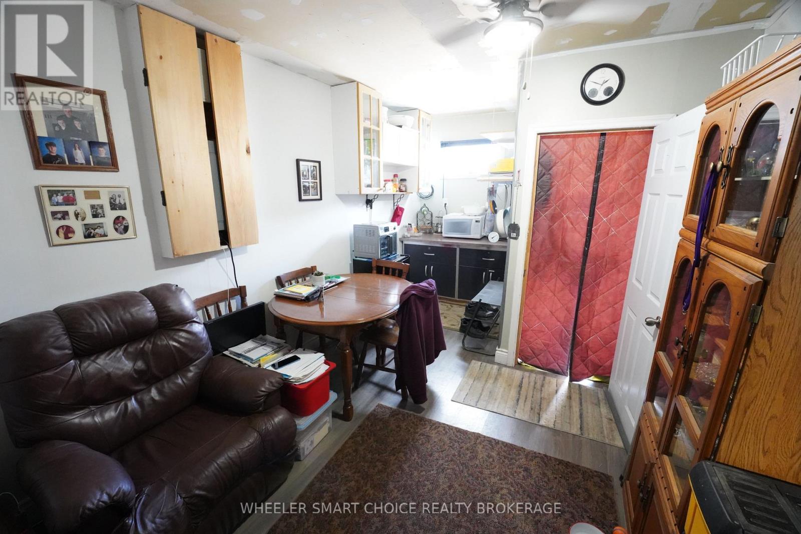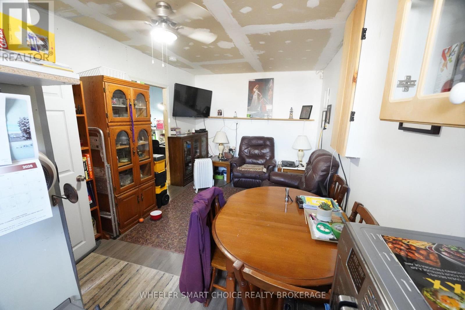 Must-see, one-of-a-kind property offering exceptional versatility and space for the whole family! Perfect for multi-generational living, growing families, or those needing flexible living arrangements, this home offers endless possibilities. The main floor features a bright living room with wood-burning fireplace and corner windows, a functional kitchen, and 3 bedrooms (currently configured as 2 bedrooms plus a dining room). Patio doors lead to a large deck overlooking a fully fenced yard. The lower level is truly unique, offering incredible flexibility with a second bathroom and two kitchenette/ snack areas-ideal for in-laws, older children, guests, or potential home-based business use. With a separate access area, this space is perfectly suited for a home office, studio, or private living quarters. Outside, you'll find a spacious 25' x 20' detached garage with its own 30-amp panel, along with a fully finished "man cave" or "she-shed"-a perfect retreat for relaxing, hobbies, or a private getaway space. (drywall in livingroom can be removed as added for temporary basement privacy, also the kitchen mini table can be removed) A rare opportunity with room for everyone and endless potential-this home must be seen to be fully appreciated! Call today to book your private viewing. (id:64974)