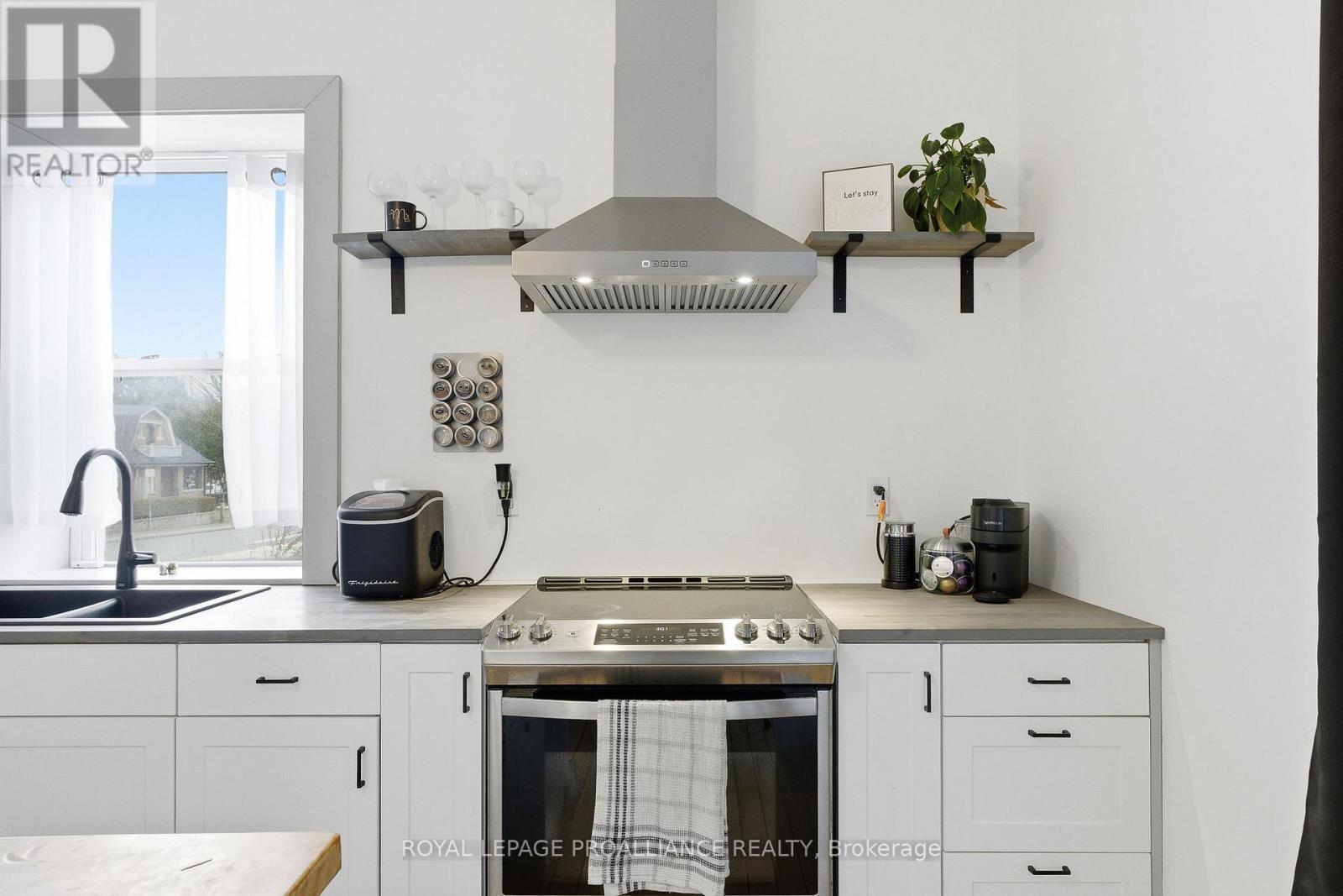 Welcome to 300 George St in Cobourg, an updated all-brick legal duplex built in 1910 and thoughtfully designed to blend historic character with modern functionality. Set in the heart of the downtown core, this property is just steps from the beach and marina, the train station, schools, and Cobourg's vibrant restaurants and shops, offering a truly walkable lifestyle. The home features 2 self-contained interior units that are separately metered and have separate heating, making it an excellent investment opportunity or an ideal option to live in one unit while renting the other. Both units offer in-suite laundry centres for added convenience and showcase a stylish mix of exposed brick, stainless steel appliances, and tiled 3-piece bathrooms that complement the home's original charm. Walk-outs from each unit lead to their own decks, providing an easy extension of the living space outdoors. The upper unit spans approximately 1,400 sq ft across the 2nd and 3rd floors and offers 2 bedrooms and 1.5 baths, with an open concept living and dining area and a kitchen finished with quartz countertops. The 3rd floor, measuring over 600 sq ft, is dedicated to the primary suite and features a half bath with a skylight, along with a large walk-in closet with its own skylight, plus ample space for a home office or quiet retreat. The bright main floor unit is approximately 800 sq ft with 1 bedroom and 1 bathroom, showcasing original hardwood flooring and direct access to a full, unfinished basement that provides excellent storage. Offering flexibility, location, and lasting value, 300 George St is a rare opportunity to own a versatile property in the centre of downtown Cobourg. *Note: units are separately metered for hydro - main floor unit heated by gas forced air & upper unit is heated by electric baseboard + both units are currently owner occupied, so vacant possession will be ensured on closing, providing the new owner the opportunity to set their own rental rates and terms.* (id:64974)