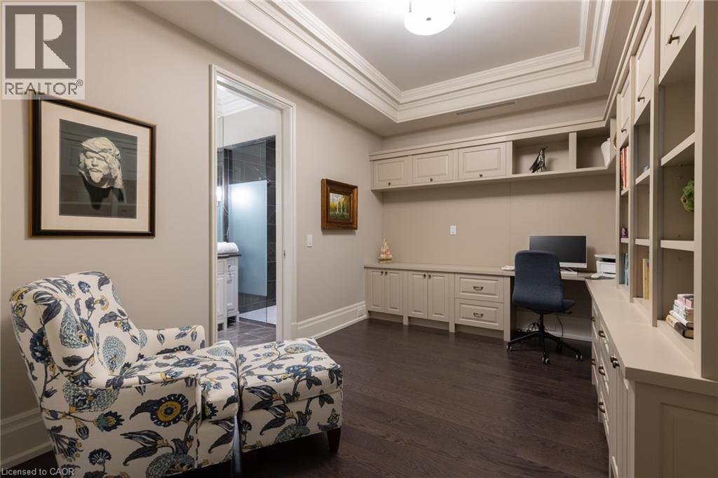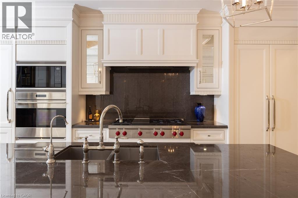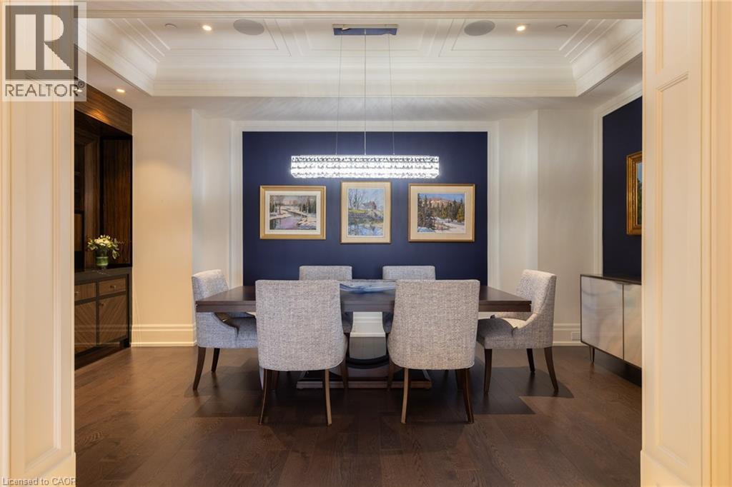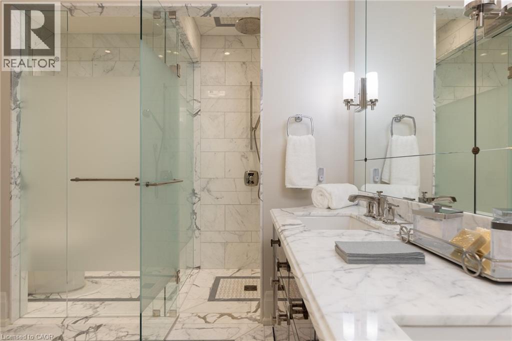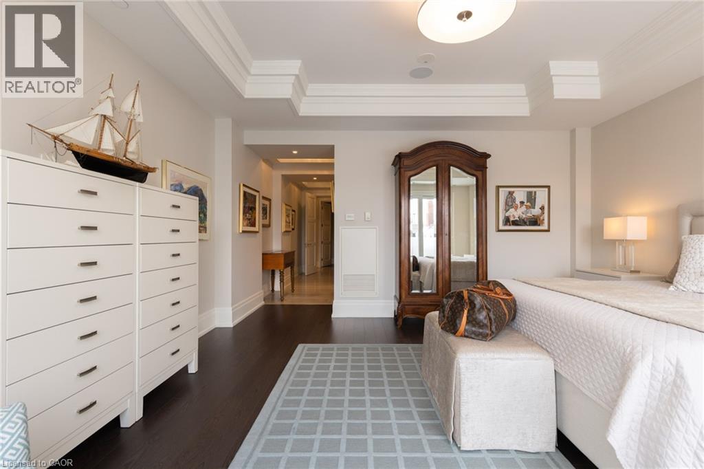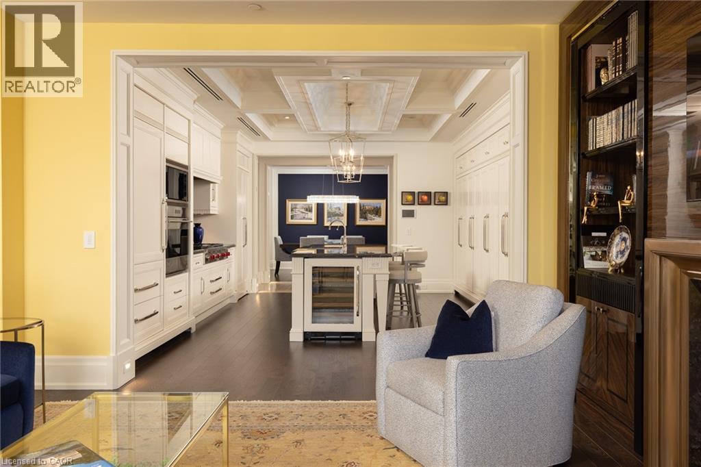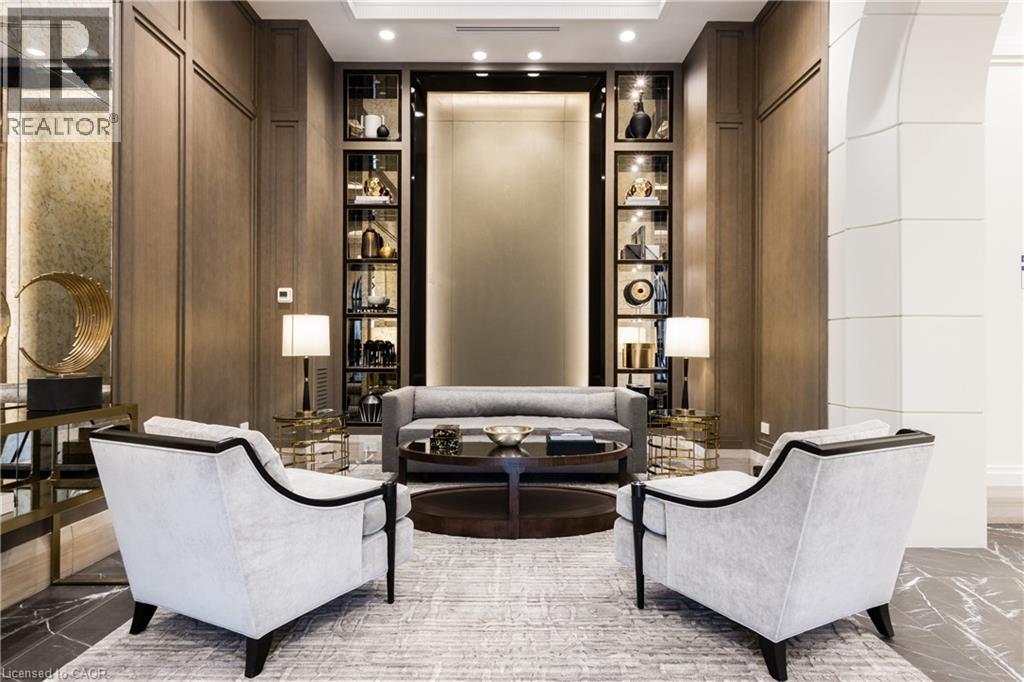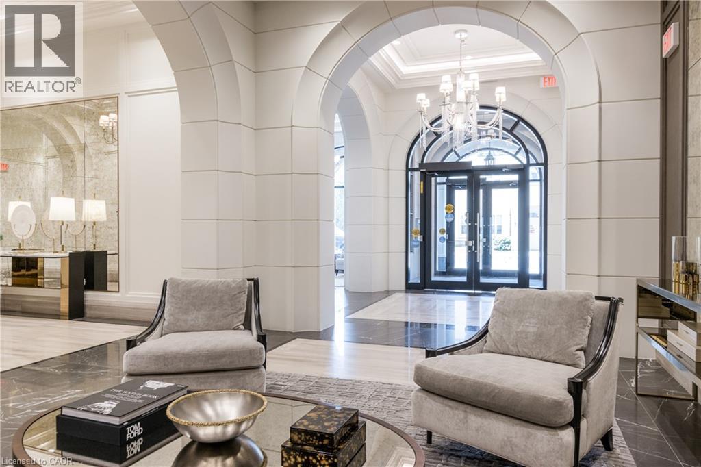 Discover True Luxury Living in This Exceptional Oakville Suite. Welcome to an extraordinary residence that redefines sophisticated condominium living. This stunning two-bedroom suite encompasses an impressive 2,290 square feet of meticulously designed living space, where every detail has been carefully curated to create an atmosphere of refined elegance. Upon entering through the grand rotunda, you are immediately greeted by exquisite slab marble flooring that establishes the tone for the opulence that awaits within. The thoughtful design continues throughout, featuring rich hardwood flooring, intricate millwork, and striking zebra wood accents that speak to the exceptional craftsmanship found in this home. The gourmet kitchen presents a culinary enthusiast's dream, complete with top-of-the-line Wolf, Subzero, and Miele appliances, a generous island for meal preparation and casual gatherings, plus an entire wall of pantry cupboards, and walk-in pantry for additional storage. The Great Room beckons relaxation with built-in cabinetry, and a warm gas fireplace. Step through to the private 335 sq ft terrace for morning coffee or evening contemplation. Entertain graciously in the separate dining room, showcasing zebra wood built-in cabinetry with dedicated wine storage. The primary bedroom suite offers terrace access, a walk-in closet, and a luxurious 4 pc ensuite featuring a vanity area, radiant heated floors and a pampering Kohler toilet ($8500 value). The 2nd bedroom functions beautifully as a home office with custom built-ins and its own 3 pc ensuite. Modern convenience abounds with the integrated Crestron system controlling music, lighting, and motorized blinds throughout. 2 side-by-side parking spaces and a storage locker complete this offering. Built by the acclaimed Rosehaven Homes, this residence sits moments from Lake Ontario, fine dining, boutique shopping, & provides effortless access to major transportation routes including the nearby transit station. (id:64974)