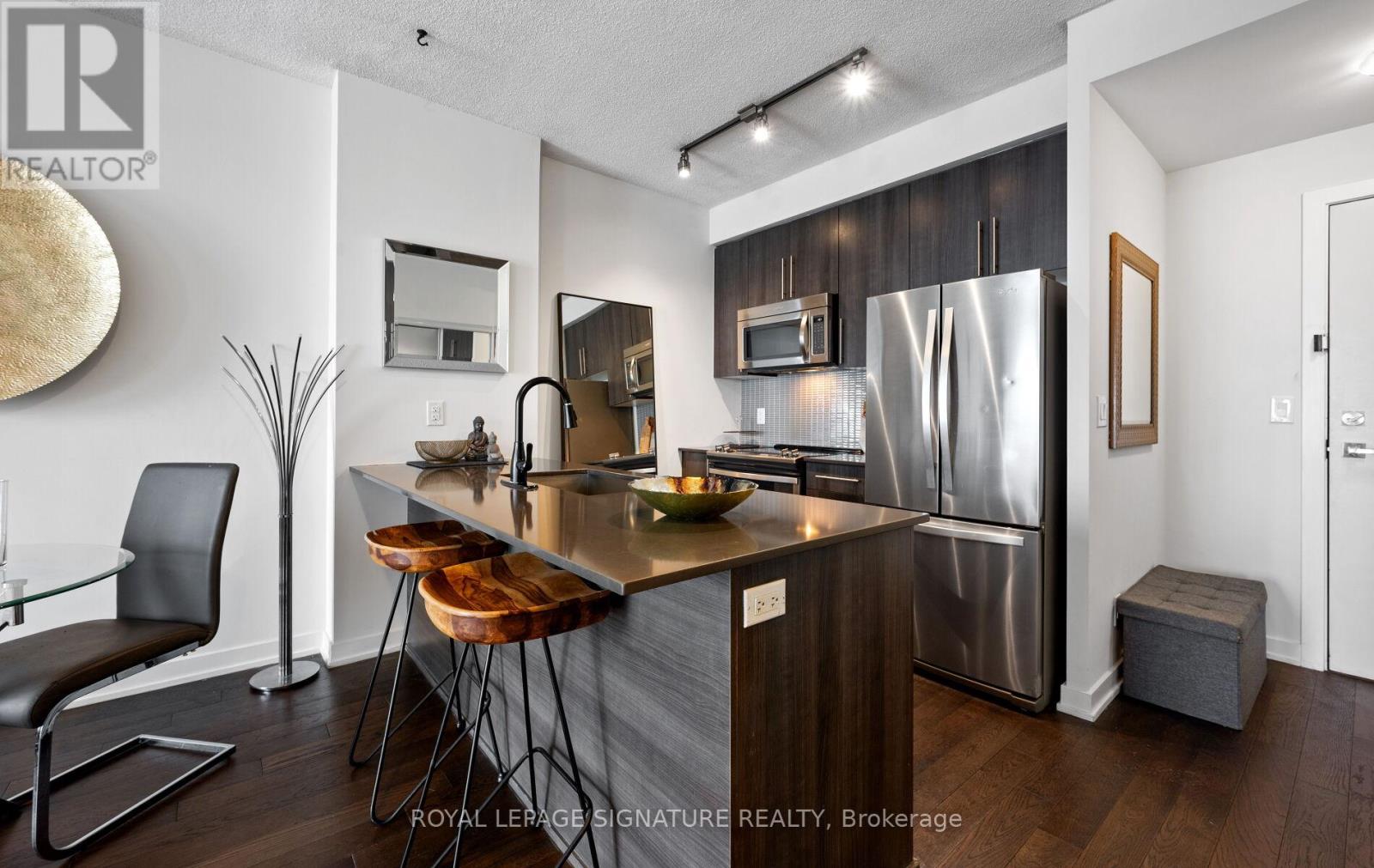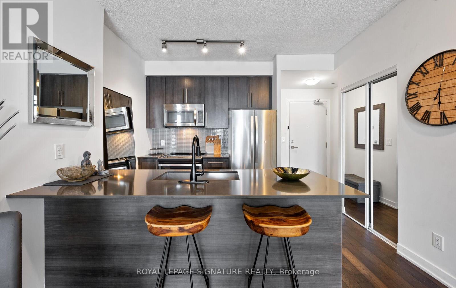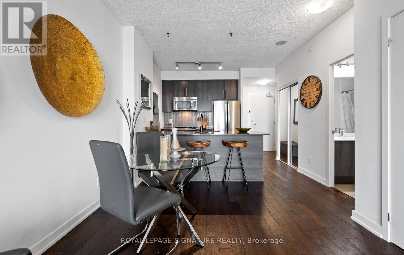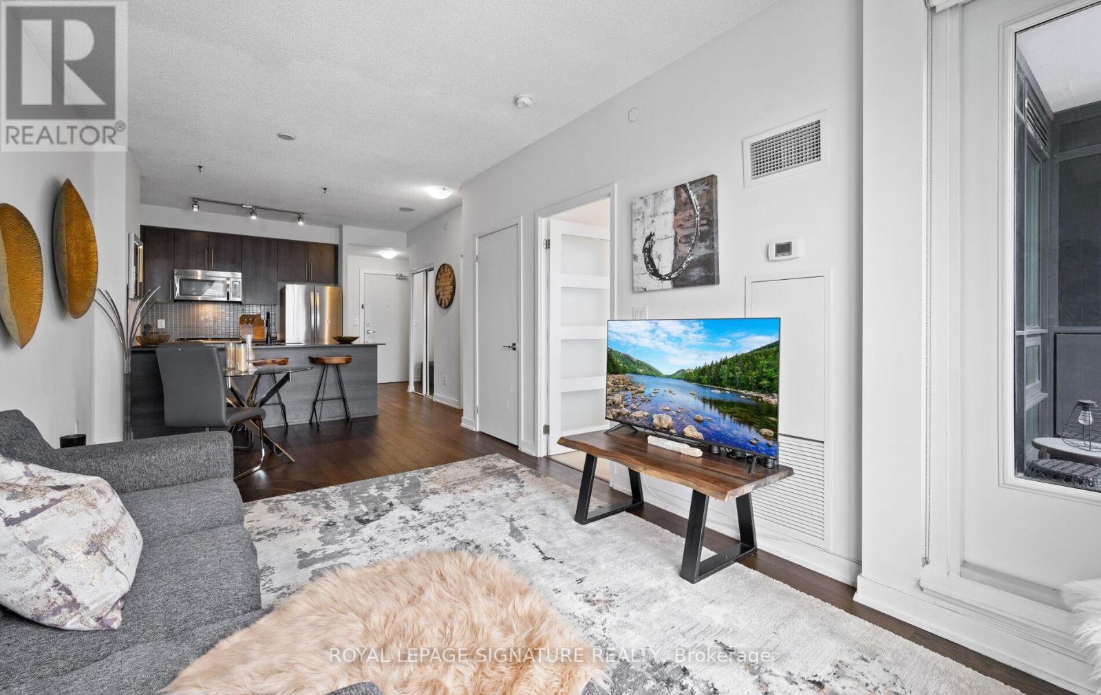 Welcome to the "Posh Style Vibe" PSV2 condos located in Mississauga's vibrant downtown core. Live a care free condo lifestyle in this beautiful 1 bedroom. The airy, open-concept living space offers 9' ceilings, engineered wood flooring, expansive windows with a fantastic view of Celebration Square. The kitchen features sleek cabinetry, stainless steel appliances and modern countertops with breakfast bar-ideal for everyday dining. Unwind after a long day of work on your private balcony. Well maintained by Original Owner. Residents enjoy access to incredible amenities including an indoor pool, gym, theater room, library, 24 hour concierge and much more. Step outside your door to Starbucks, great dining, transit and all your everyday conveniences. Close to Square One, Sheridan College, Celebration Square, Food Basics, No Frills, Transit, Highways, Future LRT. Ideal opportunity for First Time Buyers, Professionals or Savvy Investors. Don't miss out on this gem! (id:64974)