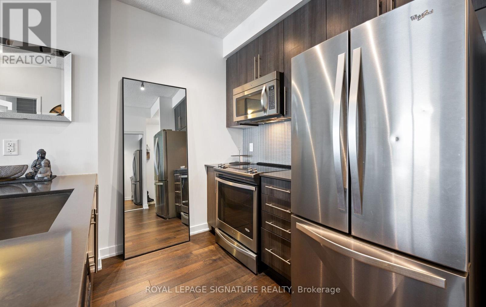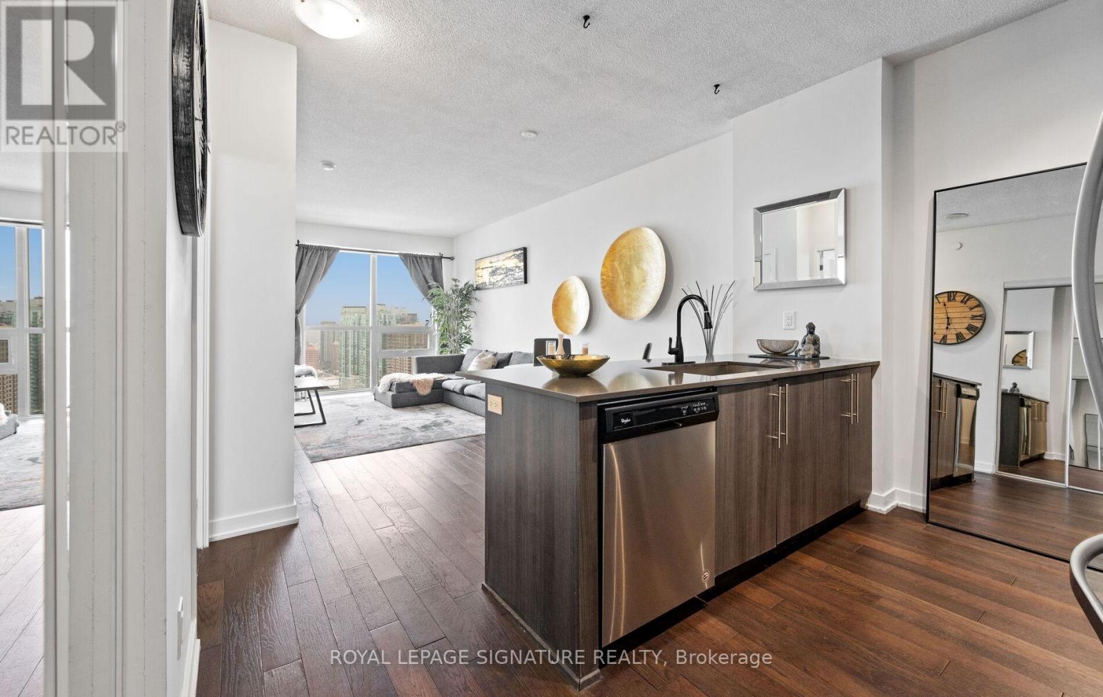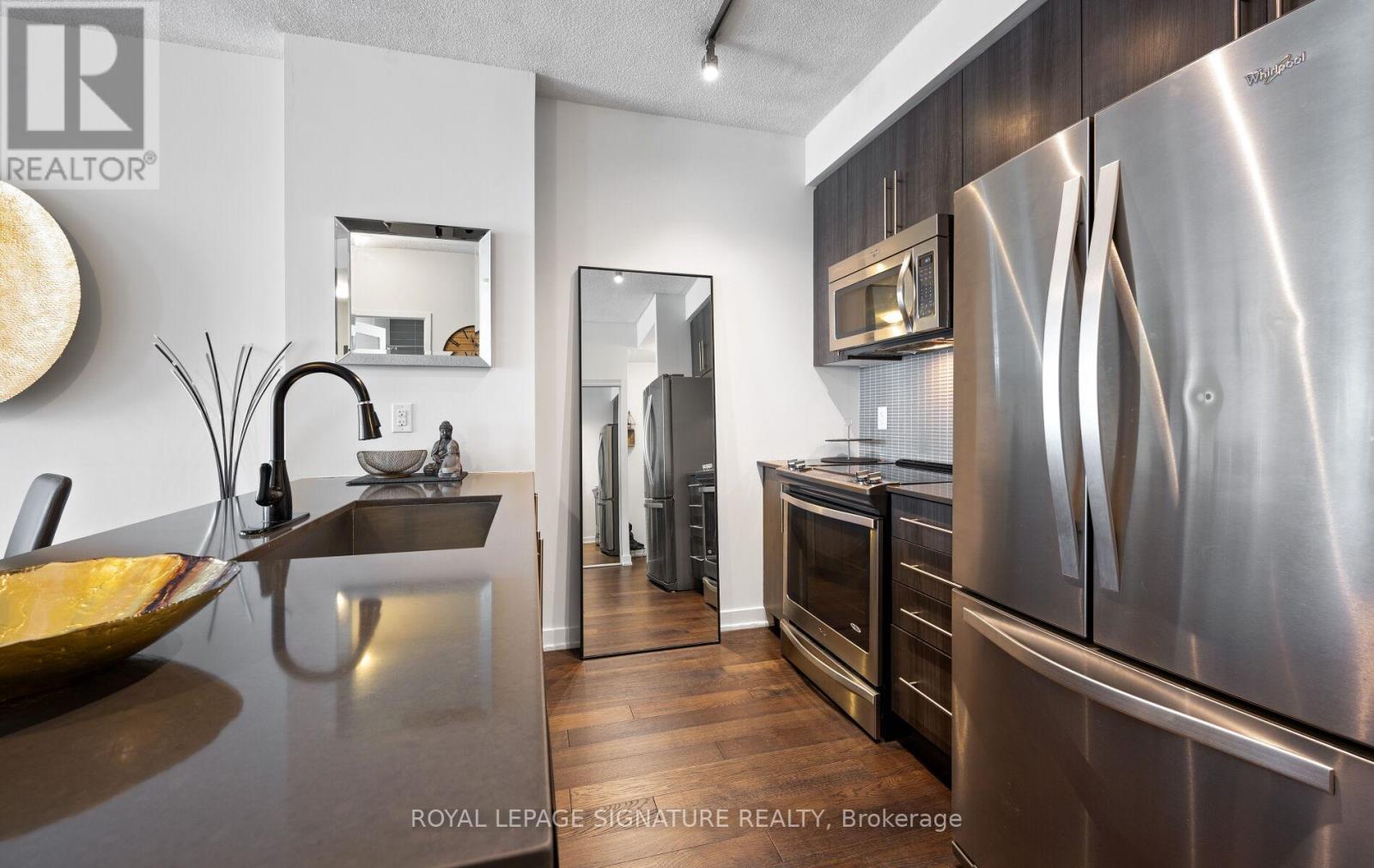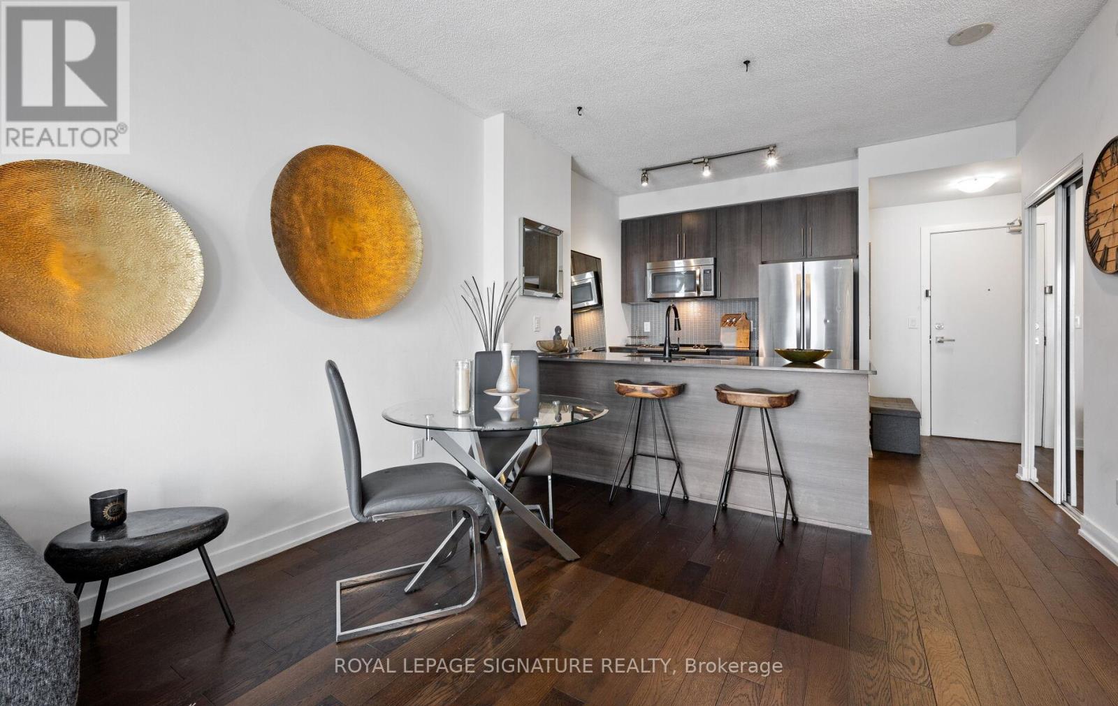 Welcome to the "Posh Style Vibe" PSV2 condos located in Mississauga's vibrant downtown core. Live a care free condo lifestyle in this beautiful 1 bedroom. The airy, open-concept living space offers 9' ceilings, engineered wood flooring, expansive windows with a fantastic view of Celebration Square. The kitchen features sleek cabinetry, stainless steel appliances and modern countertops with breakfast bar-ideal for everyday dining. Unwind after a long day of work on your private balcony. Well maintained by Original Owner. Residents enjoy access to incredible amenities including an indoor pool, gym, theater room, library, 24 hour concierge and much more. Step outside your door to Starbucks, great dining, transit and all your everyday conveniences. Close to Square One, Sheridan College, Celebration Square, Food Basics, No Frills, Transit, Highways, Future LRT. Ideal opportunity for First Time Buyers, Professionals or Savvy Investors. Don't miss out on this gem! (id:64974)
