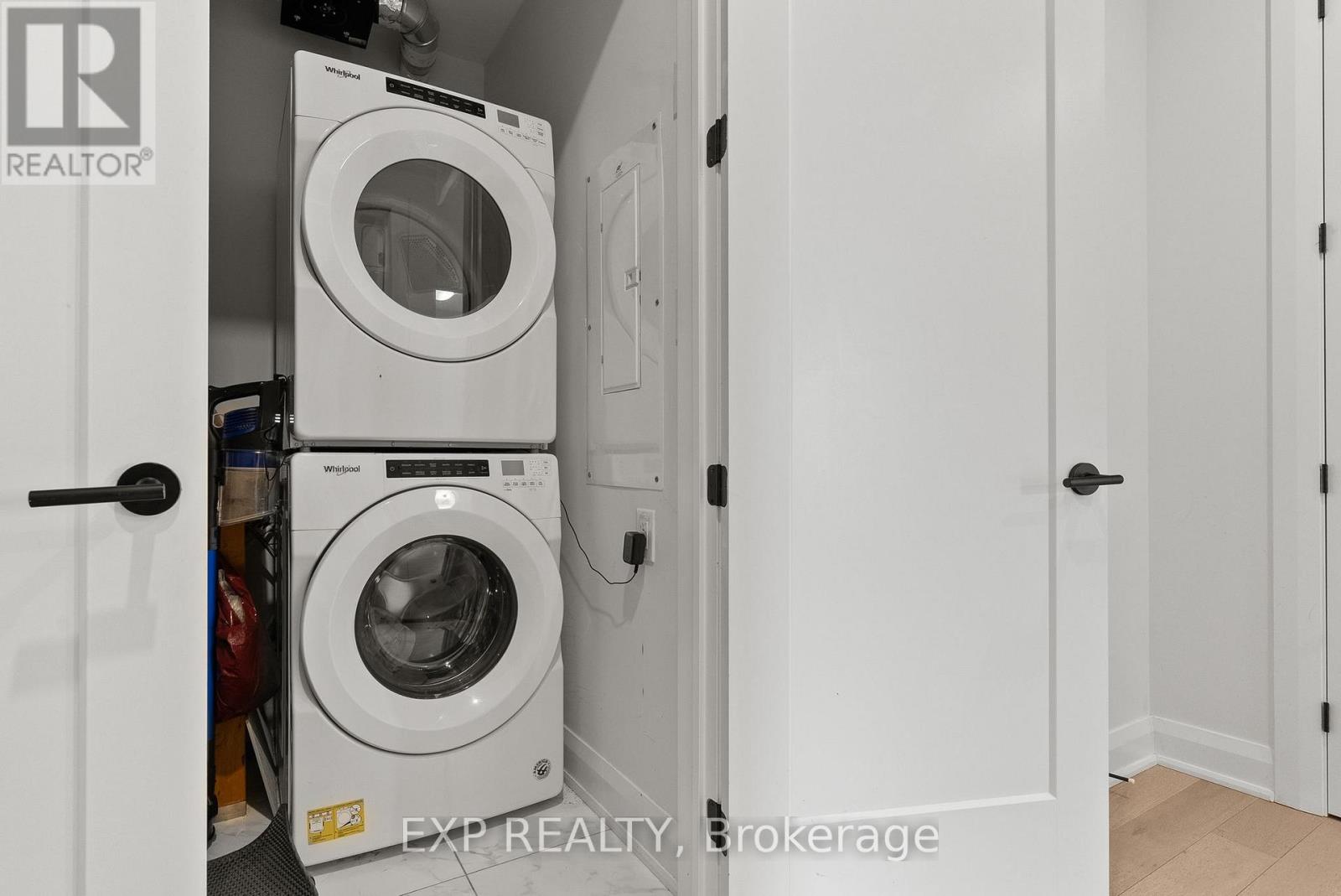 Your next home awaits! Welcome to 100 Cortile Private, Unit 301, located in a premium Urbandale community featuring boutique-style buildings with only 16 units each. This beautifully upgraded 2-bed, 2-bath condo offers modern design, exceptional natural light, and over $25,000 in builder upgrades. An open-concept layout, floor-to-ceiling windows, and high ceilings create a bright, airy atmosphere throughout. Light hardwood flooring adds warmth and enhances the contemporary aesthetic .The kitchen is a standout, featuring a waterfall-edge quartz island with seating for three, sleek two-tone cabinetry, built-in appliances including a beverage fridge and microwave, and clean, modern finishes. It's the perfect space for cooking, entertaining, or enjoying a quiet meal at home. Contemporary fixtures and finishes continue throughout the unit, reflecting thoughtful design and quality craftsmanship. The home includes underground parking with an attached storage locker, plus an additional storage locker on the 3rd floor for added convenience. Located within walking distance to the new LRT station, as well as nearby shops, restaurants, and cafés, this condo offers both comfort and connectivity in one of Ottawa's fastest-growing neighbourhoods. Showings are requested with 48 hours notice minimum 24 hours notice for tenant, some pictures are virtually staged. (id:64974)