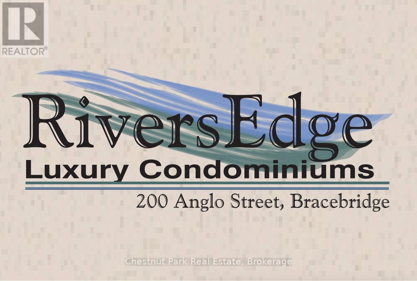 Welcome to "the Rebecca" unit 301 and the only one of this plan left in the building! Both bedrooms and living area face directly onto the river, providing you with a gorgeous waterfront view. This luxurious suite welcomes with hardwood floors of your choosing and bright potlights elevating the space. A high-end kitchen with generous storage, quartz countertops, and 5 upgraded stainless appliances will be the heart of this home. Tucked away is the private primary suite with a walk-in closet and ensuite bathroom. Located at RiversEdge, a new boutique condo building of only 24 units, lovingly located on the Muskoka River and walking trails that bring you to downtown within 15 minutes or an even shorter walk to the beautiful Bracebridge Bay Park. Amenities of RiversEdge promise an easy and enjoyable lifestyle. Just to list a few, there is underground parking, storage lockers, a main floor fitness room, luxurious party room, screened porch Muskoka room, riverside stone patio, bbqs, garbage chutes on every floor, mail delivery and pick up right in the lobby and a secure front entry door with buzzer system. Boatslips can be purchased as well for a true cottage experience. Everything you want for a life of convenience and well-being in Muskoka. Photos are of the identical suite below. Colour and finish choices still available. (id:64974)