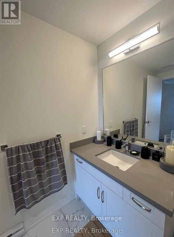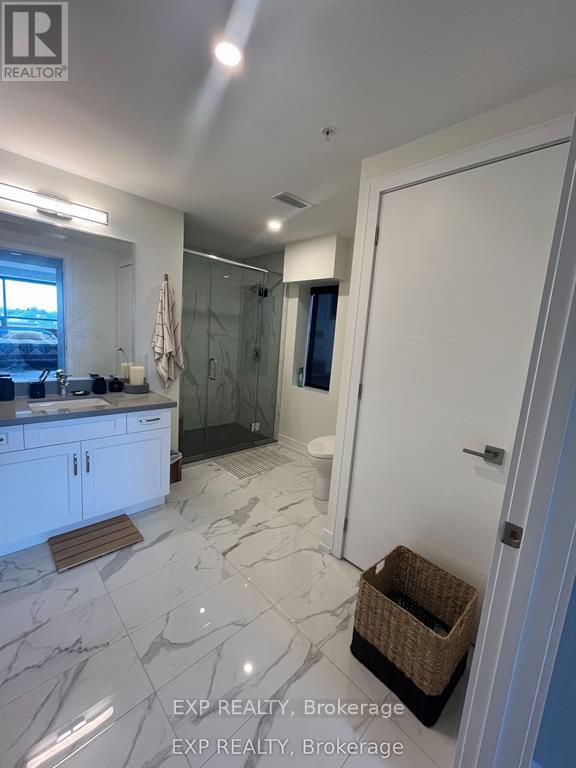 Luxurious executive two-bedroom corner unit condo for lease. This spacious and well-lit living area offers a large kitchen equipped with high-end appliances, granite countertops, and ample storage space. The primary bedroom with en-suite bathroom featuring a walk in glass shower. The second bedroom perfect for guests or a home office setup and a 2nd bathroom featuring a large tub. High-quality finishes, laminate floors, and modern fixtures throughout. The condo also features in-unit washer and dryer for added convenience. Exclusive access to building amenities, including a fitness room and secure entry & parking. Prime location in the heart of the city, close to shopping, dining, and major highway access. (id:64974)