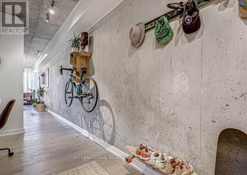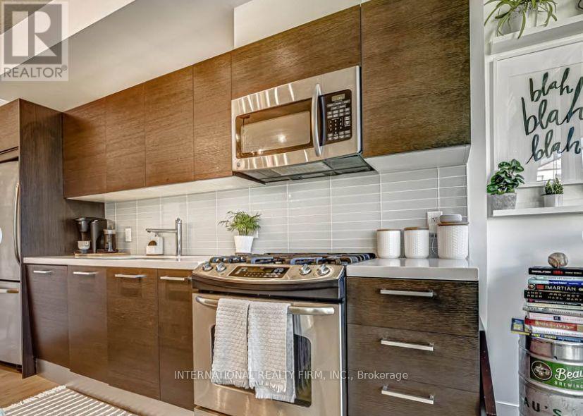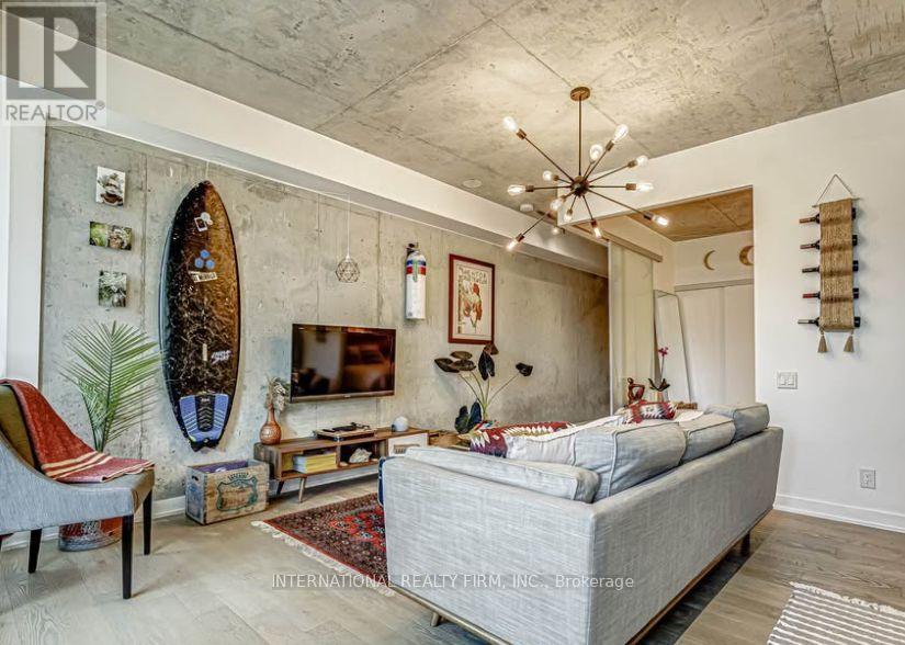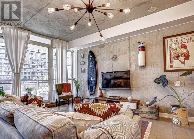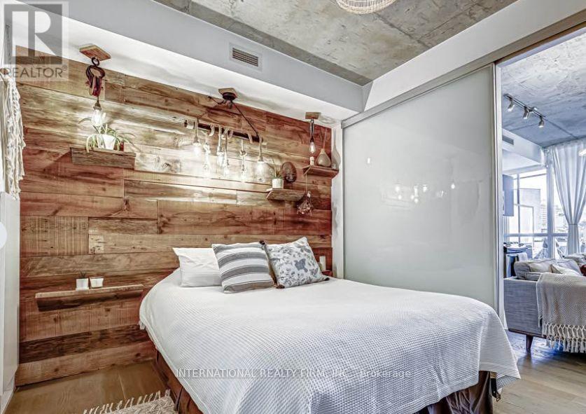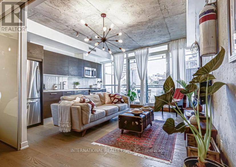 Welcome to boutique urban living in one of Toronto's most vibrant east-end neighbourhoods. This stylish 1-bedroom residence offers the perfect blend of modern comfort, character, and convenience, all within walking distance of the Distillery District, St. Lawrence Market, and some of the city's best restaurants, cafés, and shops. Inside, you'll find a bright and airy open-concept layout featuring sleek flooring, soaring concrete ceilings, and expansive floor-to-ceiling windows that fill the space with natural light throughout the day. The contemporary kitchen is equipped with full-sized stainless steel appliances, including a gas stove, stone countertops, and ample cabinet space-perfect for both everyday living and entertaining. The spacious bedroom features custom wood accent wall detailing and unique statement lighting, creating a warm and stylish retreat. It also includes a large closet offering excellent storage space and generous windows that allow natural light to flow through the room. The modern bathroom features clean finishes and thoughtful design, while additional conveniences include in-suite laundry and functional storage throughout the unit. Located in a highly desirable boutique building, residents enjoy easy access to transit, the King streetcar at your doorstep, and the future Ontario Line station just steps away, making commuting across the city effortless. (id:64974)