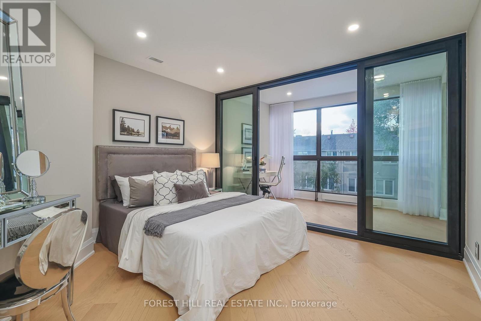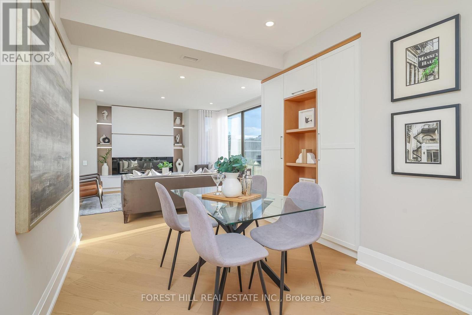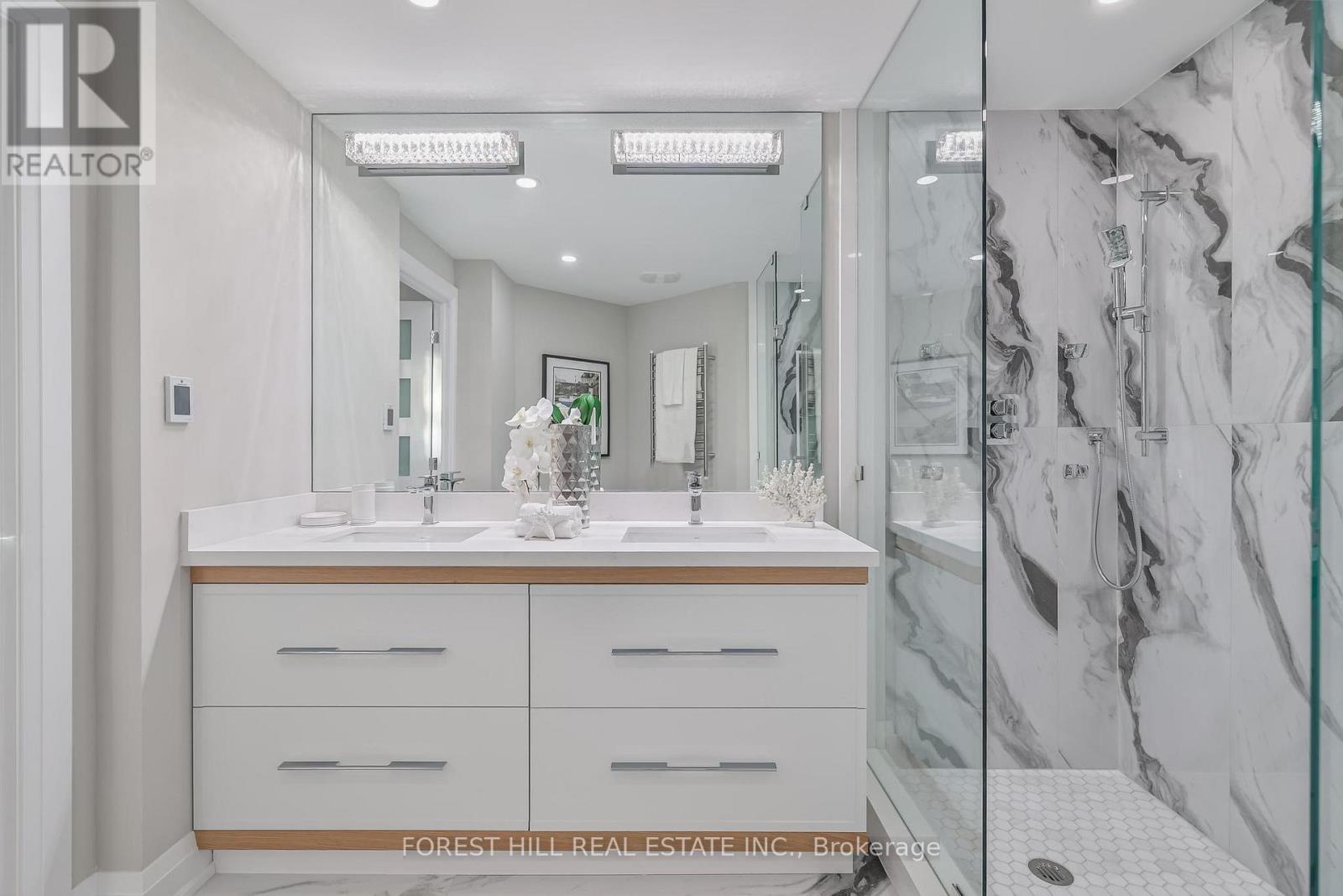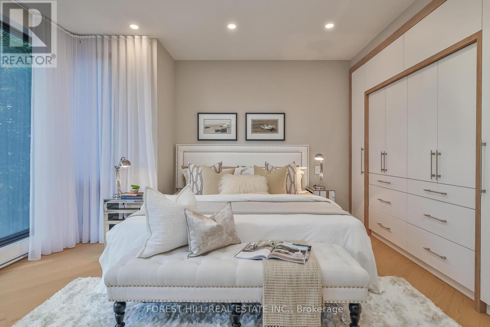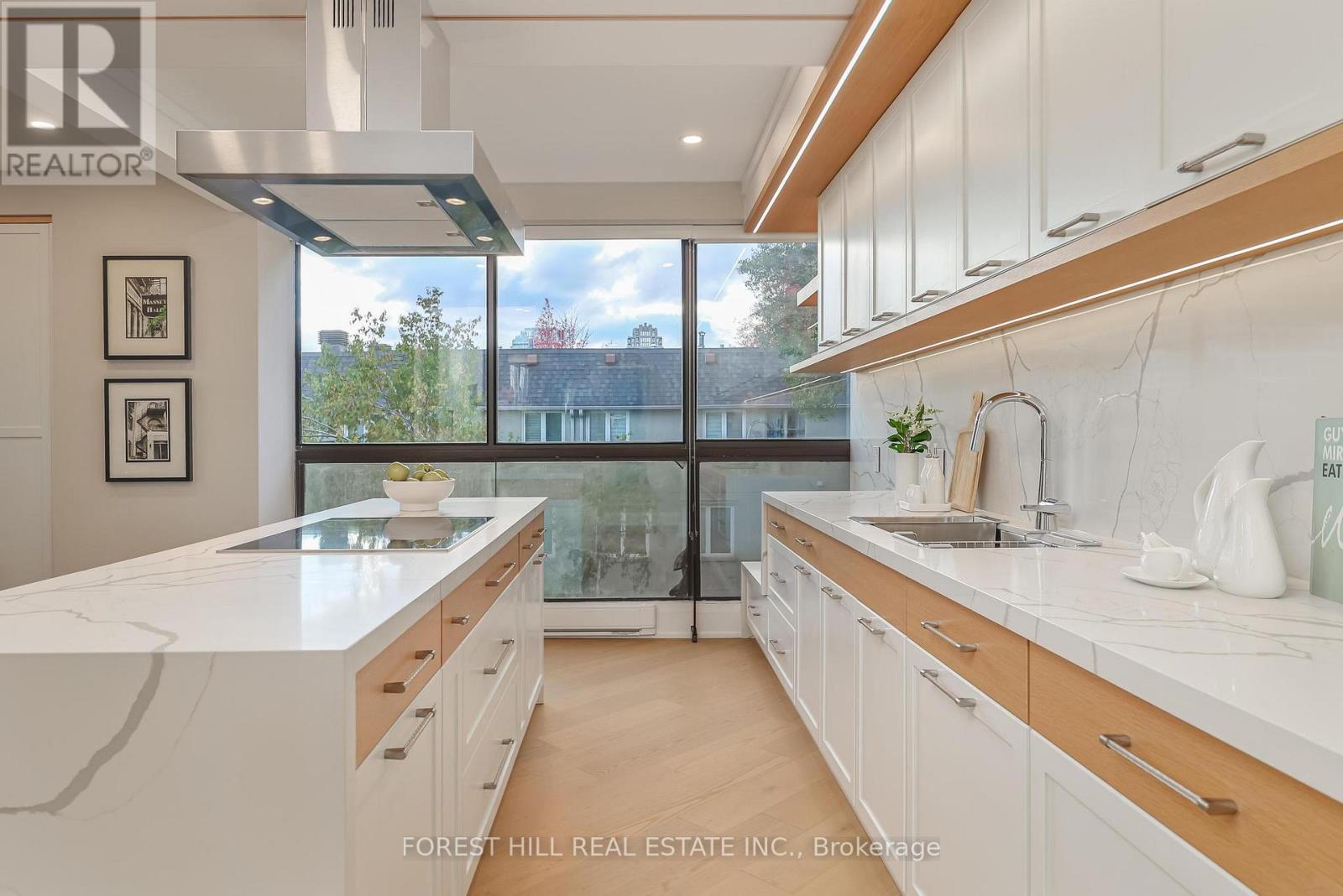 Nestled in a boutique residence of only 20 suites in prestigious Forest Hill Village in this meticulously renovated 1,750 SF corner suite. This turnkey residence showcases 2 spacious bedrooms & 2 bathrooms, boasting bespoke finishes that elevate everyday living. Bathed in natural light, the suite features floor-to-ceiling glass creating a bright and airy atmosphere. The sumptuous light wood floors add a sophisticated touch to every room. A striking fireplace with custom built-ins & integrated lighting, serves as the anchor of the main living space. The thoughtfully designed split floor plan offers a seamless flow ideal for entertaining. The chef's kitchen is equipped with high-end Miele appliances, a stunning quartz center island with overhead hood fan & ample cabinetry. Breathtaking views of the surrounding tree canopy. Retreat to the gracious primary suite, featuring custom built-in cabinetry & a spa-like ensuite, complete with double sinks, a spacious walk-in shower with bench, heated floors & heated towel rack & exquisite finishes that exude opulence. The generous second bedroom is the epitome of comfort & style, while the additional bathroom boasts a luxurious soaker tub, heated floors & towel rack. This impressive suite also includes a full laundry room with sink and extra storage. Completing the package are 2 parking spaces & large locker. Situated just steps away from The Village, Loblaws, boutique shops & fine dining options, as well as Winston Churchill Park & scenic ravines. Public transit is conveniently around the corner. This exceptional residence harmonizes exquisite design with an unbeatable location, setting the stage for an enviable lifestyle in one of Toronto's most sought-after neighbourhoods. (id:64974)