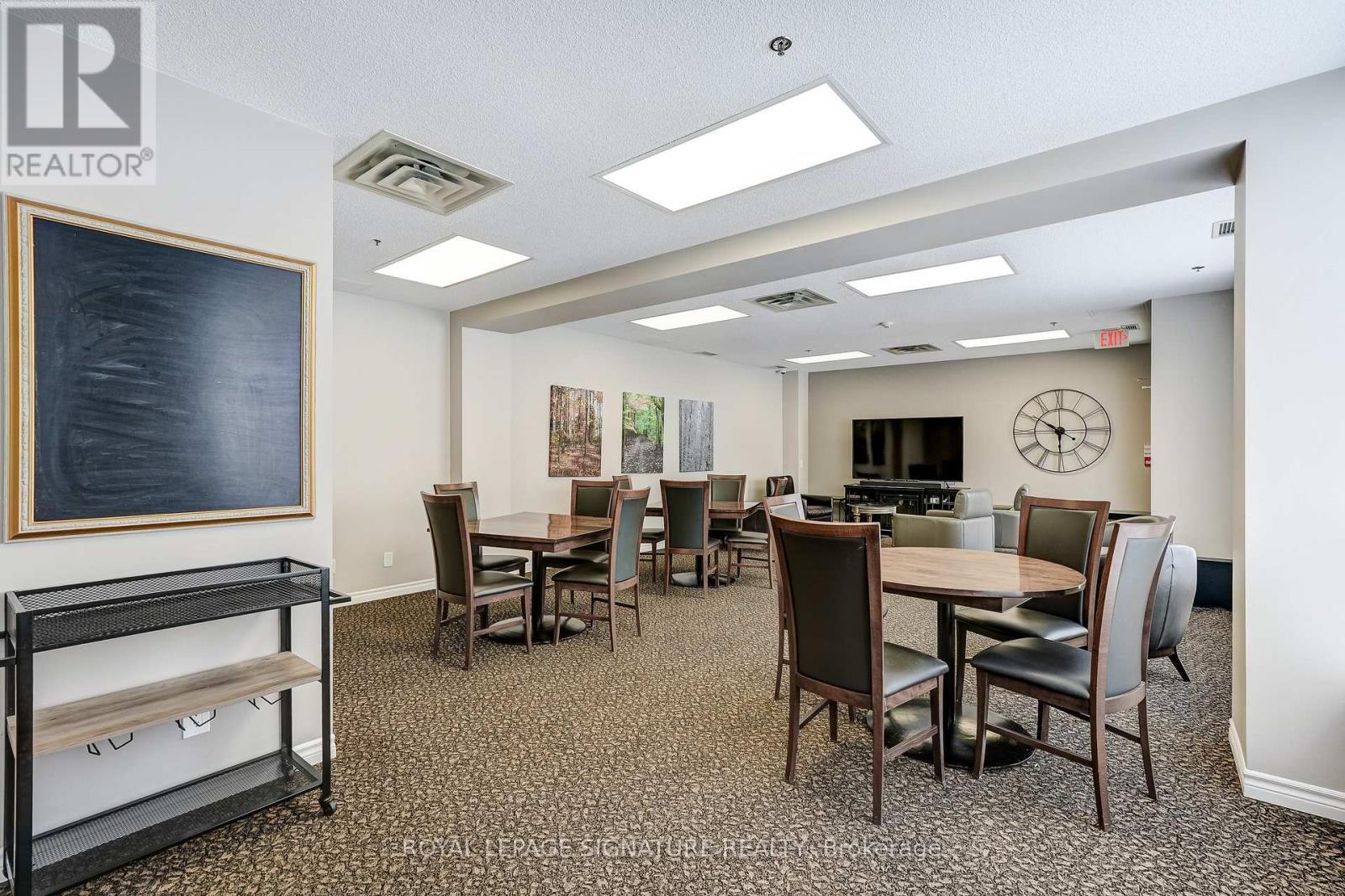 Welcome to this stunning corner suite approximately 1,238 sq. ft. in the upscale Woods End Condominiums, a well-maintained low-rise building. This original-owner home has been meticulously cared for and is surrounded by mature trees, providing privacy along with desirable south and west facing exposures. The Building backs onto green space. The open-concept layout features spacious living, family and dining areas seamlessly connected to the kitchen-ideal for both everyday living and entertaining. The kitchen is equipped with granite countertops, pot lights, under-mount lighting, stainless steel appliances and a centre island. The dining area features a walk-out to a private balcony with a gas line for BBQs. All electric blinds are conveniently operated by remote. The suite includes two generously sized bedrooms and two bathrooms. The primary bedroom features a walk-in closet and a 4-piece ensuite with a separate shower and bathtub. The second bathroom is a 3-piece. Additional highlights include two side-by-side parking spaces located steps to the entrance and one large locker. Building amenities include concierge/security services, visitor parking, guest suites, a party/meeting room and an exercise room. Ideally located near public transit, shops, greenbelt and conservation areas, recreation centres, golf and parks. A must-see home in a highly desirable community-don't miss your opportunity to make it yours! (id:64974)