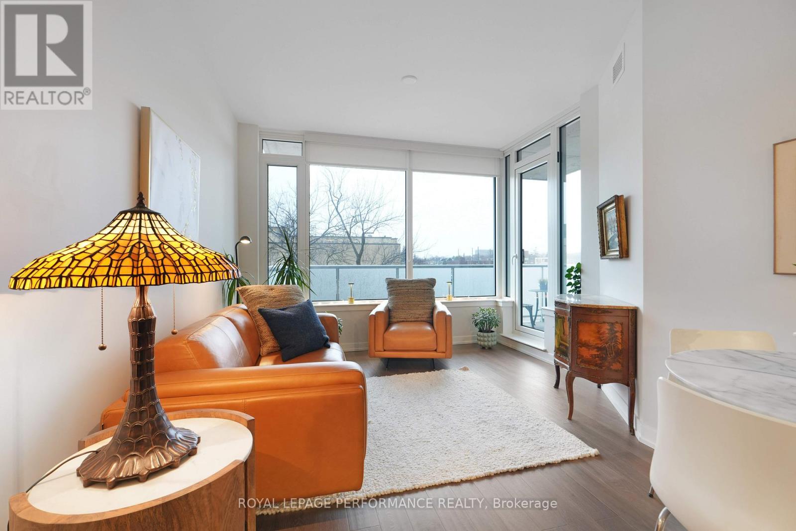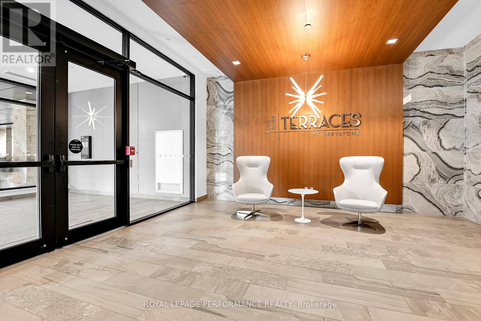 Welcome to elevated living at The River Terraces at Greystone Village, where sophisticated design meets the calm beauty of Ottawa's riverfront. This stunning 2-bedroom residence offers approximately 954 sq. ft. of thoughtfully designed space just steps from the Rideau River and Canal pathways. From the moment you enter, a spacious foyer sets the tone for the home's airy, light-filled ambiance. Engineered hardwood floors flow throughout, creating a seamless blend of warmth and contemporary style. The crisp white kitchen is equal parts statement and workspace, featuring an Induction cooktop, Corian countertops, a classic subway tile backsplash, shaker-style cabinetry, stainless steel appliances, and an oversized breakfast bar perfect for morning coffee or evening gatherings. It opens effortlessly into the living and dining area, where expansive windows bathe the space in natural light and lead to your private balcony, complete with a natural gas BBQ hookup for easy outdoor entertaining. The primary suite offers a peaceful retreat with generous closet space and a spa-inspired ensuite showcasing a sleek glass walk-in shower. A second bedroom, full main bath, and convenient in-suite laundry complete this intelligently designed layout. Residents enjoy an exceptional collection of amenities, including a fully equipped fitness centre, yoga studio, elegant fireside lounge and library, private dining room with catering kitchen, pet wash and car wash stations, and commercial-grade laundry facilities. Underground parking includes rough-ins for EV charging, adding modern convenience to everyday living. At The River Terraces, refined urban comfort and riverside tranquility come together, offering a lifestyle as polished as it is peaceful. (id:64974)