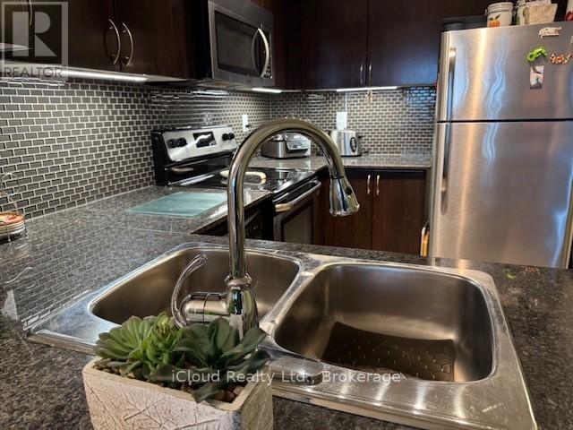 Prestigious Rosedale Village. Such a great lifestyle in this gated community. The Clubhouse offers games, lawn bowling, pickle ball, a golf course, exercise equipment, year round swimming, and so much more. The Chamberlain building of Rosedale Village offers a party room with outdoor patio. This unit is a larger one bedroom unit in the building. Features include hardwood flooring in L/R and D/R, ceramics in the kitchen, granite countertop in the kitchen with back splash and under the cupboard lighting. Stainless steel appliances add that modern look to complete the open concept kitchen. There is a small balcony off the living room. Ensuite washer and dryer. Indoor parking spot with locker close by for storage. Such a beautiful condo. Move in ready. (id:64974)