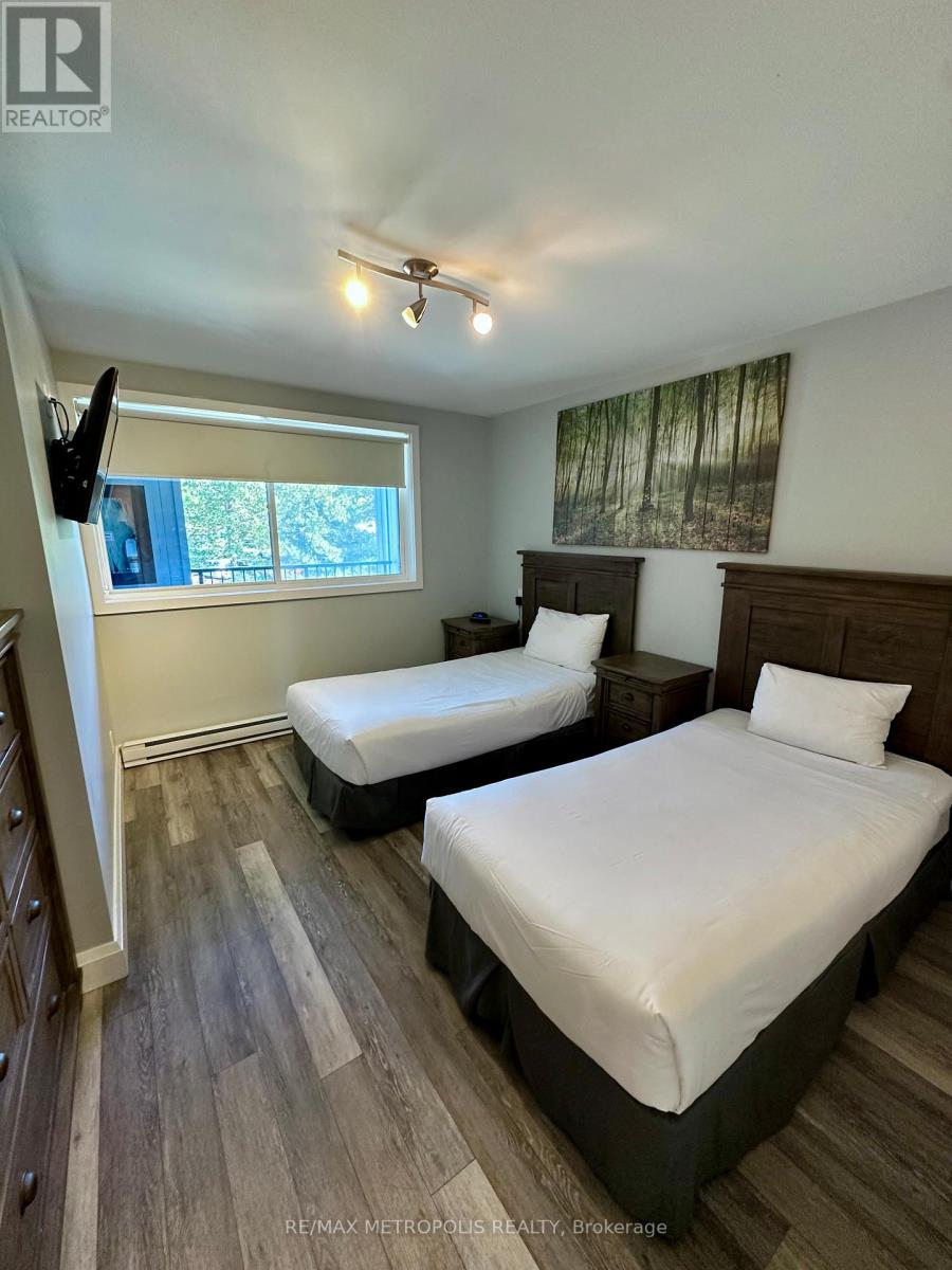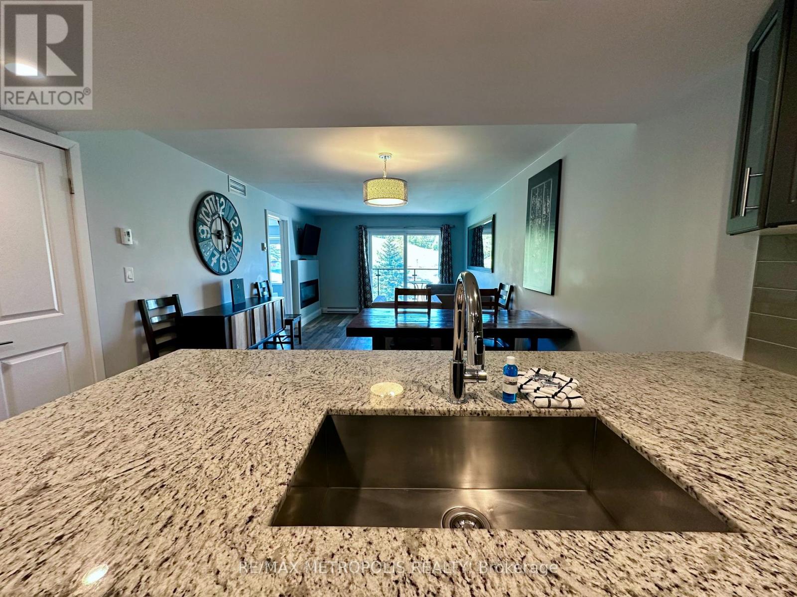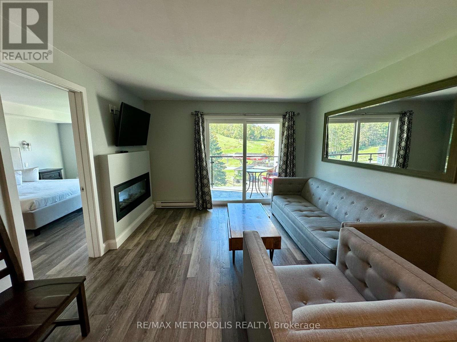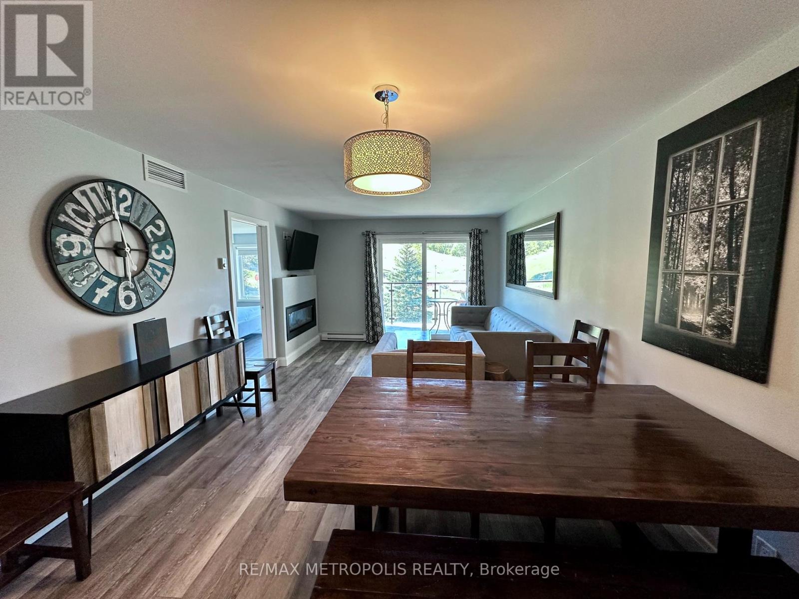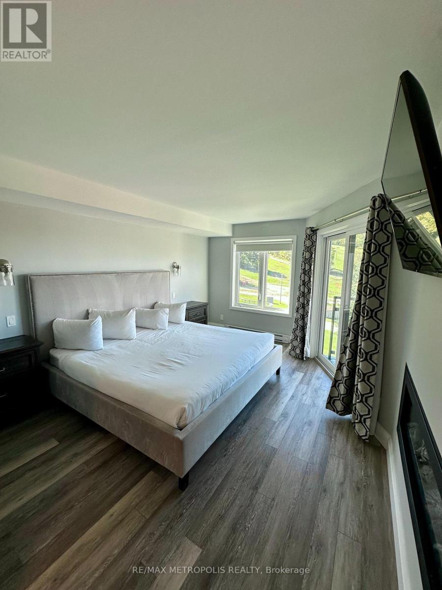 Welcome to The Ellesmere at Slopeside Condos a sophisticated 2-bedroom + den, 2-bath retreat offering 1,188 sq ft of thoughtfully designed living space. Fully furnished and move-in ready, this residence blends elegance with functionality: a see-through fireplace, modern kitchen with stainless appliances, in-suite laundry, and two walk-outs to a private 12 x 5 balcony showcasing breathtaking views of the ski hills.Set directly at Horseshoe Resort, owners and guests enjoy four-season experiences at their doorstep: world-class skiing and snowboarding, championship golf, scenic hiking and biking trails, and the renowned Vetta Nordic Spa just minutes away. Exclusive resort amenities include pools, fitness centre, and spa facilities creating an effortless lifestyle escape.For investors, this property is eligible for the Horseshoe Resort rental program, delivering both passive income potential and capital appreciation in one of Ontarios most desirable year-round destinations. Just over an hour from the GTA, this is not only a luxury getaway but a rare opportunity to own a proven revenue-generating asset in a thriving resort community. (id:64974)