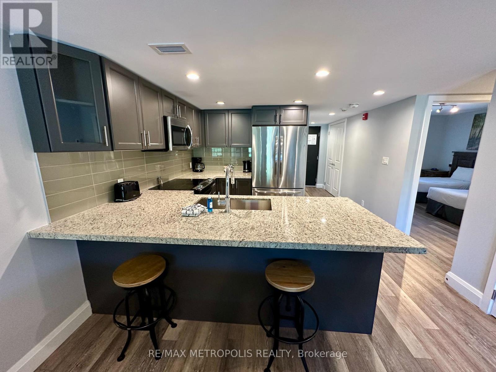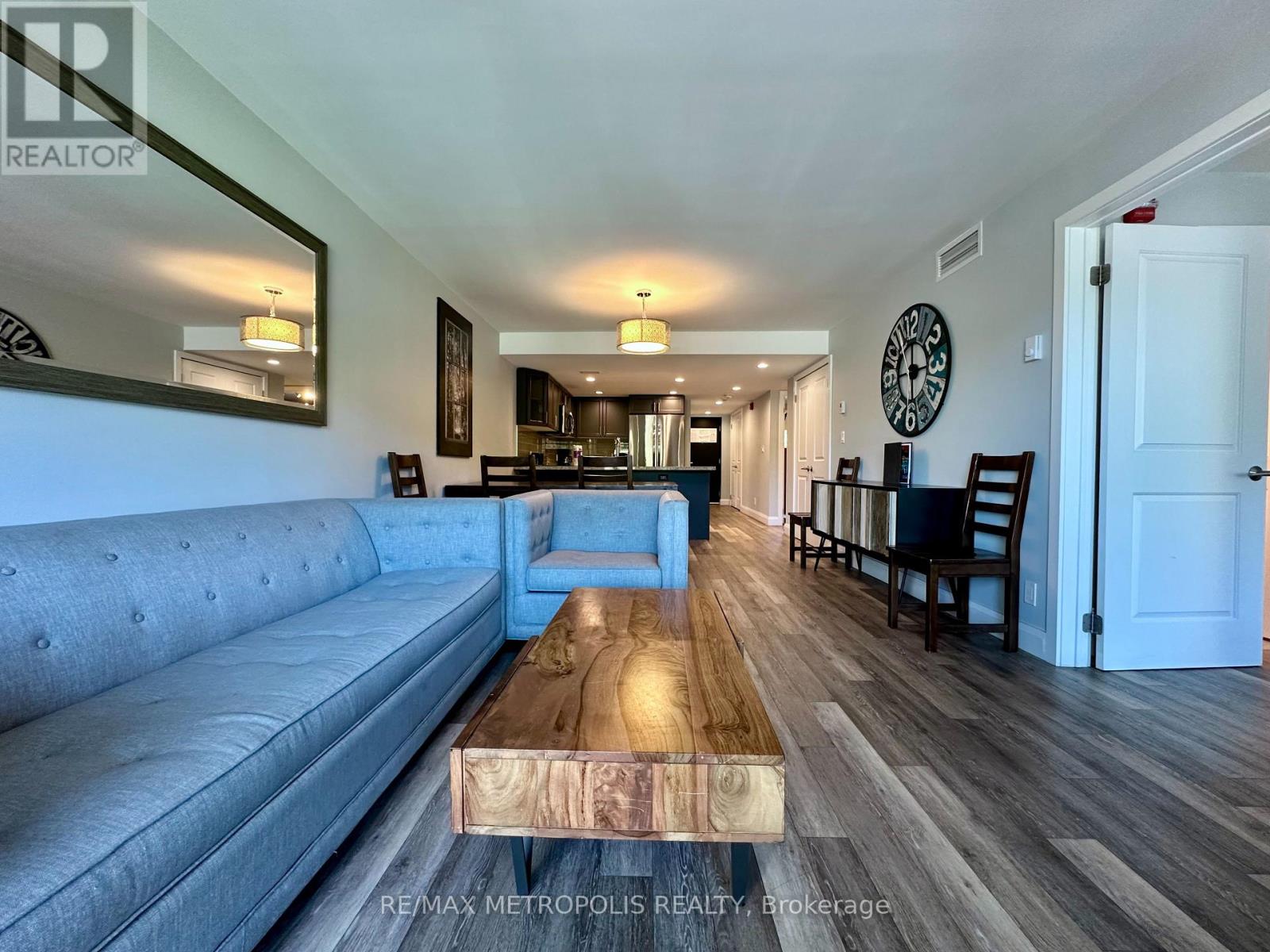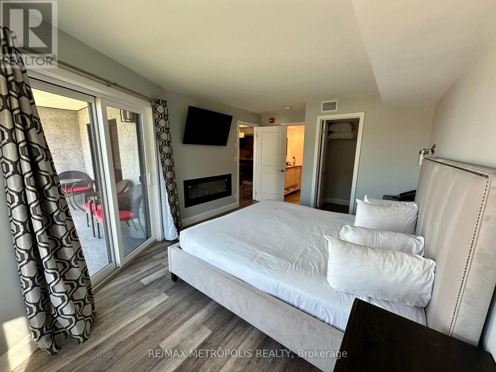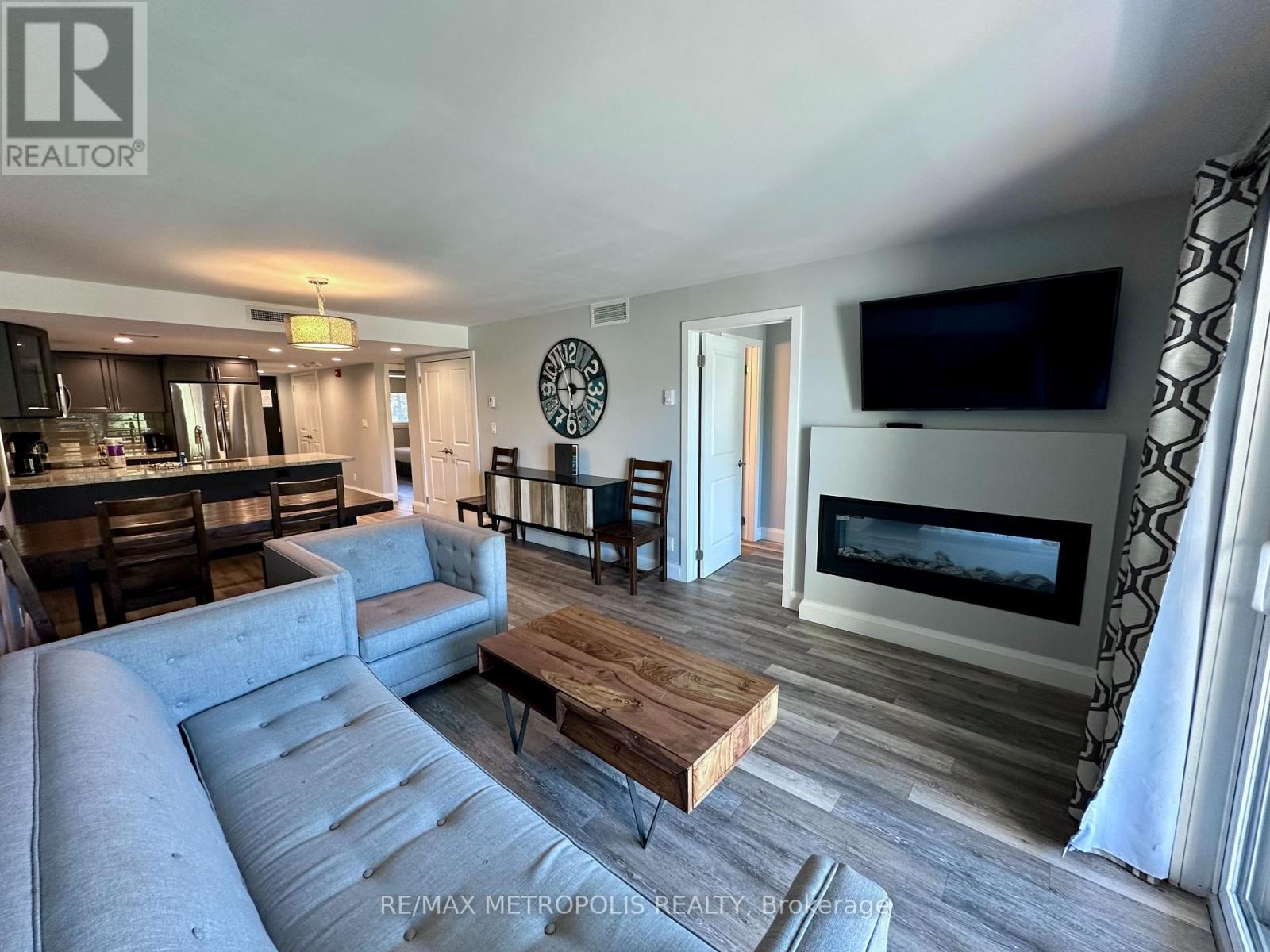 Welcome to The Ellesmere at Slopeside Condos a sophisticated 2-bedroom + den, 2-bath retreat offering 1,188 sq ft of thoughtfully designed living space. Fully furnished and move-in ready, this residence blends elegance with functionality: a see-through fireplace, modern kitchen with stainless appliances, in-suite laundry, and two walk-outs to a private 12 x 5 balcony showcasing breathtaking views of the ski hills.Set directly at Horseshoe Resort, owners and guests enjoy four-season experiences at their doorstep: world-class skiing and snowboarding, championship golf, scenic hiking and biking trails, and the renowned Vetta Nordic Spa just minutes away. Exclusive resort amenities include pools, fitness centre, and spa facilities creating an effortless lifestyle escape.For investors, this property is eligible for the Horseshoe Resort rental program, delivering both passive income potential and capital appreciation in one of Ontarios most desirable year-round destinations. Just over an hour from the GTA, this is not only a luxury getaway but a rare opportunity to own a proven revenue-generating asset in a thriving resort community. (id:64974)