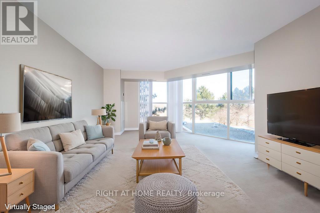 Welcome to Suite #301 at 90 Dale Avenue in the highly sought-after Guildwood community. A well laid out, 1000 square foot, 2-bedroom, 2-bathroom residence ideally situated just moments from the lake. This bright and spacious unit features southeast exposure with expansive floor to ceiling windows, allowing for an abundance of natural light throughout.This unit has been freshly painted and updated with new light fixtures and window coverings. The open-concept living and dining area provides an ideal layout suitable for both everyday living and entertaining. The contemporary kitchen offers quartz countertops, a modern backsplash, and stainless steel appliances, including a new Frigidaire stove and refrigerator, along with a dishwasher and sleek range hood.The primary bedroom includes a private 3-piece ensuite. The second bathroom is a 4-piece bath and recently upgraded.Additional highlights include a large-capacity washer and dryer, Wi-Fi-enabled thermostat, refreshed carpeting, ensuite laundry, generous storage space, and one underground parking spot.Residents enjoy access to a well-maintained building with a range of amenities, including an indoor pool, fitness centre, sauna, billiards room, recreation room, visitor parking, and convenient TTC access at the doorstep. Ideally located near Guildwood GO Station and VIA Rail, as well as shopping, schools, parks, and waterfront trails, this property offers an exceptional balance of comfort, convenience, and lifestyle. (id:64974)