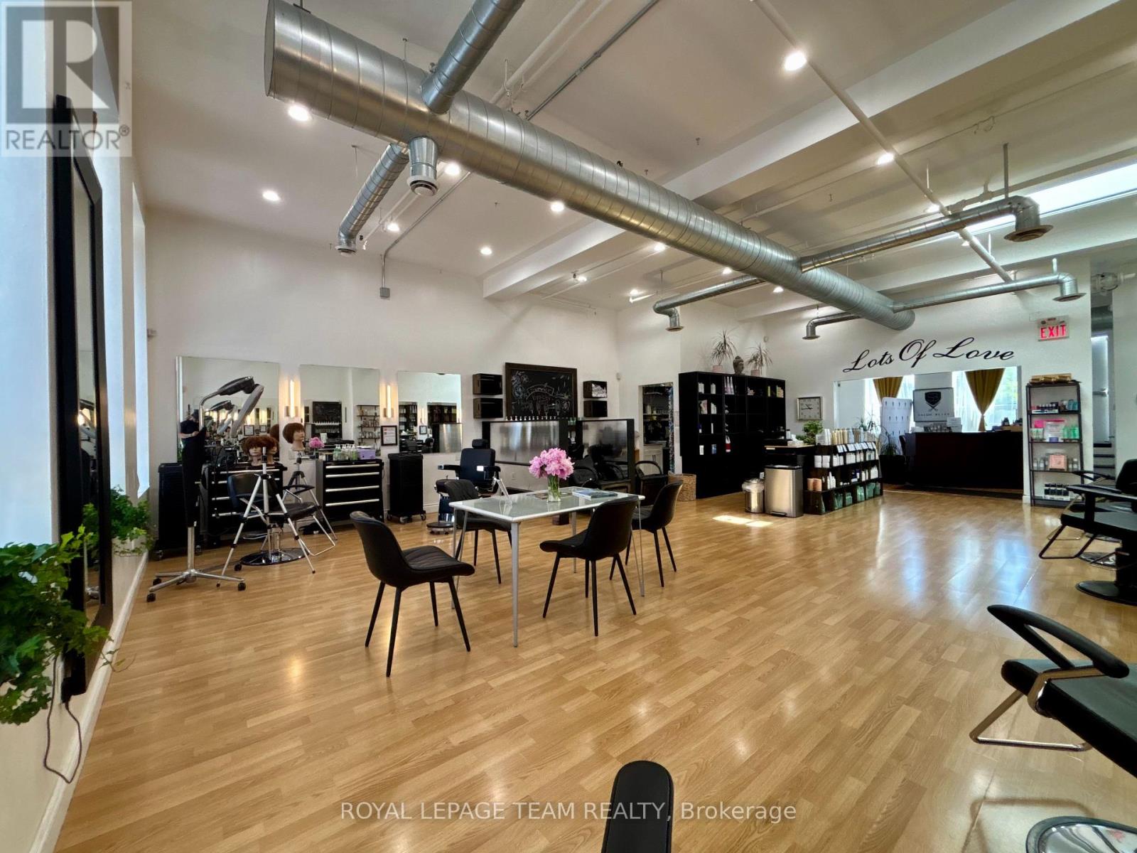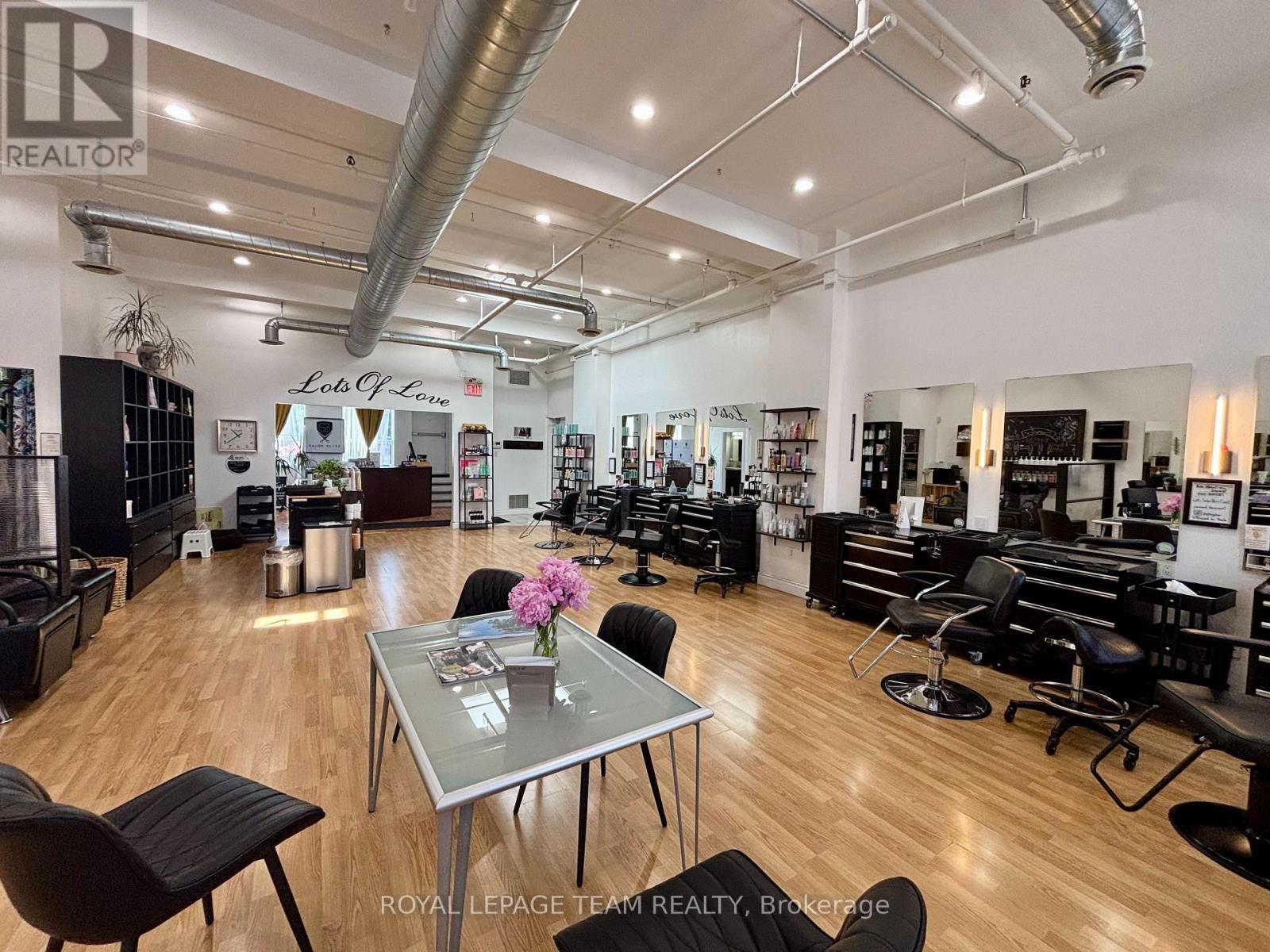 Fully renovated and rarely available 1,300 sq.ft. loft-style commercial suite for lease in the heart of Centretown! Situated on prime Bank Street between MacLaren and Somerset, this sun-filled space boasts 12 ceilings, a skylight, exposed ductwork, and a stylish open-concept design perfect for a wide range of retail or personal service uses. The layout includes a private washroom, kitchenette with laundry, utility/storage room, and access to a rooftop terrace a rare downtown perk. Large windows flood the space with natural light and showcase your business to steady pedestrian and vehicle traffic. TM zoning offers flexibility for a variety of uses. Available immediately. Rent is $3,500/month + separately metered heat & hydro (water included). (id:64974)