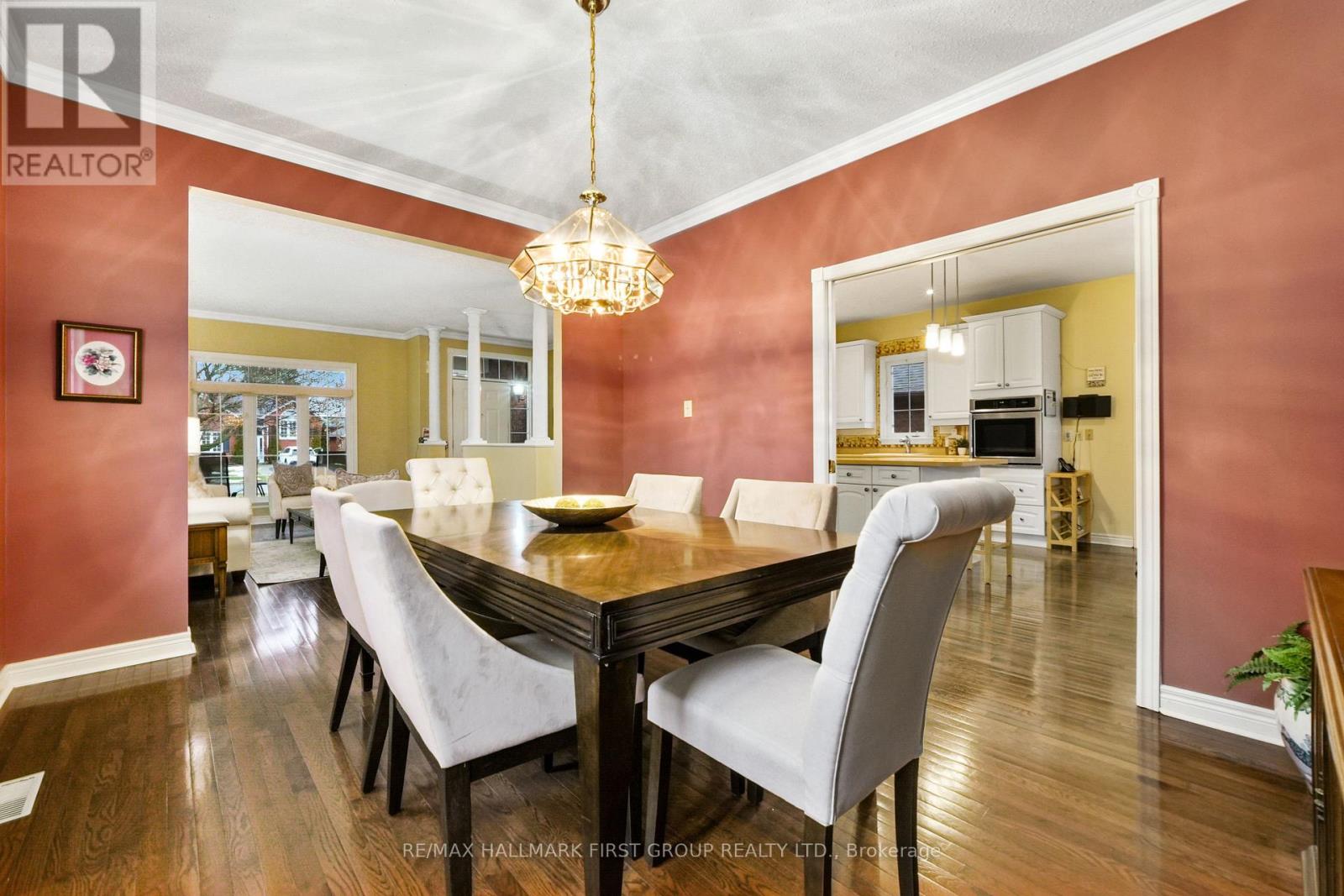 Situated just steps to Lake Ontario in a quiet, family-friendly neighbourhood, this meticulously maintained backsplit offers generous living spaces and a tranquil primary suite designed for everyday comfort. An open foyer leads into a sun-soaked living room featuring a wall of windows, a carpet-free layout, and elegant crown moulding. The large dining room provides ample space for family gatherings and entertaining, connecting seamlessly to the kitchen through glass pocket doors. The kitchen boasts a spacious layout with island prep space and storage, a separate cooktop and stainless steel wall oven, pendant and recessed lighting, and a bright breakfast room with a walkout to the side deck-perfect for BBQs and al fresco dining. Upstairs, the expansive primary bedroom includes a walk-in closet and a serene ensuite complete with a jetted soaker tub and separate shower. Adjacent to the primary bedroom is an additional 2-piece bathroom with convenient laundry facilities. The lower level features a comfortable family room with a cozy gas fireplace, recessed lighting, and a walkout to the back deck. The home also includes two additional bedrooms and two bathrooms, offering flexibility for family, guests, or home office needs. Outdoors, enjoy two decks, mature gardens, and green space framed by established trees. Conveniently located near Cobourg Beach and downtown amenities, with easy access to the 401, this home truly has it all. (id:64974)
