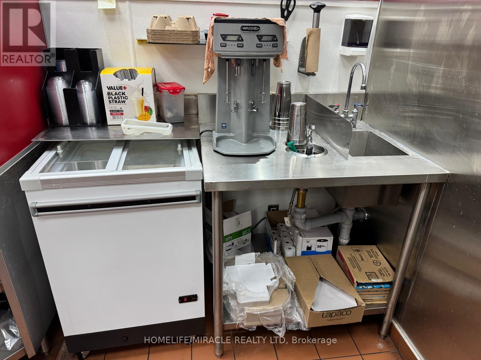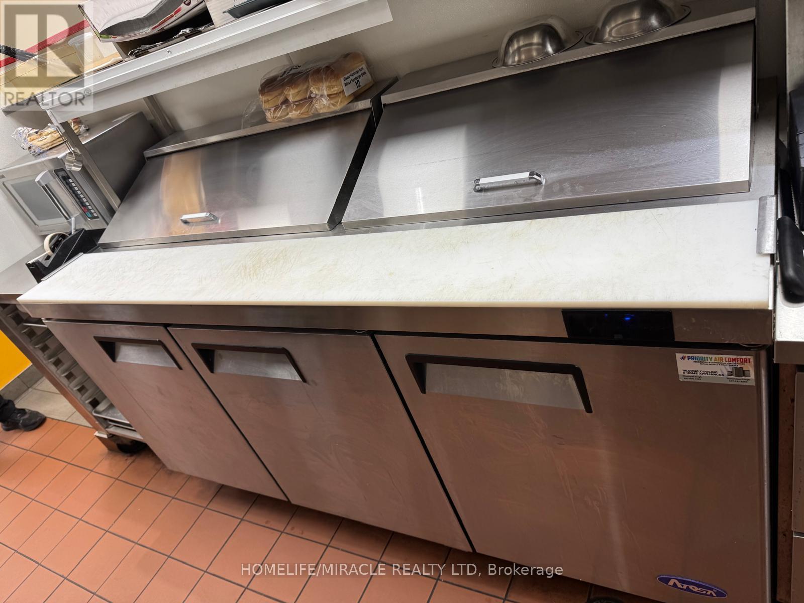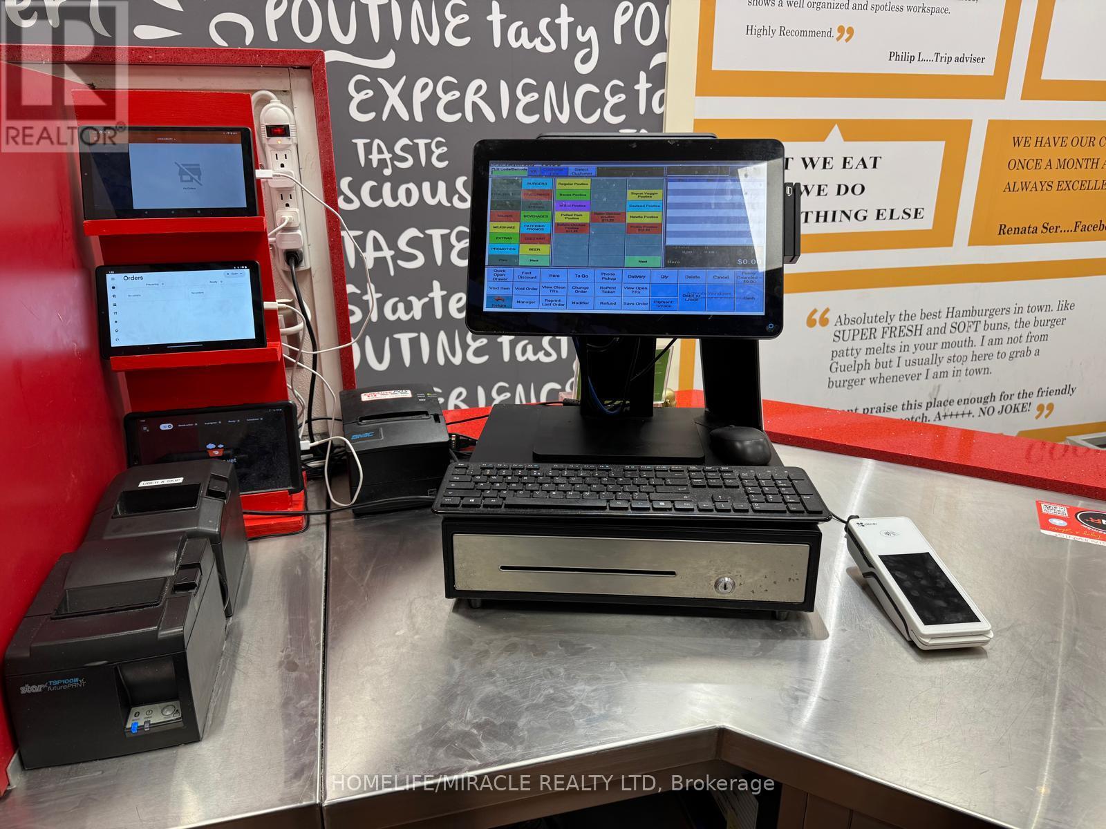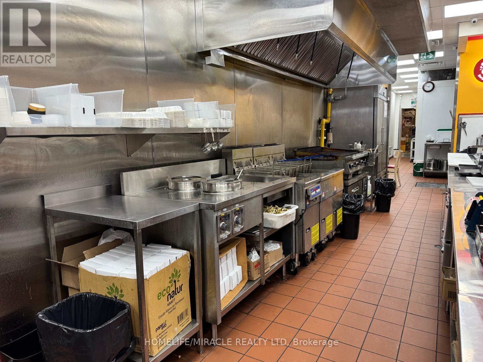 This prime location is a Goldmine for any entrepreneur dreaming of opening their own restaurant or for those wishing to continue the success of an already thriving Turnkey Sam's Grill franchise. Nestled in the bustling heart of Burlington, this spot attracts phenomenal foot traffic, strategically positioned alongside Tim Hortons and Shoppers Drug Mart within a vibrant plaza. Sam's Grill is celebrated for using the freshest ingredients to create mouthwatering, homestyle Burgers, specializing in Quebec-style Poutine, and offering fresh, hand-cut fries without any artificial flavors. The establishment is fully equipped and ready for success, featuring a modern design and state-of-the-art facilities. The completely updated kitchen includes top-of-the-line equipment such as a walk-in cooler, two sandwich stations, and a professional-grade grill. With low industry-standard rent and exceptional visibility in a plaza surrounded by complementary businesses, this location guarantees a steady stream of foot traffic. Whether you choose to continue operating under the well-established and popular Sam's Grill franchise, known for its loyal customer base and high-quality food, or transform the space into your unique concept, this is a perfect opportunity to make your culinary dreams come true in a location already primed for success. (id:64974)