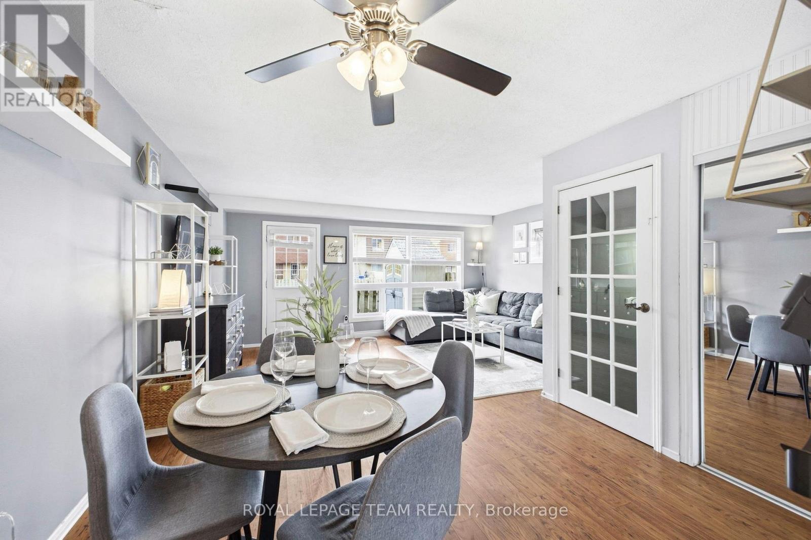 Move-in ready 3-bedroom end unit home in sought-after Blossom Park. The main floor features a walk-through kitchen with plenty of cupboard and counter space, leading into a bright open-concept living and dining area with patio door to the backyard. Step outside to an upgraded patio and convenient storage shed-perfect for outdoor relaxation and entertaining. The second level offers luxury laminate flooring throughout, a spacious primary bedroom with ample closet space, a second bedroom with a beautiful upgraded cedar ceiling, and a well sized third bedroom. The fully finished basement provides additional living space, ideal for a family room, home office, or recreation area. Enjoy an unbeatable location within walking distance to both Catholic and public elementary schools (English and French), bus stops, and Russell Boyd Park, featuring a splash pad, play structures, swings, tennis courts, bocce courts, soccer fields, and small toboggan hills. Outdoor enthusiasts will also appreciate the short drive to Conroy Pit and nearby walking trails.Conveniently located just minutes from Blossom Park Plaza, Southgate Shopping Centre, Towngate Shopping Plaza, South Keys Shopping Centre, the Airport Parkway, and the Greenboro and South Keys O-Train stations. (id:64974)