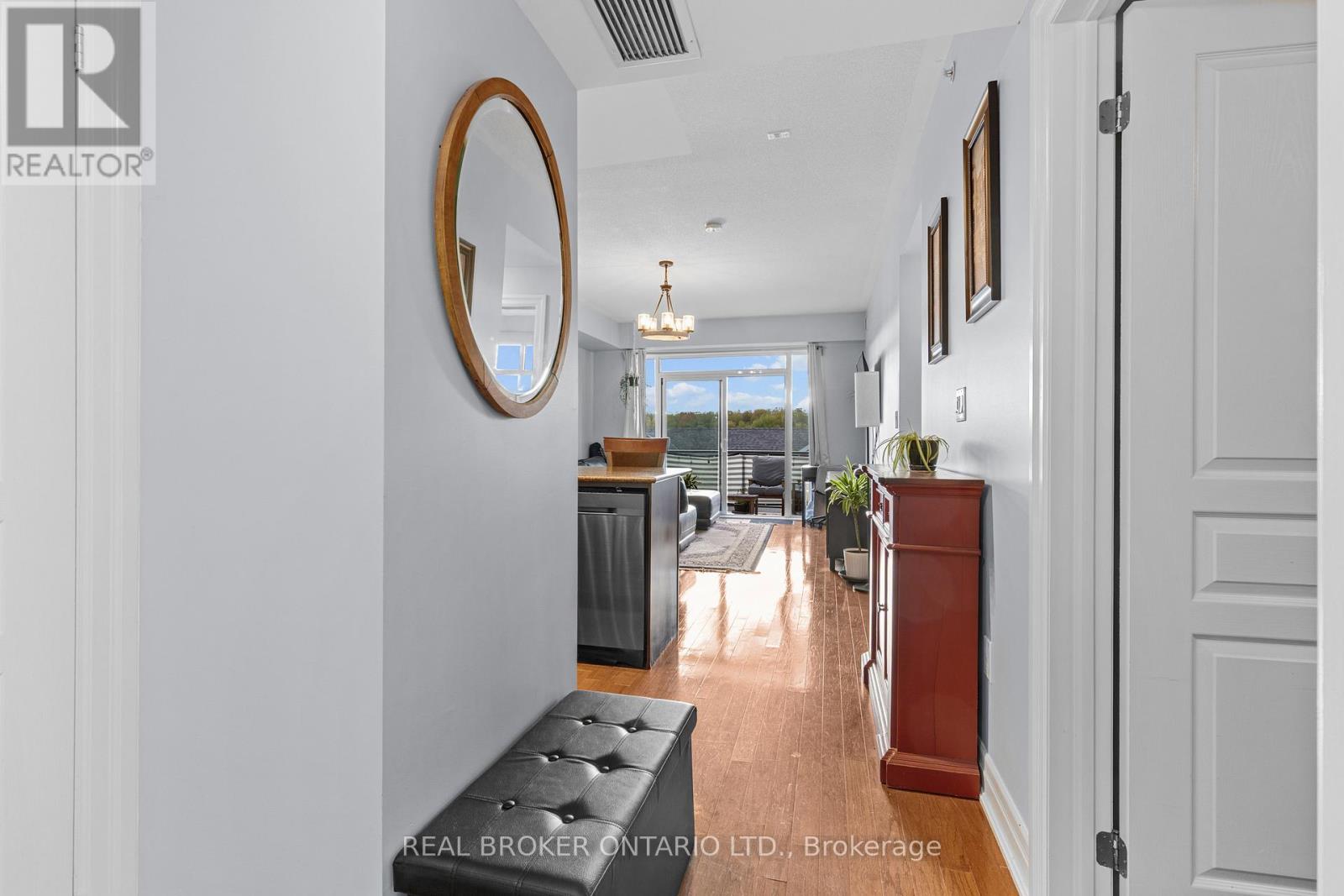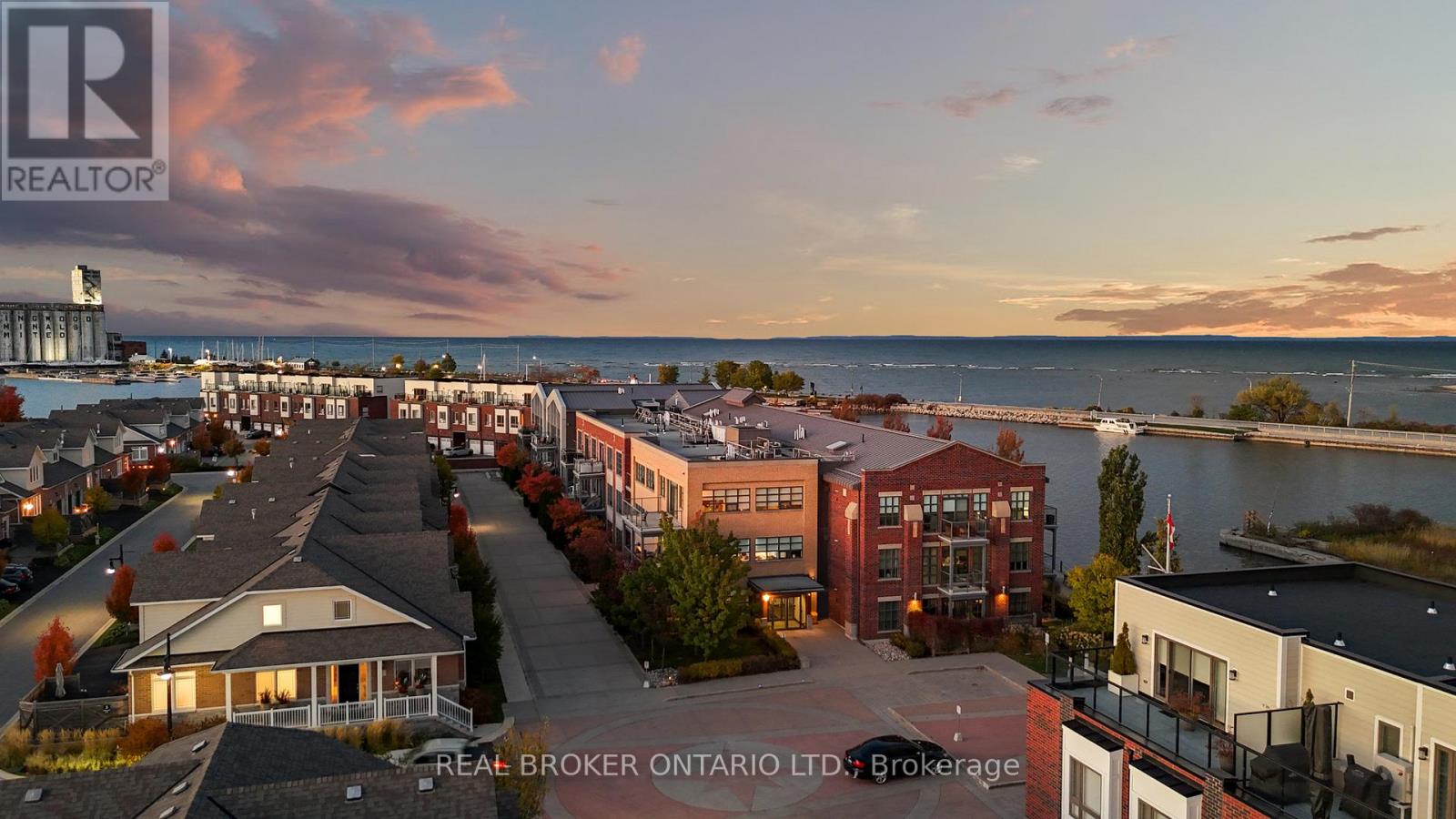 The Shipyards - A premier waterfront address in the heart of Collingwood. This refined third-floor residence showcases sweeping west-facing views of the Escarpment, bathed in golden afternoon light and framed by unforgettable sunsets from the expansive private balcony. The open-concept 1 bedroom plus den layout is designed with both elegance and ease in mind, featuring soaring 9-foot ceilings, a beautifully appointed kitchen with granite countertops and stainless steel appliances, in-suite laundry, and a tranquil primary bedroom highlighted by floor-to-ceiling windows. Residents enjoy a collection of upscale amenities including secure underground parking, elevator access, a canoe and kayak room for effortless days on the water, and a welcoming party room for entertaining. Step outside to the Harbourfront promenade for morning walks along the bay, or wander into downtown Collingwood for fine dining, boutique shops, live music, and theatre. From golfing and skiing to cycling and paddleboarding on Georgian Bay every season brings adventure.Luxury, lifestyle, and location come together in one exceptional address. Welcome to Collingwood living at its finest. (id:64974)