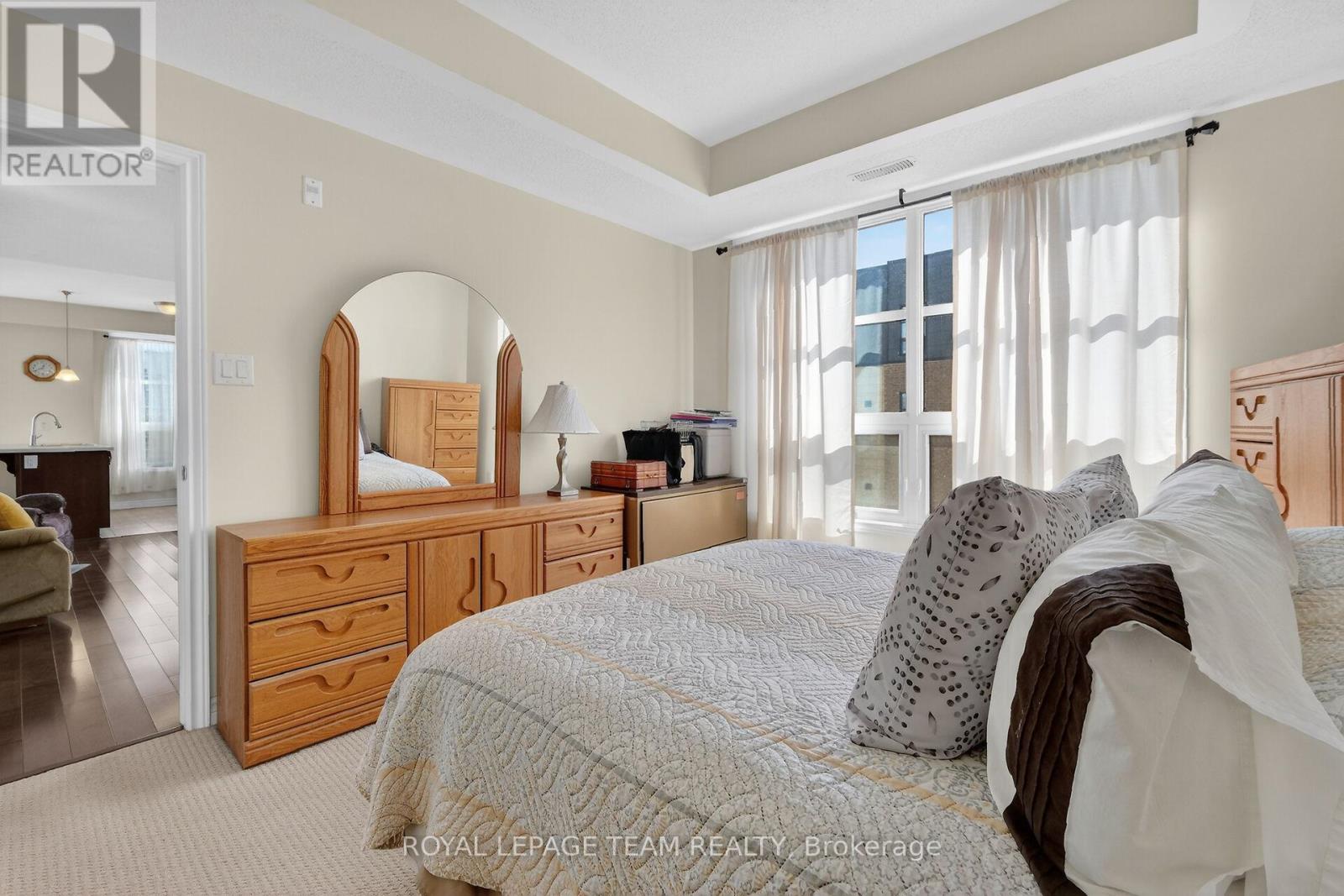Welcome to 302-100 Montblanc Private! We are pleased to share a new listing for a beautiful, single-level condo in the highly sought-after Quarry Glen community. This elegant 2-bedroom, 2-bathroom unit offers a perfect blend of comfort and convenience within a maintenance-free building featuring elevator access. The open-concept layout features soaring ceilings, hardwood, tile & carpet flooring, and large picture windows that provide abundant natural light. The stylish kitchen features a breakfast bar overlooking a bright living room. Additionally, the dining area opens to a large covered balcony, ideal for your morning coffees, reading a book and relaxing in the spring, summer, and fall. The spacious primary suite includes a large closet and a private ensuite bathroom. For added convenience, the unit offers in-suite laundry, generous storage, and two included parking spots. Located in a quiet, private enclave, this community is ideally suited for those looking to downsize. The property is steps away from walking trails, parks, and public transit, and is in close proximity to Place d'Orléans, the Shenkman Arts Centre, and the future O-Train station. Come and see for yourself - schedule a viewing today! (id:64974)