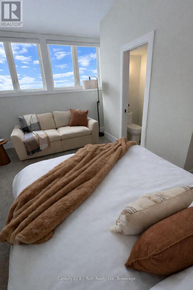 "Brand new and never lived in" this stunning loft-style condo is available for lease across the road from world renowned Deerhurst Resort. 3 Bedroom - 3 bathroom. Offering approximately 1,400 sq. ft. of beautifully designed living space, this top-floor residence features soaring ceilings in the living room and breathtaking panoramic views over Penn Lake and rolling hills stretching nearly 50 km to the horizon. Fully furnished with quality, designer-selected pieces, every detail has been thoughtfully curated for comfort and enjoyment. Fully equipped modern kitchen. Live-edge headboard beds are paired with new Kingsdown mattresses and premium linens. Custom built-in closets provide both convenience and function. Relax fireside while taking in the view, entertain on the spacious open deck bathed in afternoon sun, or stroll across the street to enjoy the exceptional dining experiences at Deerhurst Resort or their many amenities, including a spa, fitness centre, indoor pool, climbing wall, and the world-class Deerhurst Highlands Golf Course. Nearby golf options also include Grandview Golf Club, Huntsville Downs Golf Club, and North Granite Ridge Golf Club. Right next door is Hidden Valley Highlands Ski Area for winter days on the slopes, while summer invites you to unwind at the private Hidden Valley beach on Penn Lake. Autumn delivers breathtaking Muskoka colour from your own private deck, and year-round trails offer peaceful walks through nature. Experience four-season Muskoka living at its finest. A carefree alternative to cottage ownership, this exceptional condo is ideal for those new to the area, professionals seeking a luxury rental, or anyone wishing to "try out" the Muskoka lifestyle before purchasing. Come take a look - you may never want to leave. (id:64974)