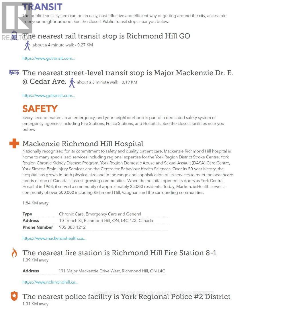 175 Cedar Avenue is located in the Harding neighbourhood of Richmond Hill, a well-established and centrally positioned community known for its quiet residential character and convenient access to amenities. Renters benefit from proximity to key amenities. Grocery stores, pharmacies, banks, and a diverse range of restaurants and cafés along nearby Yonge Street are within short travel distance, reducing daily commute times for errands and dining. The area is served by York Region Transit (YRT) routes with connections to major transit hubs such as Richmond Hill GO Station. This supports commuter access to surrounding communities and transit links toward Toronto and other parts of the Greater Toronto Area. Major thoroughfares, including Highway 404 and Highway 407, are readily accessible by car. This provides flexibility for renters who drive, facilitating commutes to employment centres across the region. Multiple parks and green spaces are nearby, offering walking trails, open areas, and community gathering spots. These contribute to a desirable lifestyle for renters who value outdoor activity and leisure without needing to travel far. Low-traffic residential streets, sidewalks, and access to quality schools and recreational facilities make the neighbourhood appealing for families renting in the area. This enhances overall community safety and quality of life with proximity to community centres, cultural amenities, and public services supports diverse lifestyles and adds convenience for renters of all ages. (id:64974)