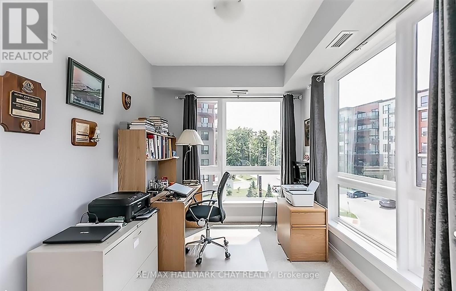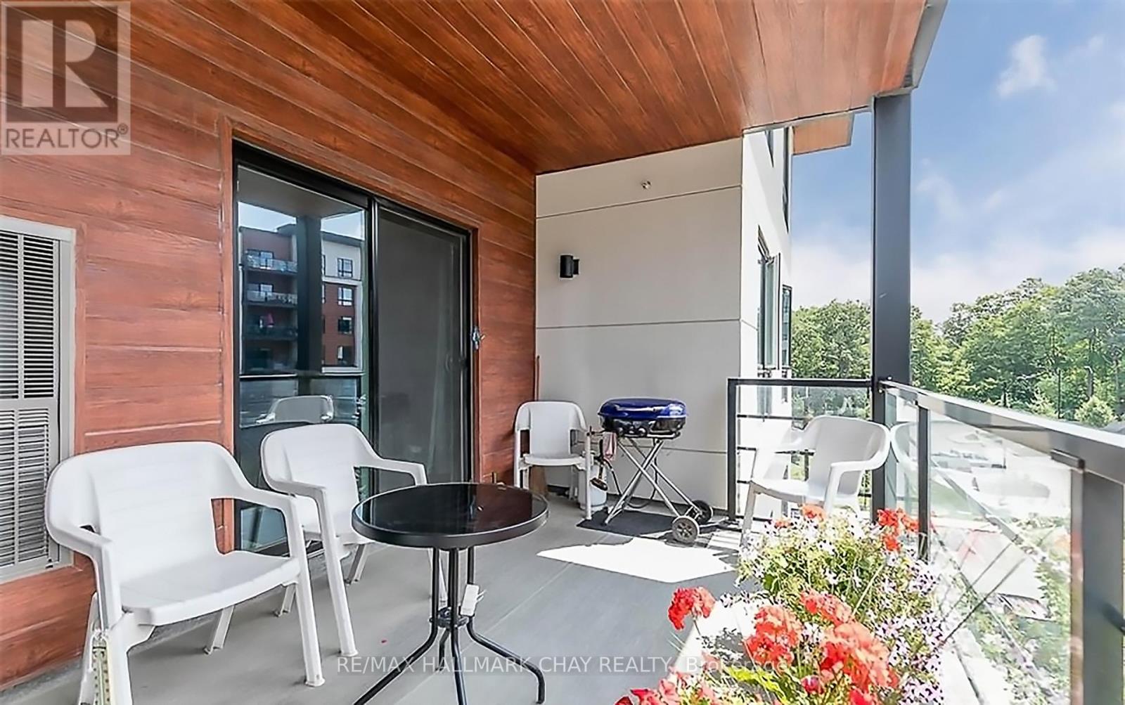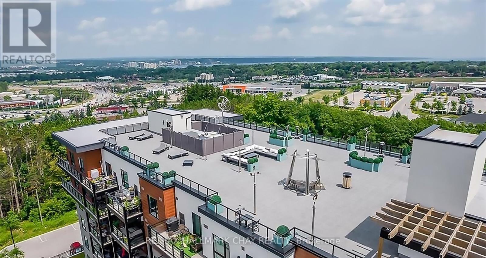 PRESENTING convenience of condo life at The Gallery on Essa Road - where making the switch to a care-free lifestyle feels effortless. Say "goodbye" to mowing lawns and shoveling driveways, and say "hello" to comfort, convenience, and modern living. This sought-after corner suite offers 1,454 sq.ft. of bright, open-concept living, enhanced by 9' ceilings and additional windows that flood the space with natural light. The functional layout includes a spacious primary bedroom, a second generous bedroom, a versatile den/flex space for home office or study zone, and two full baths. Enjoy the convenience of ensuite laundry and the rare benefit of BBQs permitted on your private, premium wrap-around covered balcony - perfect for outdoor dining and relaxation. This condo suite includes TWO owned parking spots (one indoor, one outdoor) plus a dedicated storage locker. Residents of The Gallery enjoy access to one of the area's best rooftop patios - ideal for al fresco dining, entertaining, morning coffee, or unwinding at the end of the day. Step outside and you're moments from Ardagh Bluff's scenic trails for hiking and biking, as well as a full range of amenities including shopping, services, fine and casual dining, entertainment, and all season recreation Simcoe County is known for. Commuters will appreciate easy access to public transit, GO Train service, and major highways north to cottage country or south to the GTA. Experience the ease, comfort, and convenience that condo living at The Gallery has to offer. Take a look today and discover a lifestyle you'll love. (id:64974)