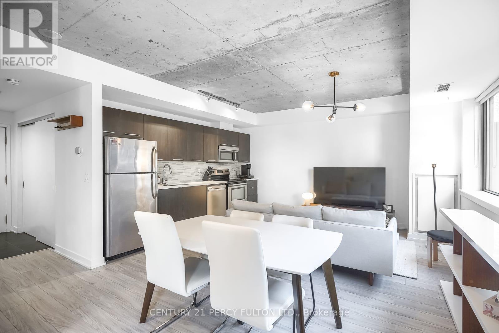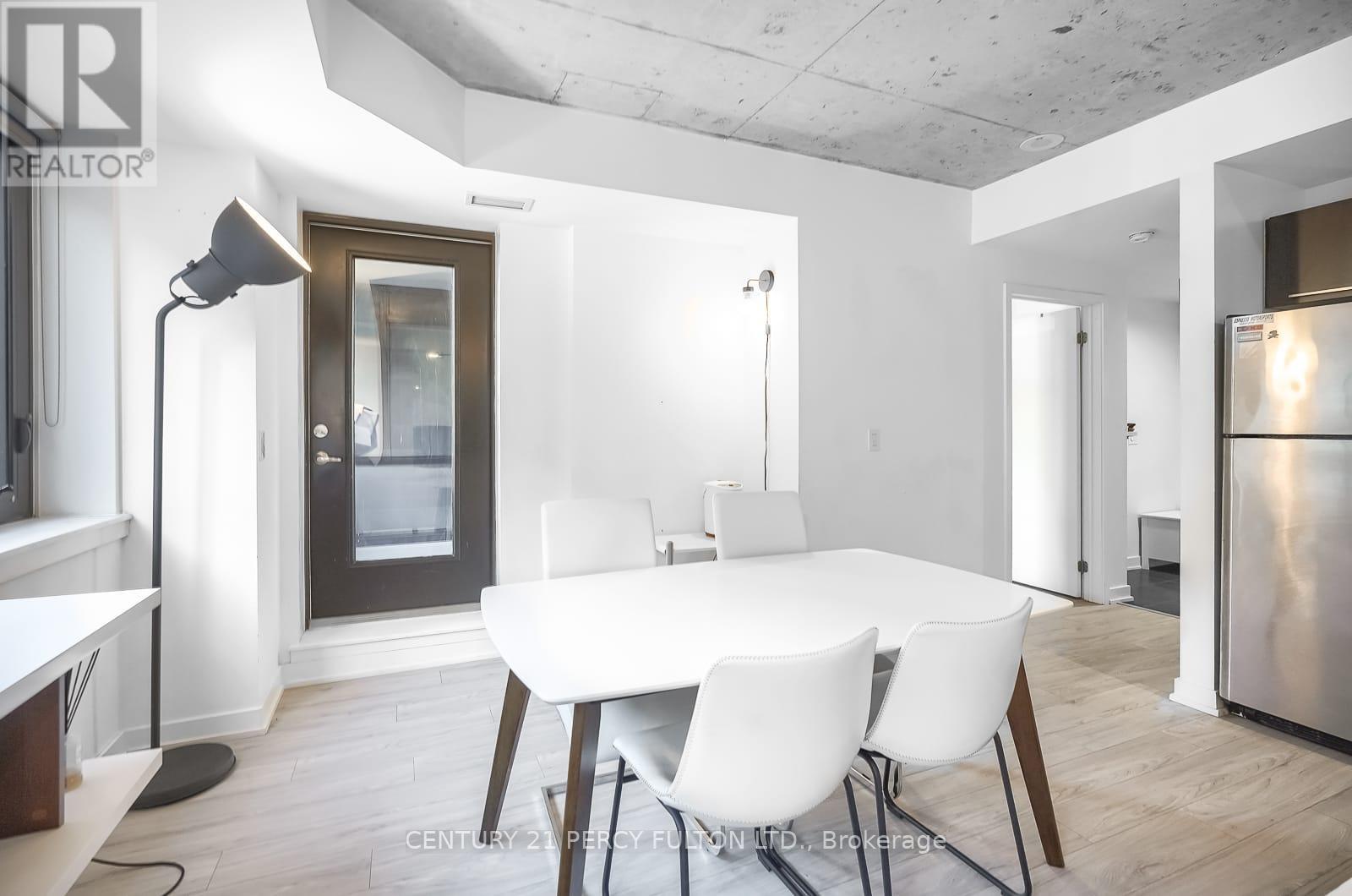 Rarely does a unit become available in this exclusive boutique residence. Welcome to 400 Wellington, quietly tucked away in one of downtown Toronto's most coveted pockets, yet just steps from the city's finest dining, entertainment, and lifestyle amenities. Offering over 600 sq ft of bright, open-concept living space, this suite features exposed concrete ceilings, expansive windows, stainless steel appliances, and vinyl flooring, blending modern design with comfort. Offered fully furnished, this move-in-ready residence is ideal for professionals seeking a seamless downtown lifestyle without compromise. Residents also benefit from an exceptional security team known for their attentive service, personal approach, and commitment to the building's strong sense of community and safety. With the introduction of The Well, Wellington St W has evolved into an even more dynamic destination for upscale dining, retail, and everyday convenience, while nearby King St W continues to define the city's vibrant urban energy. With everything at your doorstep, #302 presents a perfect opportunity to enjoy refined boutique living in the heart of Toronto. (id:64974)