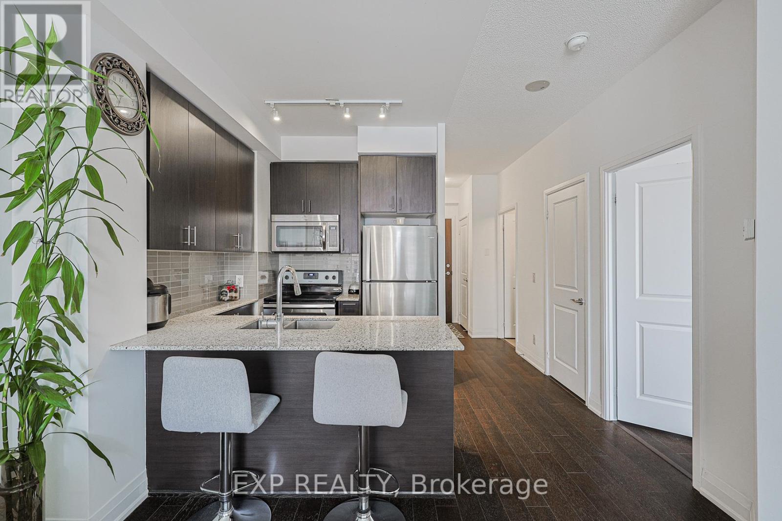 This beautiful 1 + den condo features an open-concept kitchen with 9-foot ceilings which fills the space with plenty of natural light throughout. Situated near Markham Road and Bur Oak, this unit offers easy access to shops, restaurants and transit. (id:64974)