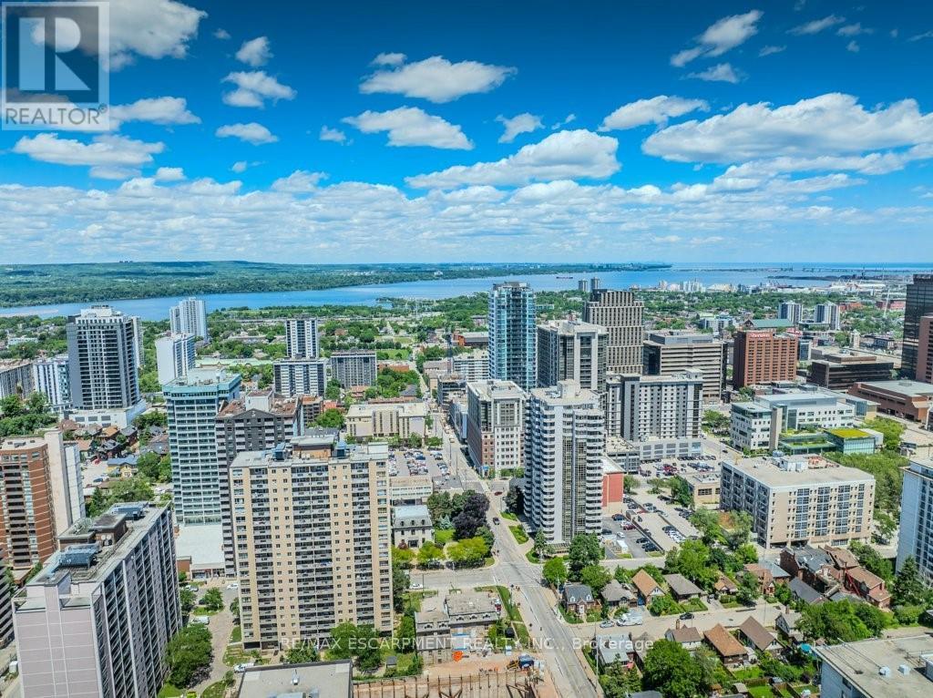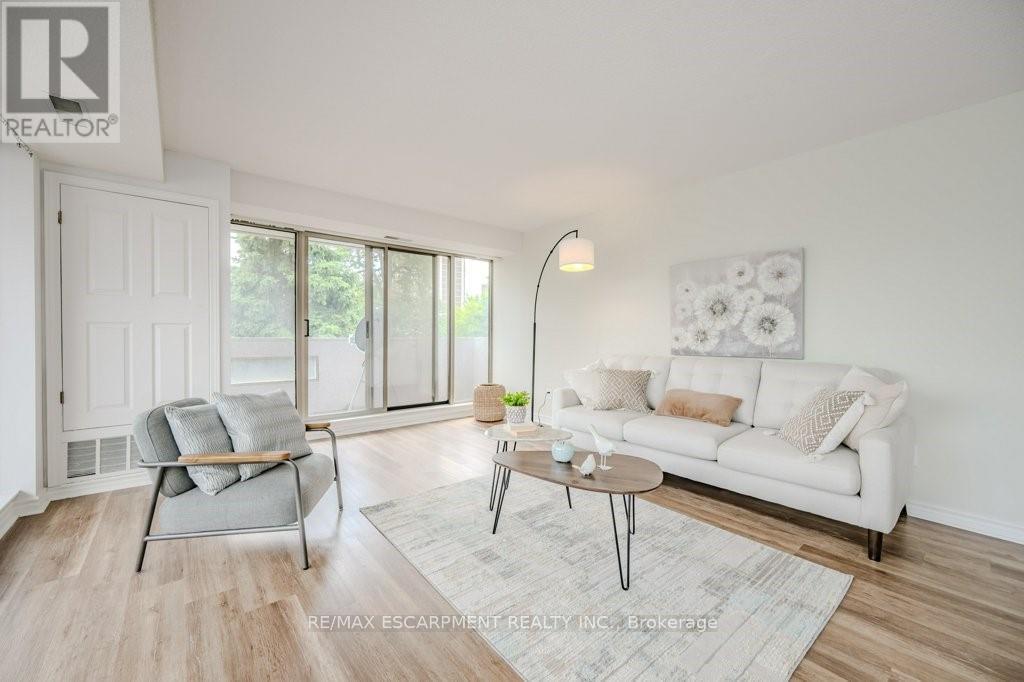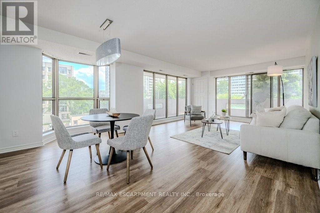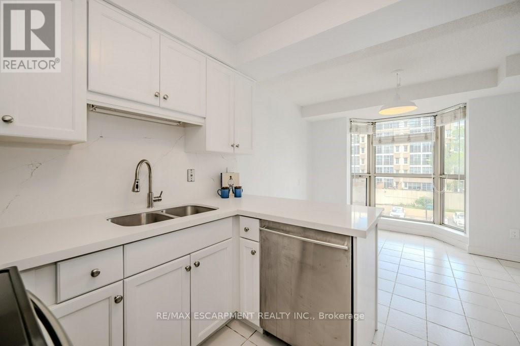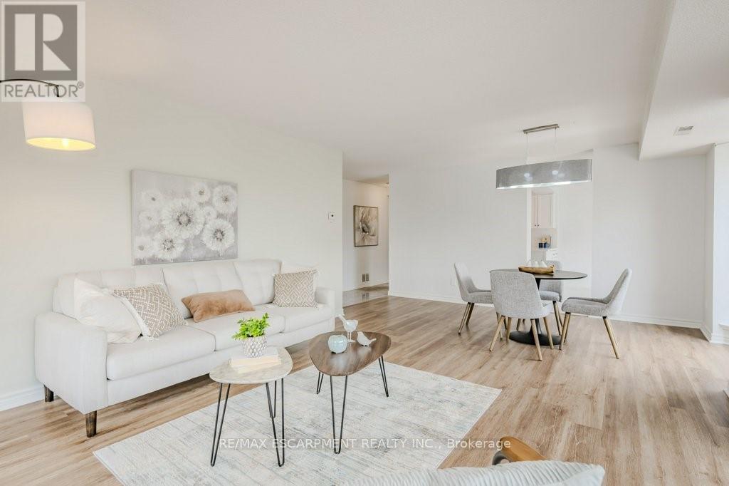 Welcome home to luxury living, Hamilton's Bently building offers prestige and comfort. This unit has a wraparound balcony offering views to the south east and west, open living - dining area, eat in kitchen with new countertops and updated cabinetry. Large bedrooms, walk-in closets, en suite laundry, freshly updated kitchen, flooring and baths. (id:64974)