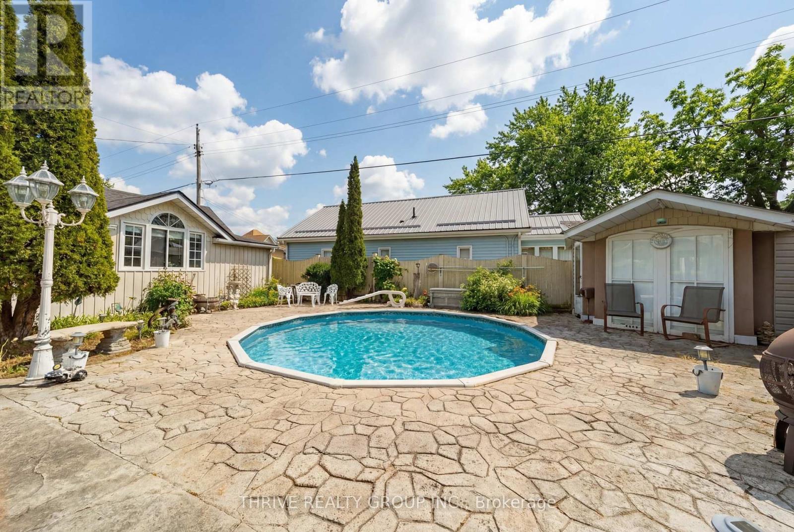 Step into the timeless charm of this beautifully maintained and thoughtfully updated century home, where character meets modern functionality. Set on a unique property with two separate driveway entrances, this home offers exceptional versatility with a rare 4-car attached garage plus an additional detached single-car shop-perfect for hobbyists, car enthusiasts, or extra storage. Designed with entertaining in mind, the backyard is a true summer retreat. Enjoy the in-ground pool surrounded by stamped concrete, multiple lounging areas, and a built-in bar, all complemented by a convenient gas BBQ hookup-creating the ultimate space for hosting family and friends. Inside, the home showcases its historic charm alongside a spacious, well-designed layout. The eat-in kitchen features custom cabinetry and built-in appliances, while large windows fill the main floor with natural light. Multiple living areas provide flexibility, along with a dedicated office, main floor laundry, a generous bathroom with jetted tub, a cozy reading nook, and ample storage throughout. Upstairs offers three well-sized bedrooms, including a primary with a 3-piece ensuite. One of the additional bedrooms features access to a charming front balcony, adding to the home's character and appeal.The oversized heated garage also includes a rear indoor bar-ideal for year-round entertaining-and a convenient pull-through door leading to the detached shop. With its blend of original charm, modern updates, and unmatched garage and outdoor space, this one-of-a-kind property is truly a rare find. Book your private showing today and experience everything this exceptional home has to offer. (id:64974)