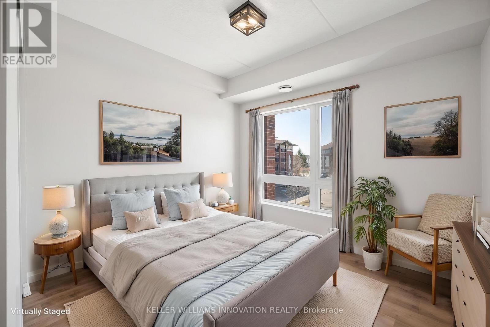 Welcome to this beautifully updated 2-bedroom, 1-bath condo with a versatile den, ideally located on the third floor in one of Guelph's most convenient and sought-after areas. Overlooking a peaceful park, this bright and freshly painted unit features new Siena oak flooring throughout the main living areas and bedrooms, complete with sound-reducing underlayment, along with stylish new light fixtures, a new kitchen sink, and an updated toilet. The functional layout offers comfortable living with added space for a home office or flex area. Enjoy the ease of one owned parking spot and access to a well-appointed amenity building-perfect for hosting gatherings. Just minutes to the 401, this is a commuter's dream, while also being within walking distance to incredible amenities including Longo's, Galaxy Cinemas, restaurants, the library, great schools, trails, GoodLife Fitness, and a Pilates studio. Ideal for first-time buyers or down-sizers, with affordable condo fees-this is an opportunity you won't want to miss! (id:64974)