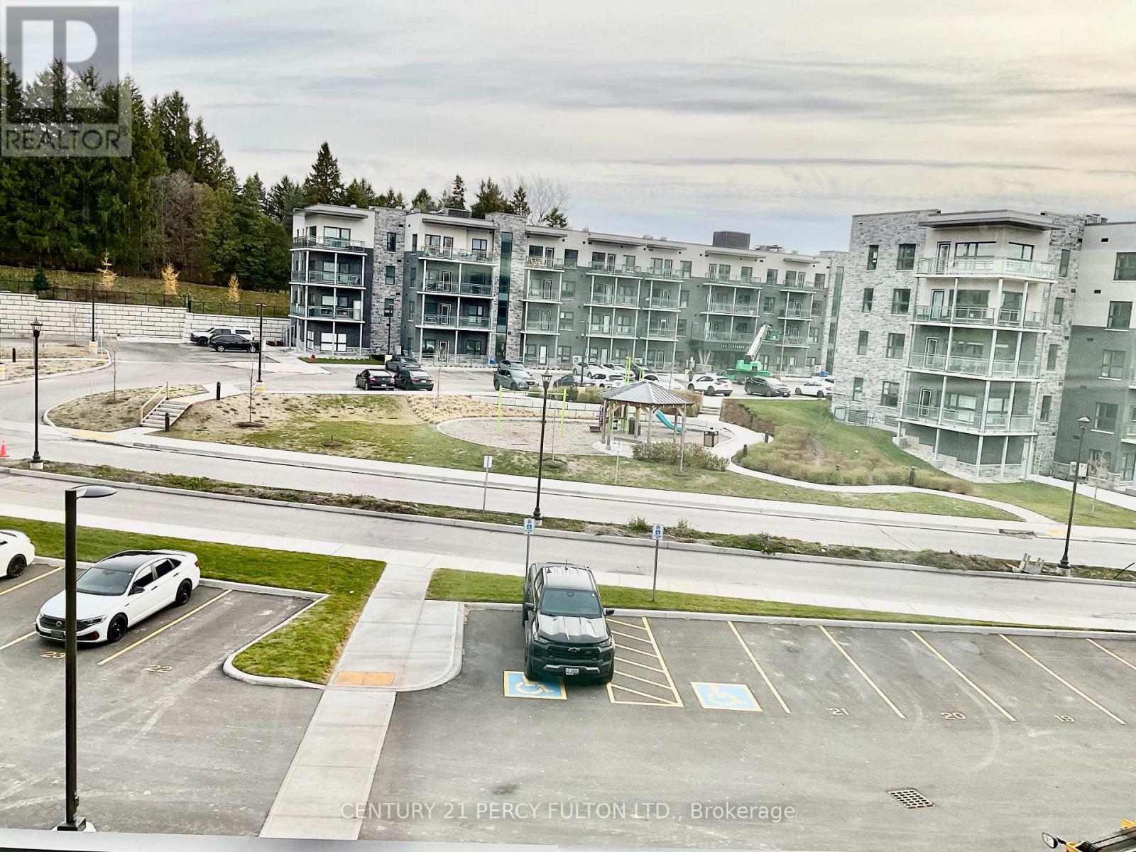 Bright & Modern 1-Bedroom Condo Nestled in Desirable Lackner Ridge community, step into this brand-new, airy 1-bedroom, 1-bath condo, beautifully appointed and move-in ready in Kitchener's sought-after Lackner Ridge community. Spanning approximately 640 sq ft of living space - plus a large 59 sq ft balcony - this unit offers the perfect blend of style, comfort, privacy, and function. Open-concept layout with 9-foot ceilings, and abundant natural light, creating a sense of spaciousness and flow. Contemporary finishes throughout, including elegant laminate flooring. A sleek kitchen finished with quartz countertops and stainless steel appliances - ideal for both everyday meals and entertaining. Relaxing living and dining areas, with a walk-out to a generous balcony that overlooks the serene, tree-lined path of the local walking trail (Natchez Woods Walking Trail).A serene, private primary bedroom featuring a full bath and a large closet. Convenient in-suite, full-size laundry housed in a dedicated laundry room. Includes one surface parking space and a secure locker on the third floor for extra storage. Enjoy comfort-style conveniences in a welcoming building with a gracious lobby, luxurious lounge, elegant party room, visitor parking and shared sitting areas - perfect for hosting or unwinding. This condo is just minutes from daily essentials - big-box stores like Walmart, Costco, Canadian Tire and Real Canadian Superstore - and within walking distance of conveniences such as Food Basics, Rexall and Dollarama. Easy access to major arteries - Highways 7, 8, and 401 - plus public transit including nearby bus routes, the GO Station, and close connections to Wilfrid Laurier University, University of Waterloo and Conestoga College make this location exceptionally convenient. This condo offers the perfect balance of modern sophistication, functional design, and lifestyle convenience. (id:64974)