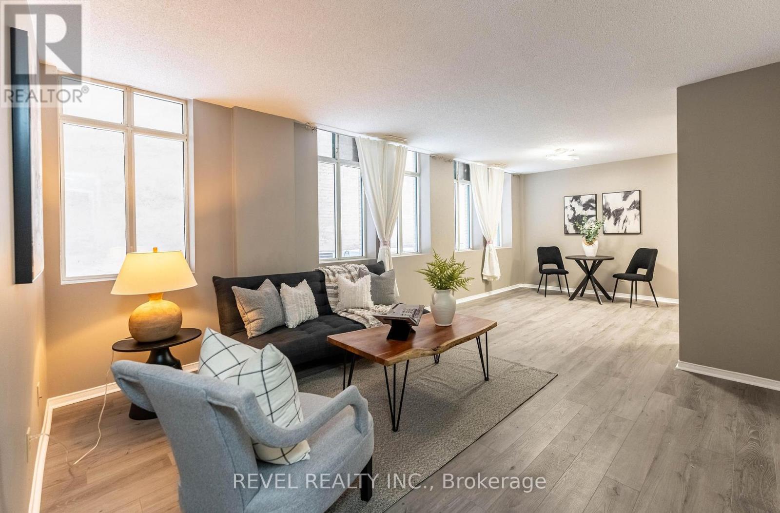 Beautiful open-concept condo in the iconic Pigott Building, blending modern updates with timeless character. Sunlight pours through oversized windows, highlighting the updated, neutral finishes and spacious layout. Enjoy generous closet space, including a large living room closet that can easily be transformed into a built-in media/TV area. Convenient in-suite laundry and fibre optic internet everyday ease. Move-in ready with owned parking space and locker included. Many utilities and gym access are included in the condo fee. Own a piece of Hamilton history just steps to trendy shops and restaurants, the James St. N. arts district, transit and the GO Station-plus minutes to hospitals, Mohawk College, and McMaster University. (id:64974)