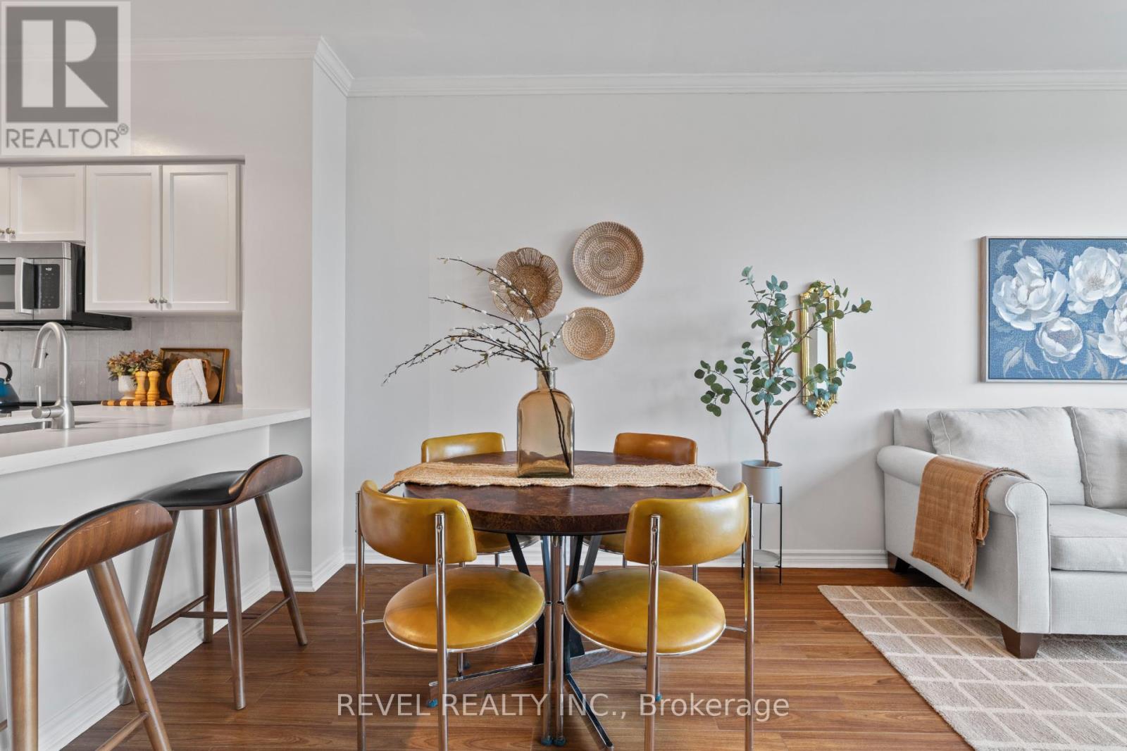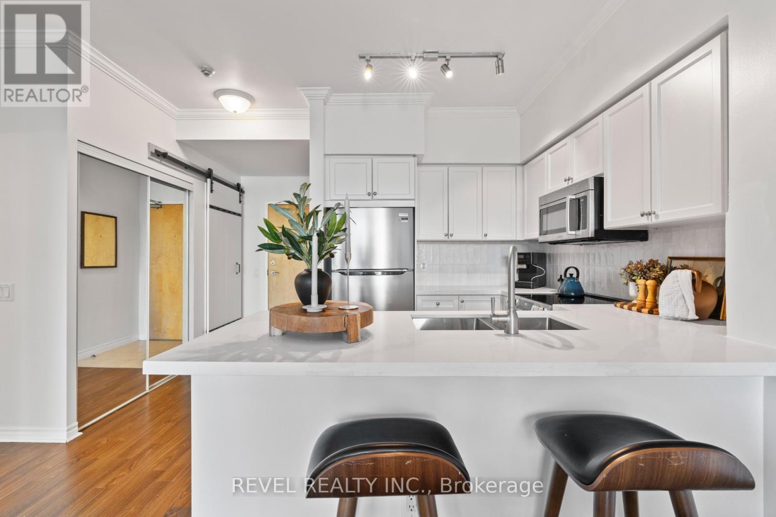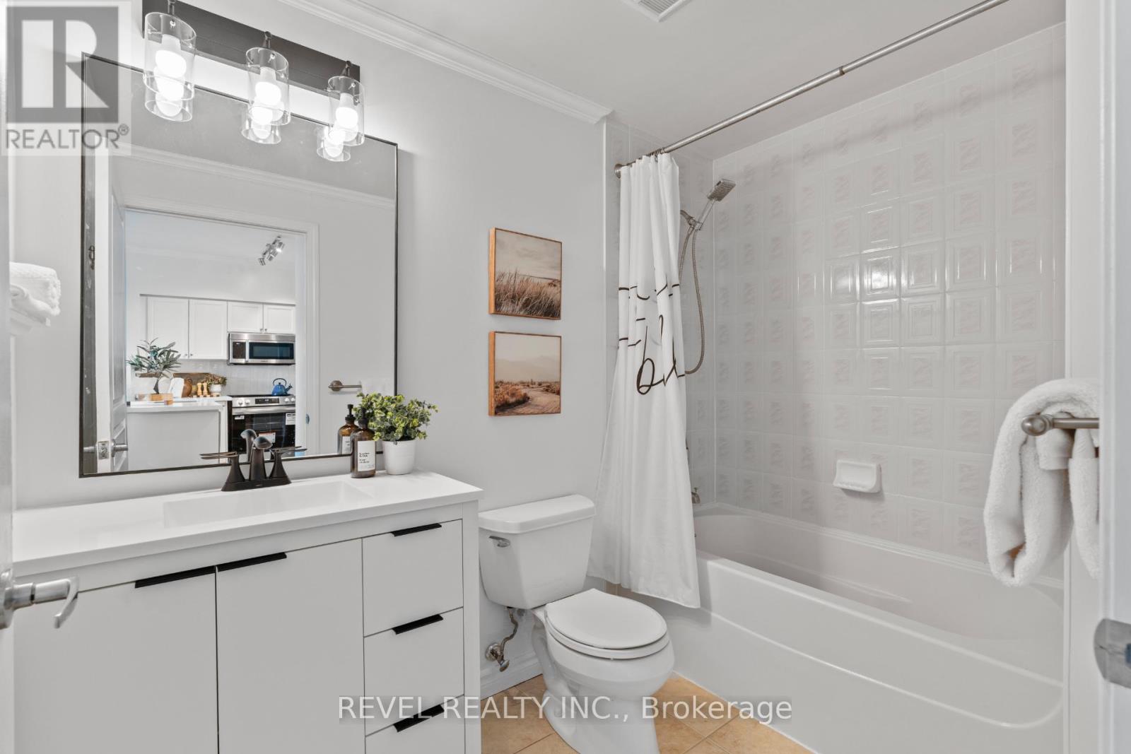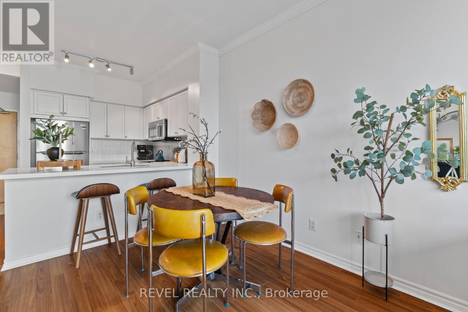 Welcome to #303-5 Marine Parade Drive, a rare opportunity to own in the highly sought-after Grenadier Landing at Humber Bay Shores in Mimico, where waterfront living meets urban convenience. This beautifully maintained lakefront condo offers stunning views of Lake Ontario and the Toronto skyline, creating a serene backdrop to everyday living. Featuring an open-concept layout, the suite boasts a full-size kitchen with a sit-up peninsula overlooking the combined living and dining area, perfect for both relaxing and entertaining. Expansive windows fill the space with natural light, while dual walkouts lead to a private balcony with peaceful views of both the lake and landscaped courtyard-an ideal setting to unwind and enjoy the sounds of nature. The spacious primary bedroom also features direct balcony access and lake views, enhancing the sense of retreat. Complete with in-suite laundry, this unit offers both comfort and functionality. Residents enjoy premium amenities including a gym, rooftop terrace, concierge service, and a beautifully maintained courtyard with a community BBQ area. Ideally located steps to the waterfront, scenic trails, parks, and public transit, with quick access to major highways and downtown Toronto, this is an exceptional lifestyle opportunity in a well-managed building that showcases true pride of ownership. **Utilities Included in Maintenance Fee** Only Pay Internet (id:64974)