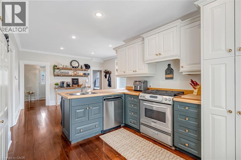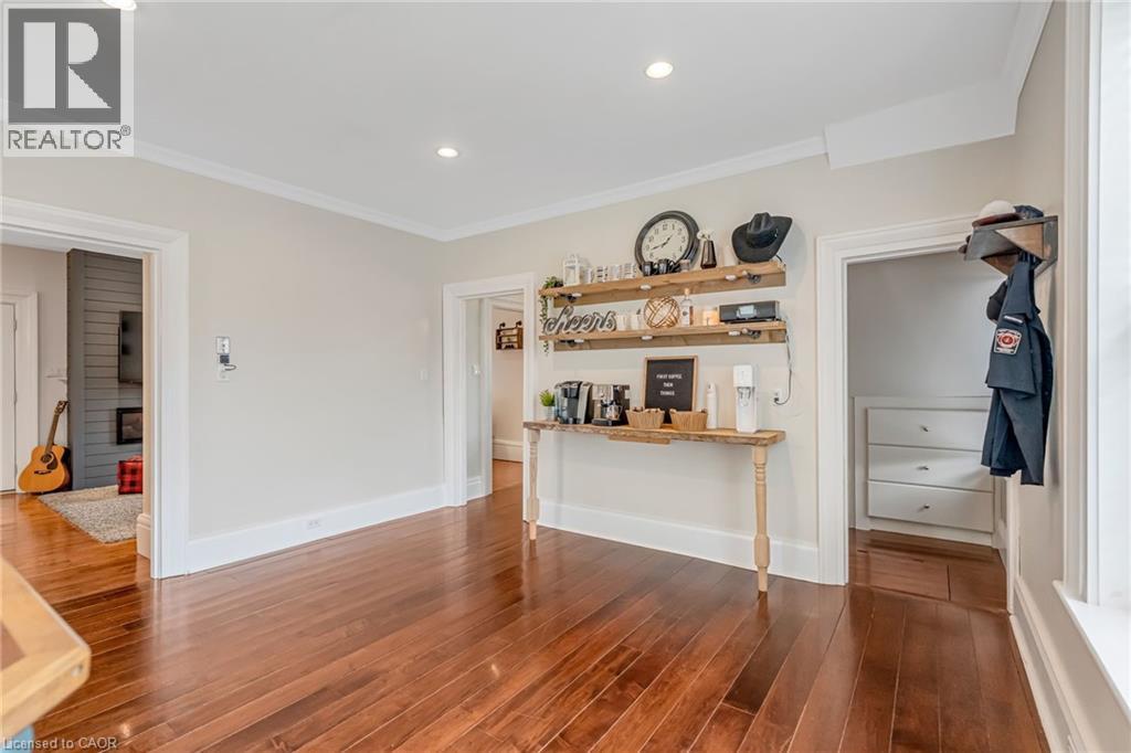 Garage Enthusiast’s Dream in the Heart of Smithville! This charming home sits on a spacious 67’ x 205’ lot and features a rare detached, heated two-car garage with in-floor heating, a two-piece bathroom, and a finished loft space—perfect for a home office, studio, or guest area. Whether you’re a car lover, hobbyist, or need a serious workshop, this space is a game-changer.Inside, the home blends warmth and character with recent updates including fresh interior paint and a refreshed fireplace in the cozy living room. The formal dining room connects seamlessly to the living space and features a built-in window seat overlooking the shaded side deck, which leads to the private backyard and pergola-covered patio—a perfect flow for entertaining or relaxing outdoors. The eat-in kitchen is bright and functional, offering plenty of space for casual meals and family time. Upstairs, you’ll find three generous bedrooms and a fully renovated main bathroom with a walk-in shower and classic clawfoot tub. Rich hardwood floors run throughout, and mechanicals have been updated with a newer furnace and A/C (2019) for added comfort and peace of mind. Located just a short walk to local shops, schools, and amenities, this is small-town living at its best—with a garage that truly sets this property apart. (id:64974)
