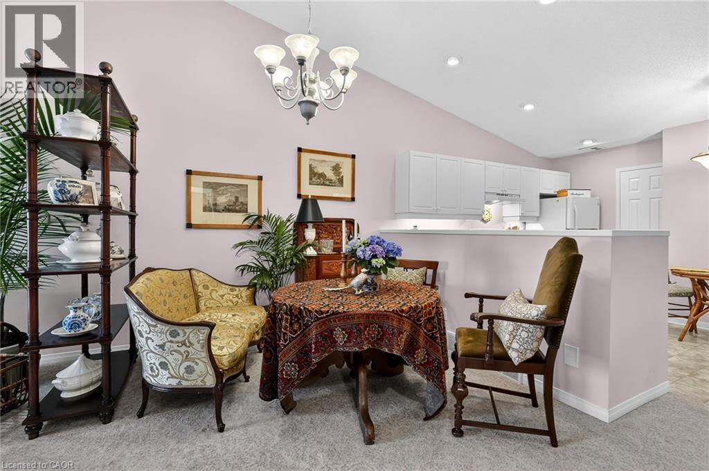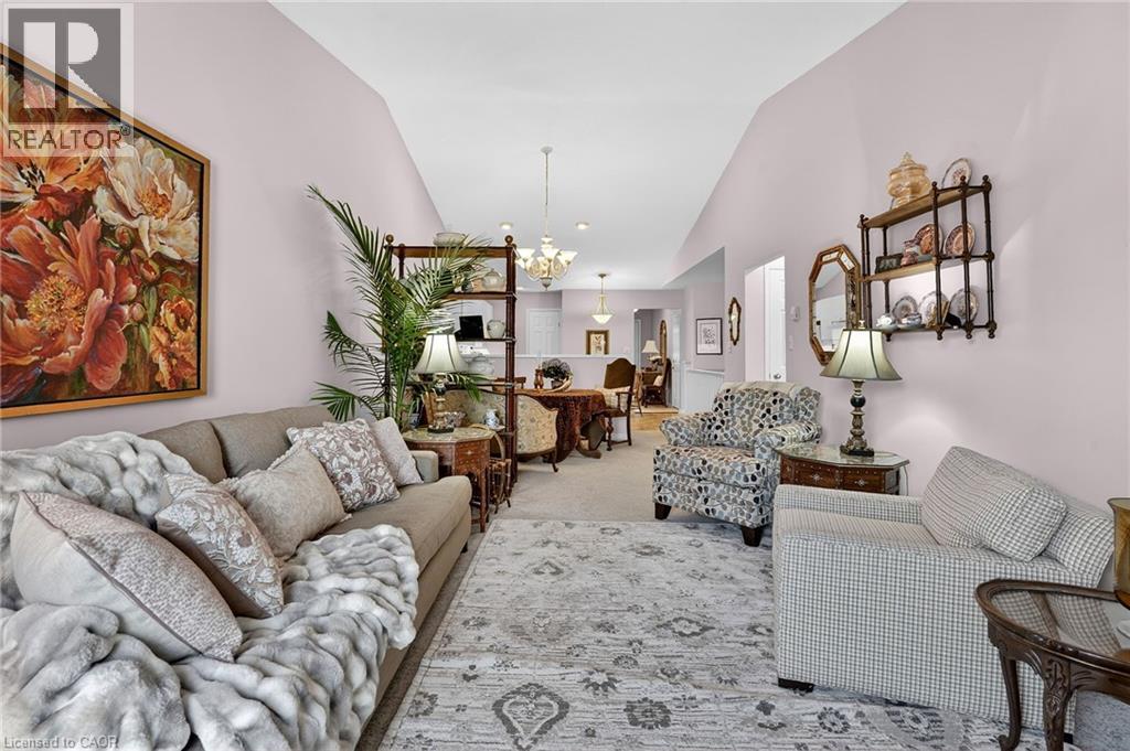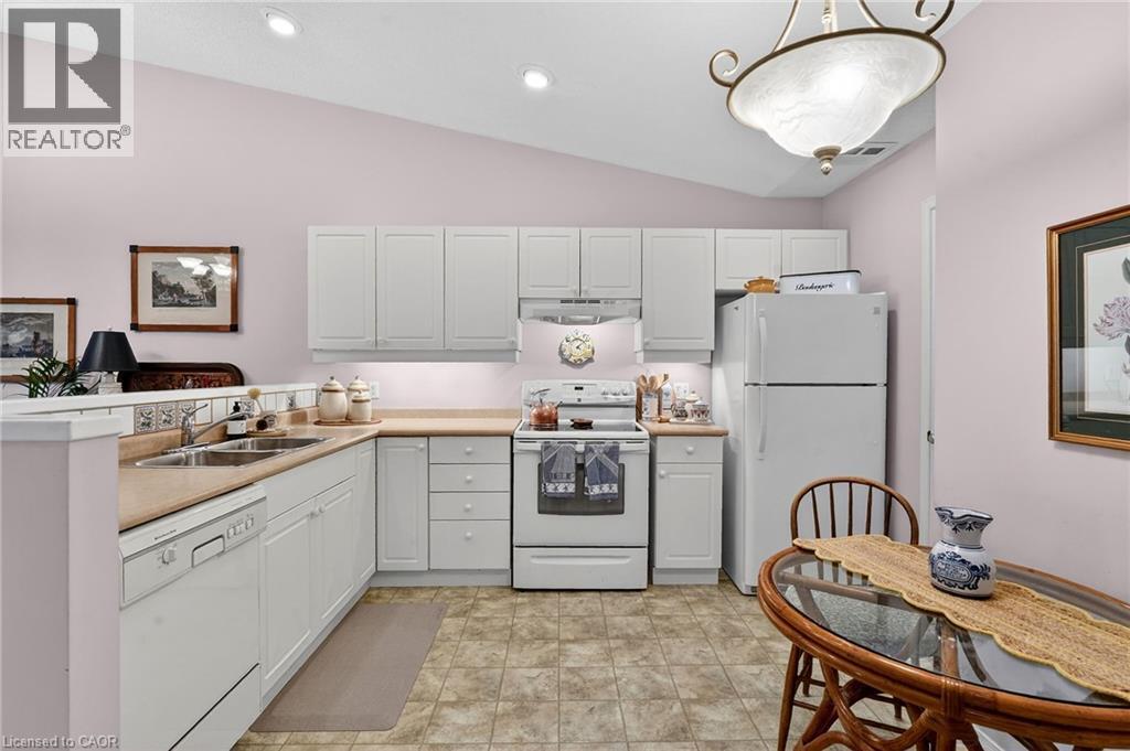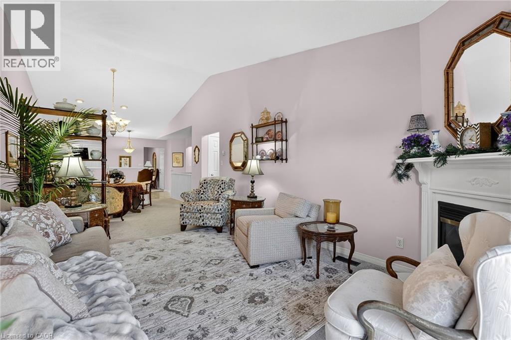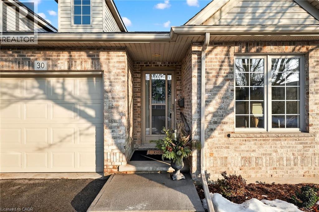 A fantastic opportunity for downsizers, empty nesters, or retirees seeking easy living in an exceptional location. Welcome to Unit 30 at 303 Central Avenue in beautiful Grimsby. This well-maintained 2-bedroom, 2-bath bungalow townhome offers the perfect blend of comfort, functionality, and low-maintenance living in a quiet, sought-after complex just minutes from the QEW, Lake Ontario, shopping, parks, and local amenities. Cathedral ceilings soar through the open-concept kitchen, dining, and living areas, creating a bright and airy feel. The natural gas fireplace adds warmth and charm, while sliding patio doors lead to a freshly stained, private back deck backing onto greenspace—ideal for relaxing or entertaining. The spacious primary bedroom features abundant natural light, double closets, and a 4-piece ensuite. A generous second bedroom or den is conveniently located near the 3-piece bath with walk-in shower. Main floor laundry and interior garage access add everyday convenience. The unfinished basement includes a bathroom rough-in and offers excellent potential for additional living space, hobby rooms, or storage. Condo fees of $450/month include building insurance, basic cable TV, exterior maintenance, grass cutting, and snow removal of common areas (driveway and entry path are owner responsibility). (id:64974)