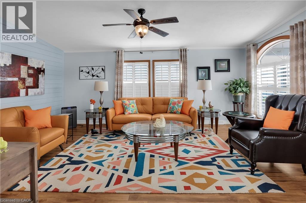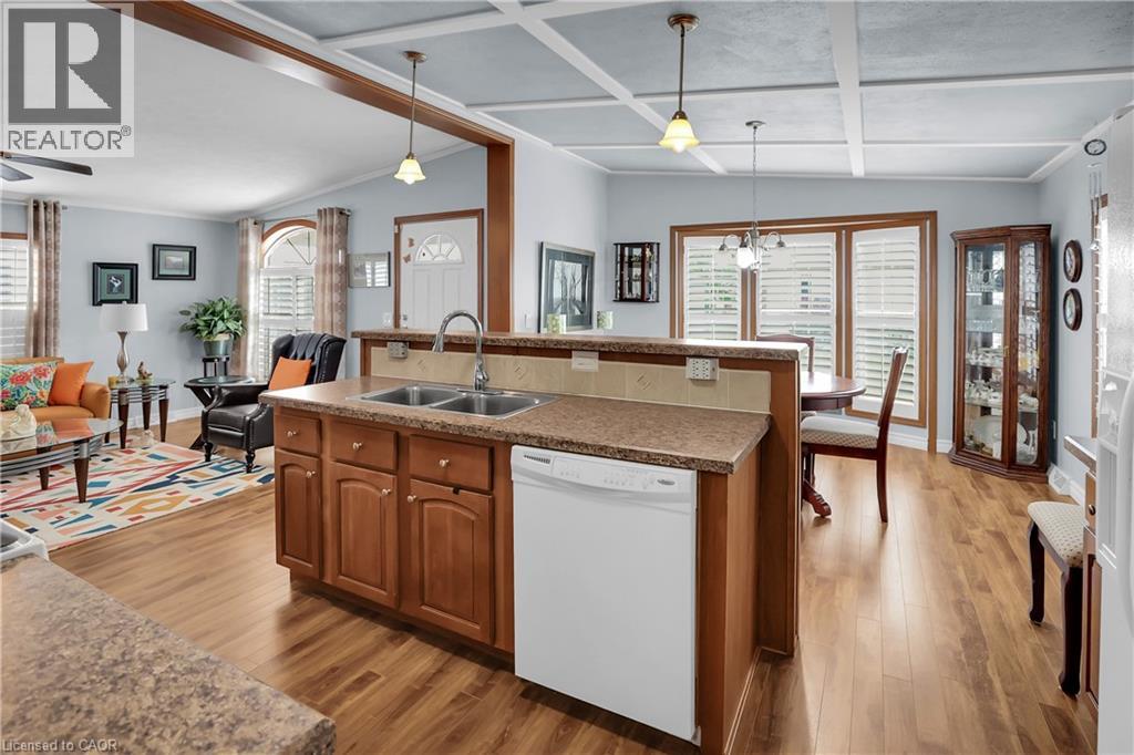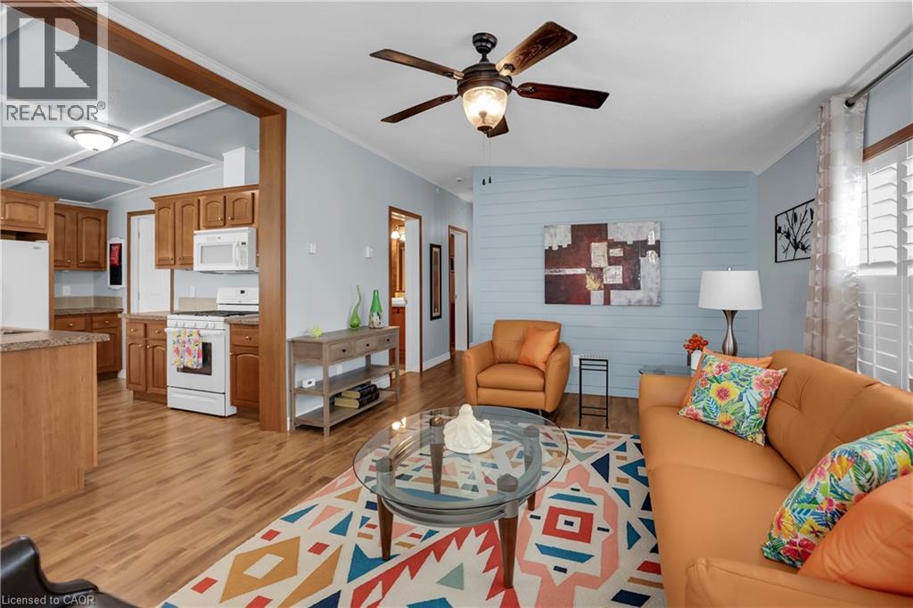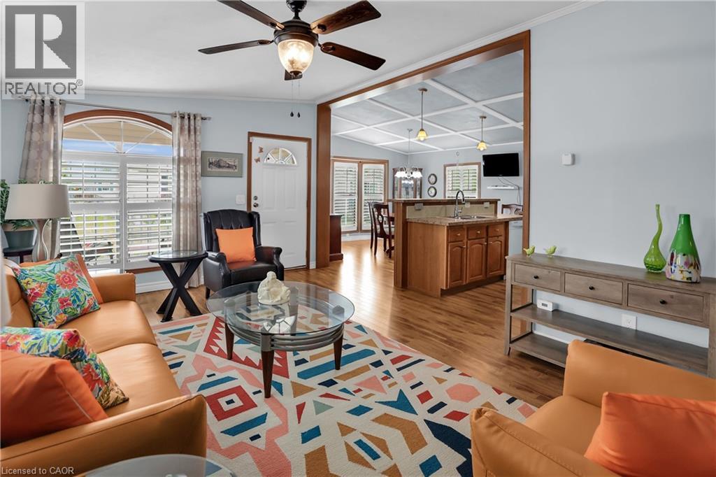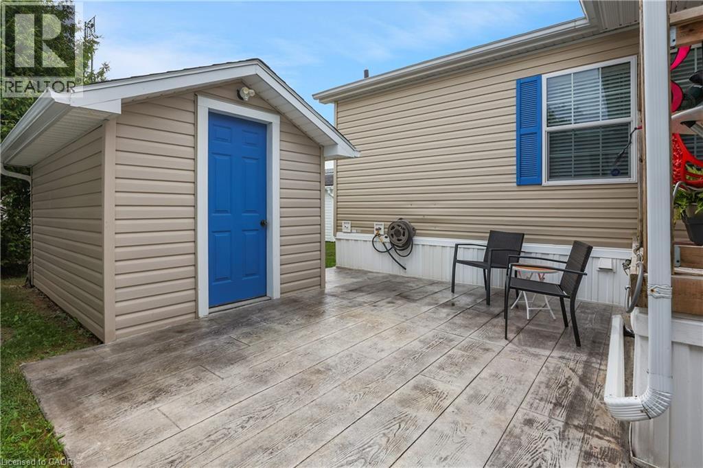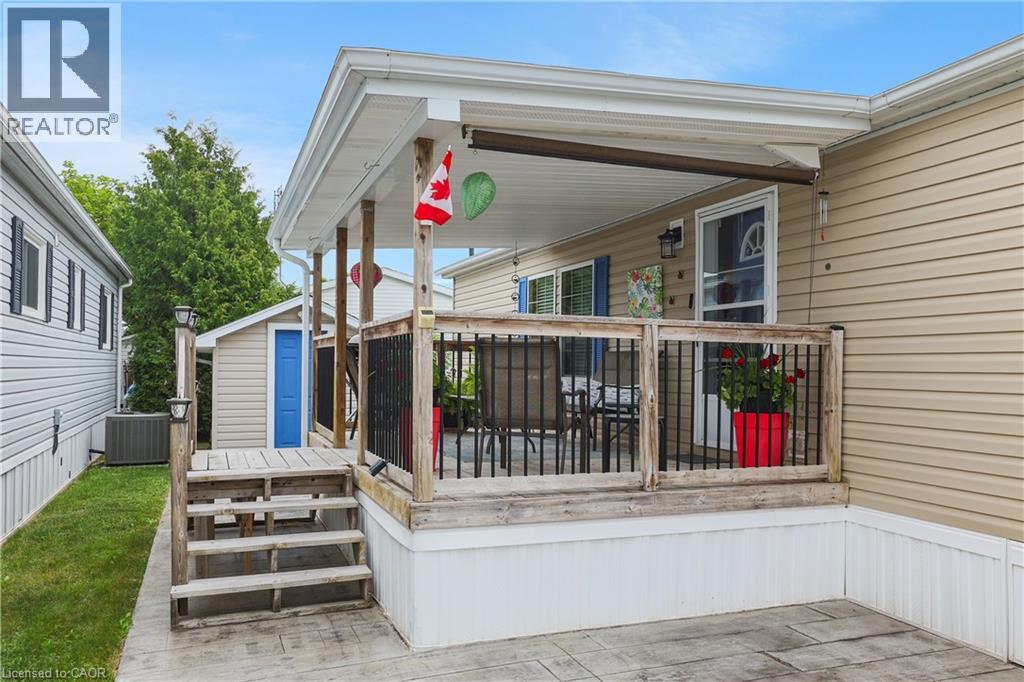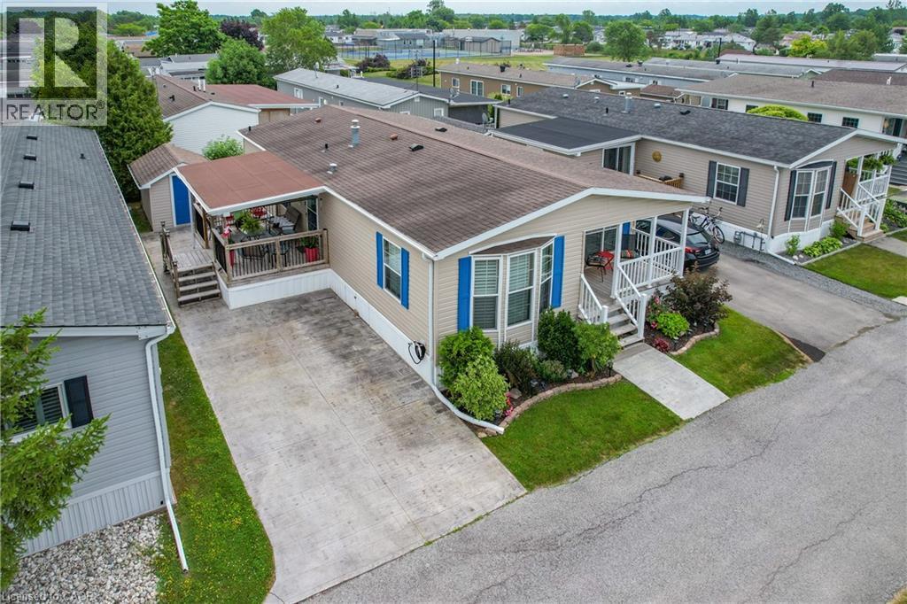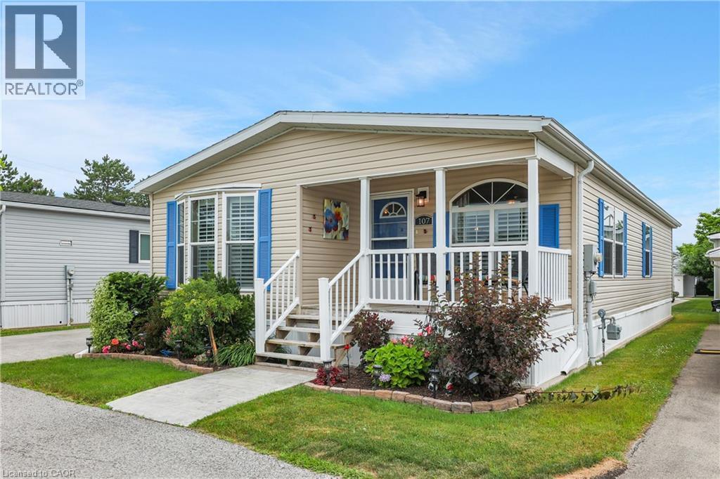 BRIGHT & SPACIOUS BUNGALOW … Welcome to 107-3033 Townline Road (107 Tamarack Ave), nestled in the heart of Stevensville’s vibrant and welcoming adult lifestyle community - a perfect blend of comfort, convenience, and carefree living. This beautifully maintained 3-bedroom, 2-bathroom home offers 1284 sq ft of thoughtfully designed space that’s ideal for those seeking a relaxed and active lifestyle. Step inside to find a bright, OPEN CONCEPT layout featuring vaulted ceilings and California shutters throughout, a spacious living room with lovely accent wall, and flows seamlessly into the dining area and well-equipped kitchen - complete with a breakfast bar island, gas stove, and built-in microwave. The spacious primary suite is a private retreat with a WALK-IN CLOSET and ensuite bath featuring a WALK-IN SHOWER. Two additional bedrooms, a second full 4-pc bath, and a large linen closet offer plenty of room for guests or hobbies. Outside, enjoy your morning coffee on the covered front deck or unwind on the covered side deck with direct access from the laundry room. A walkway leads to a charming STAMPED CONCRETE patio beside the garden shed, perfect for enjoying the outdoors, and continues all the way out front to the double wide stamped concrete driveway (2022). Additional features include leaf filter gutter protection (2021) and a welcoming low-maintenance exterior. Living here means more than just a beautiful home; it’s a lifestyle. Enjoy full access to the community’s incredible amenities: indoor/outdoor pools, sauna, clubhouse, shuffleboard, tennis/pickleball courts, fitness classes, and an active calendar of social events. If you’re ready for low-maintenance living in a close-knit community that offers both peace and activity, this is your opportunity. Monthly Fees $1131.47 ($850.00 Land Lease + $281.47 Estimated Taxes). CLICK ON MULTIMEDIA for virtual tour, drone photos & more. (id:64974)