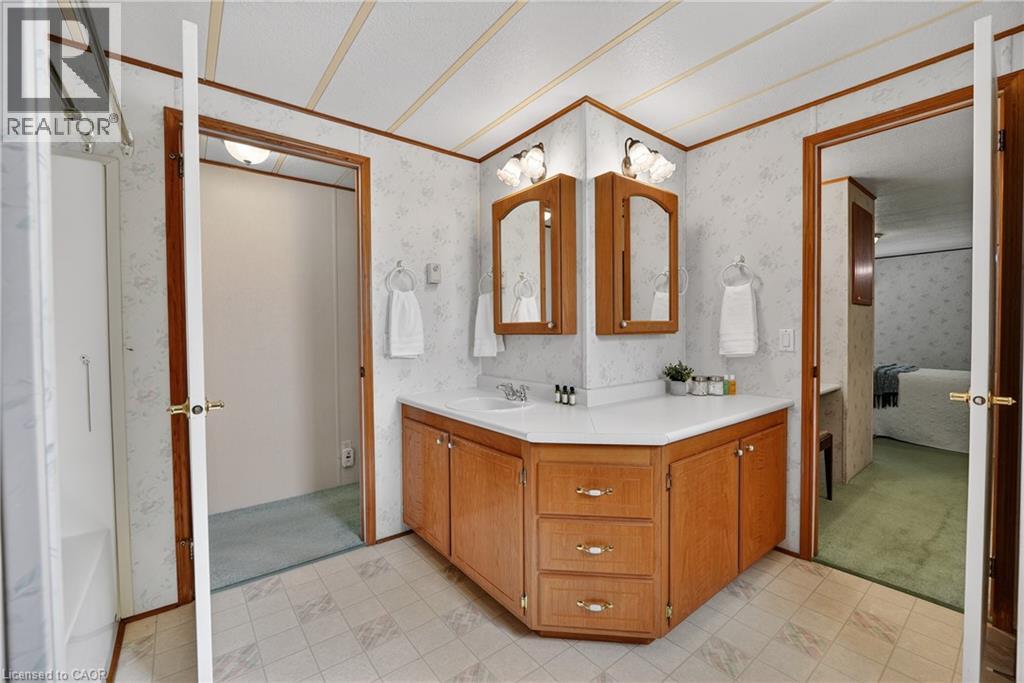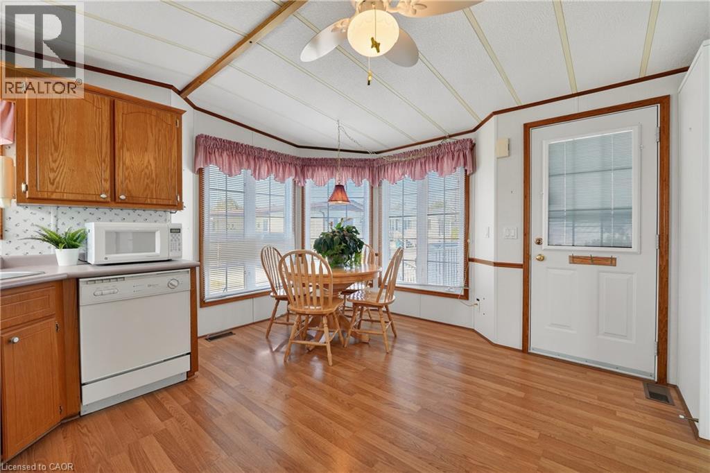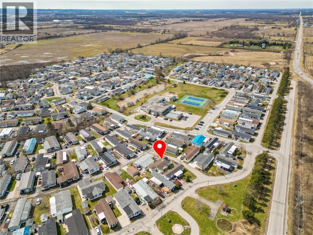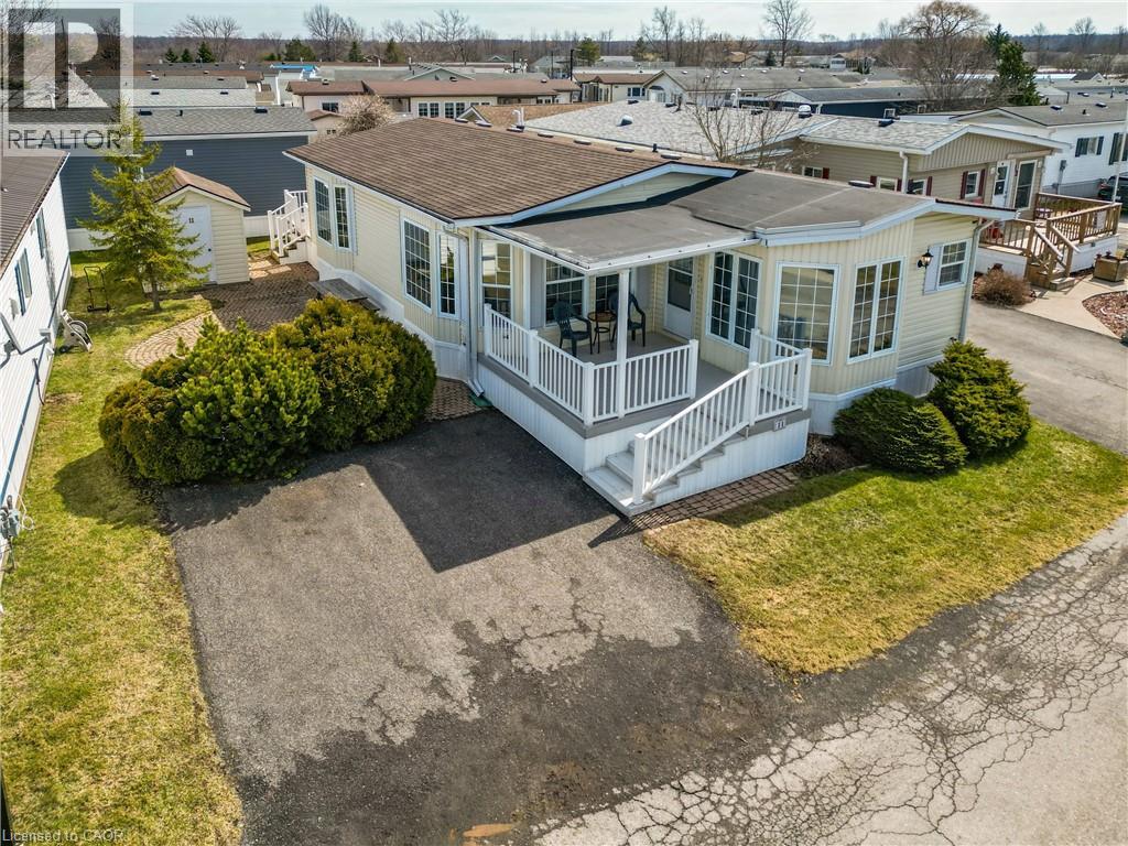 EASY LIVING … Comfort, simplicity & lifestyle come together at 11-3033 Townline Road (11 Elmtree Hollow), set within the sought-after Black Creek Adult Lifestyle Community in Stevensville. This well-maintained 1325 sq ft Northlander modular home offers a functional, easy-flow layout designed for everyday living. Entry from the COVERED PORCH leads directly into a bright, eat-in kitchen that naturally anchors the home. From here, the layout opens into two generous living areas, currently configured as a formal dining room and living room, offering flexibility to tailor the space to your needs. This home features 2 bedrooms and a full 4-pc bathroom with a large linen closet plus convenient ENSUITE PRIVILEGE from the primary bedroom. The hallway in the primary is thoughtfully designed with additional storage, including a double closet and vanity area, while the second bedroom offers its own double closet, as well. Laundry is located within the hallway for everyday ease. Step outside to enjoy a nicely sized yard with PATIO space - perfect for quiet mornings or casual outdoor living - along with a well-sized shed for added storage or hobbies. Mechanical UPDATES include a furnace (2025) and hot water heater (2012), adding confidence to your investment. Living here means more than just a home - it’s a LIFESTYLE. Residents enjoy access to an impressive lineup of community amenities, including indoor & outdoor pools, sauna, clubhouse, shuffleboard, tennis/pickleball courts, fitness classes, and a vibrant calendar of social events. It’s a welcoming, close-knit community that offers the perfect balance of activity and tranquility. With monthly fees of $982.69 ($850.00 land lease + $132.69 estimated taxes), this is an ideal opportunity for those seeking low-maintenance living in a well-established adult community - where comfort, convenience, and connection come together. CLICK ON MULTIMEDIA for virtual tour, drone photos & more. (id:64974)