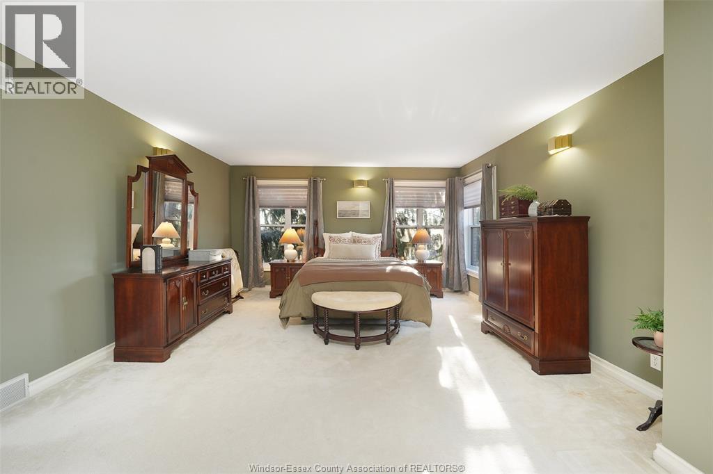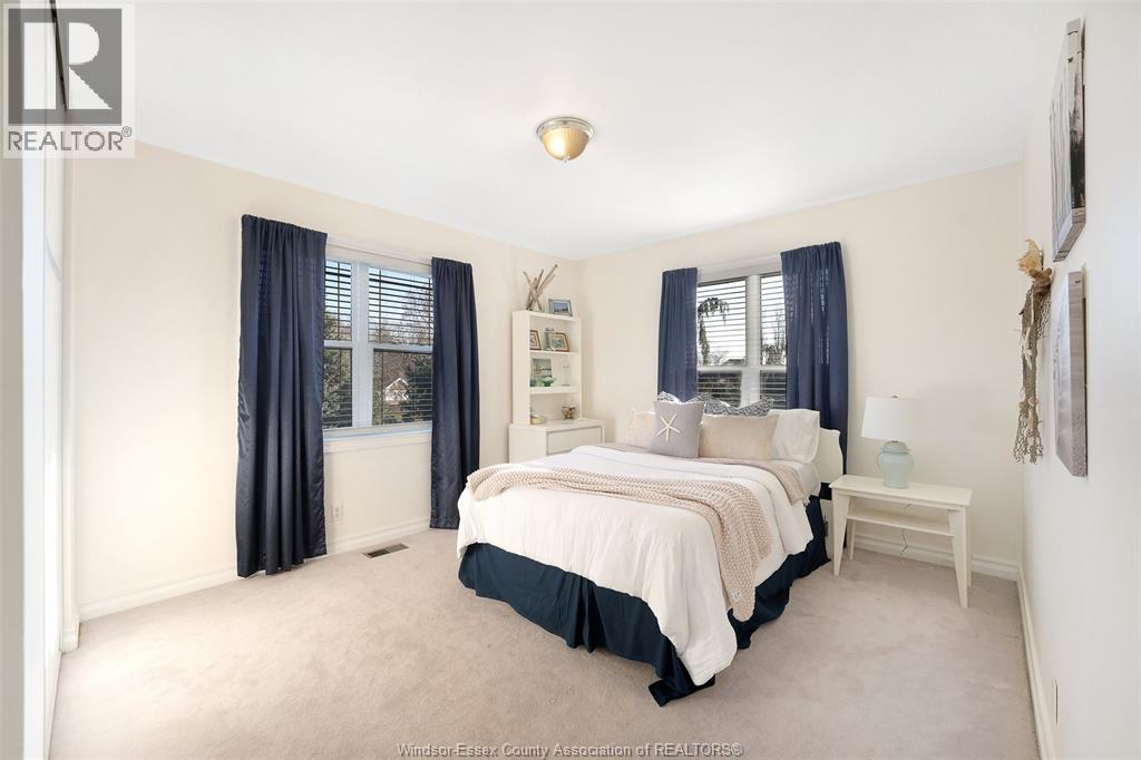 Storybook living awaits on Rowley Park Drive in one of Kingsville's most prestigious executive neighbourhoods, just moments from Lake Erie. This custom-built, 3+1 bed, 2.5 bath 2 stry home with finished basement is offered for sale for the first time in over 40 years. Set on an oversized corner lot with lake views and a park-like, prof landscaped setting, the home has been meticulously maint by its original owners. A light-filled foyer with soaring ceilings and skylights leads to a sunken living room with cathedral ceiling and an expansive dining area ideal for entertaining. The French-style kit feat quality appliances and open to a breakfast nook and fam room with natural fireplace. Upstairs offers a generous primary retreat with ensuite and private balcony, plus additional spacious bedrooms. The fin L/L provides flex living space, include a bdrm, study, and ample storage. Double car garage. A rare opportunity combining charm, space, thoughtful design, and a welcoming community. (id:64974)