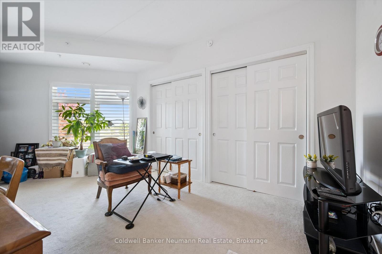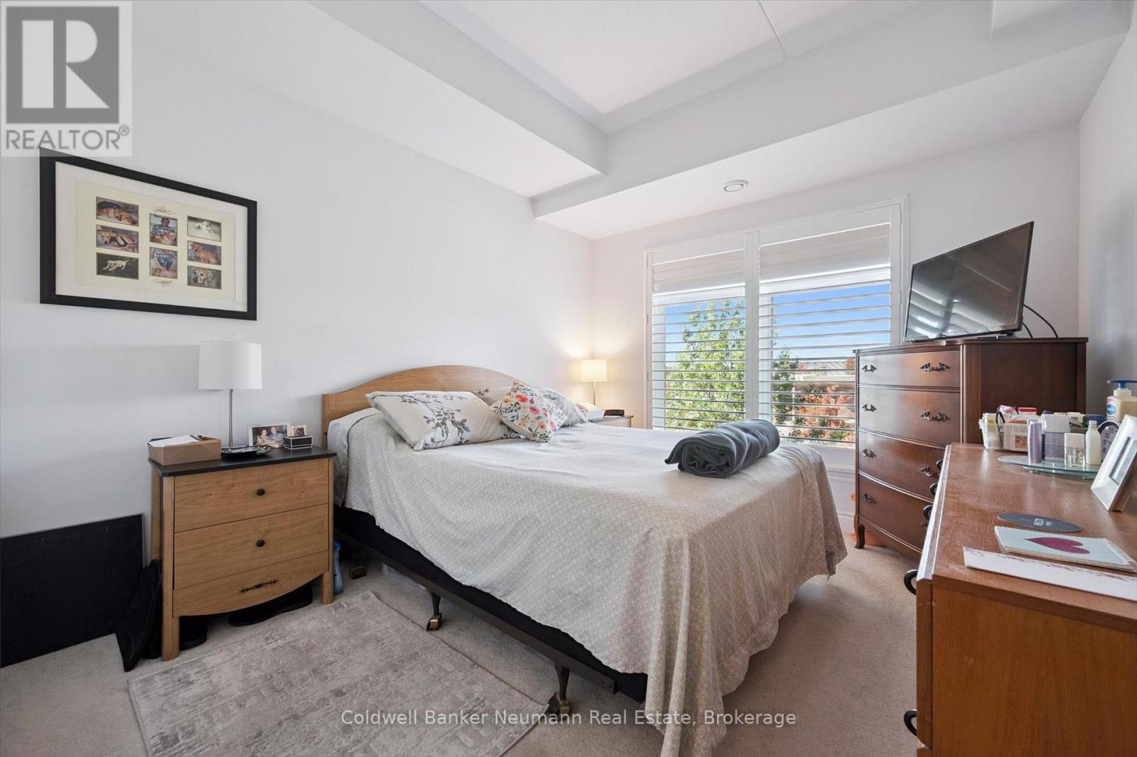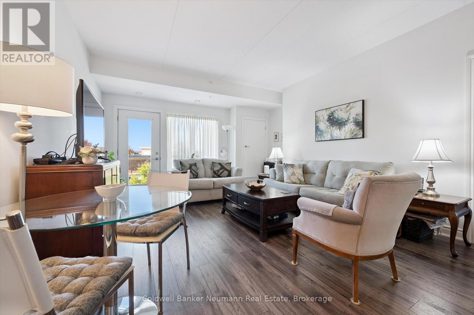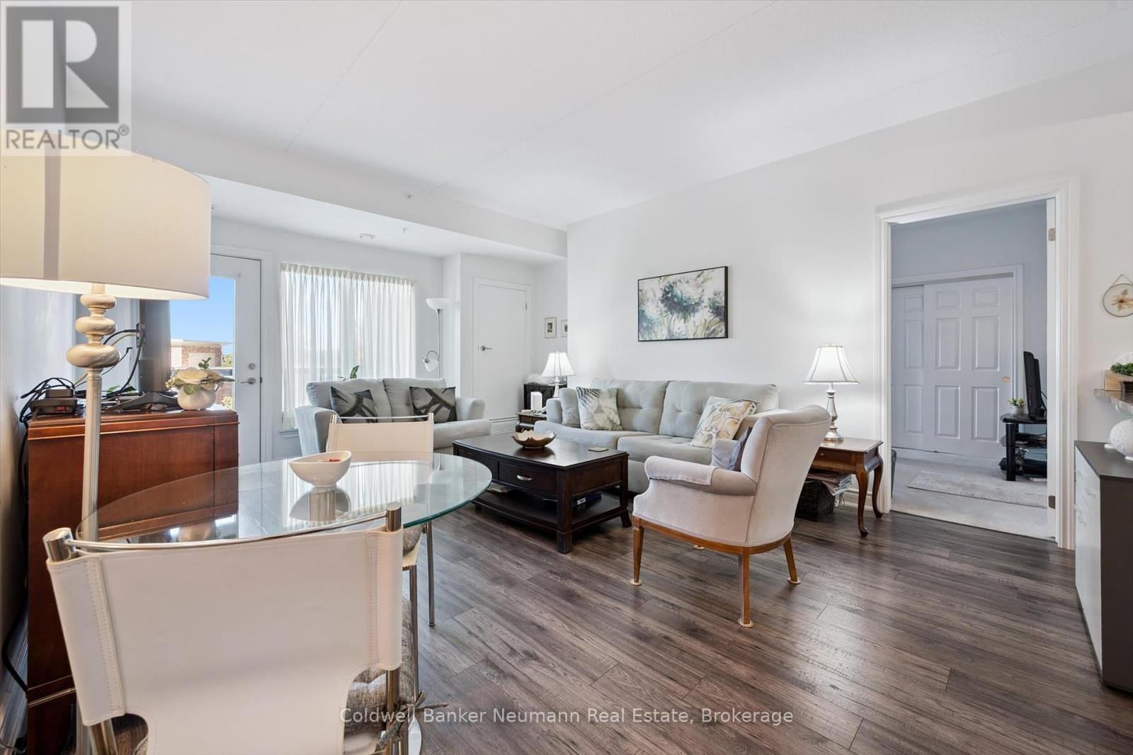 Discover stylish, maintenance-free living in this spacious and sun-filled 2-bedroom, 2-bathroom condo in Guelphs sought-after South End. Perfectly suited for first-time buyers, downsizers, or investors, this open-concept suite offers modern finishes and smart design in a well-managed, secure building.The open-concept living and dining area is filled with natural light thanks to oversized windows and 9-foot ceilings. The white kitchen features a granite countertop with breakfast bar, subway tile backsplash, and stainless steel appliances, creating a clean and functional space for everyday living.The primary bedroom includes a private 3-piece ensuite, while the second bedroom is ideal for guests, a home office, or shared accommodation. Additional highlights include in-suite laundry, engineered hardwood flooring, and one secure underground parking space. Ground floor entry adds extra convenience for daily access.Residents of this well-managed building enjoy access to excellent amenities including a full fitness facility, party room, rooftop terrace, and ample visitor parking. Located just minutes from the 401, restaurants, grocery stores, banks, and more, everything you need is close by. (id:64974)