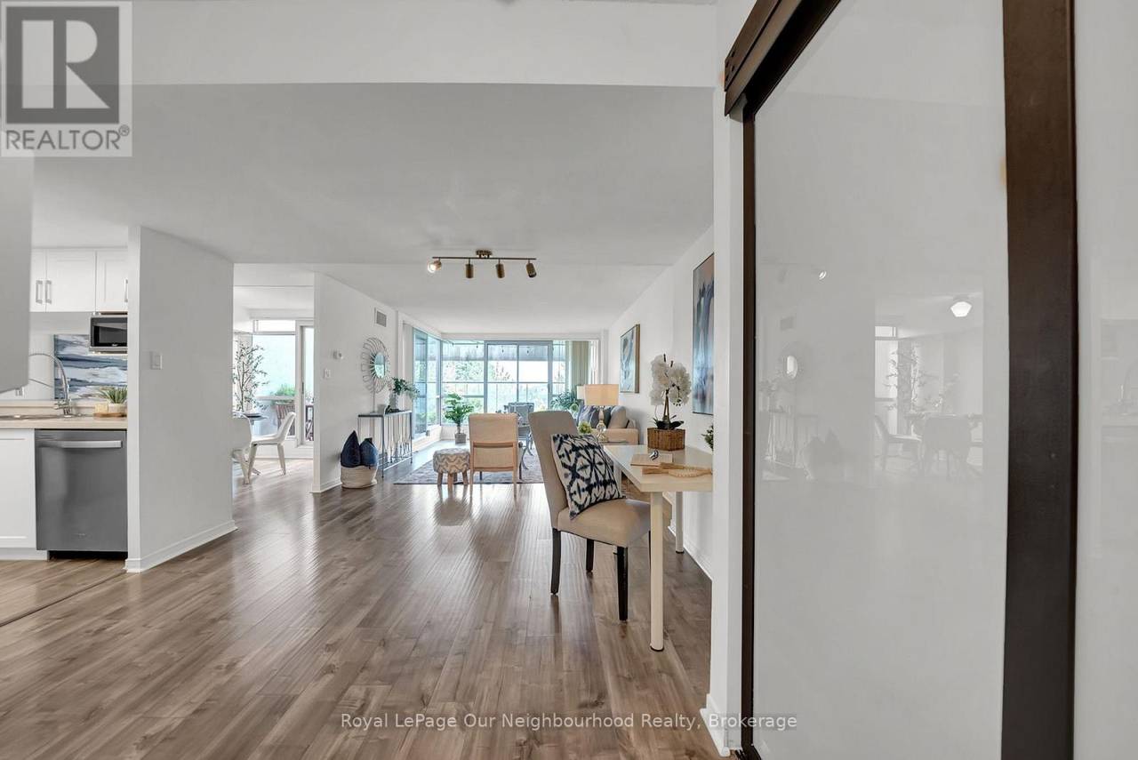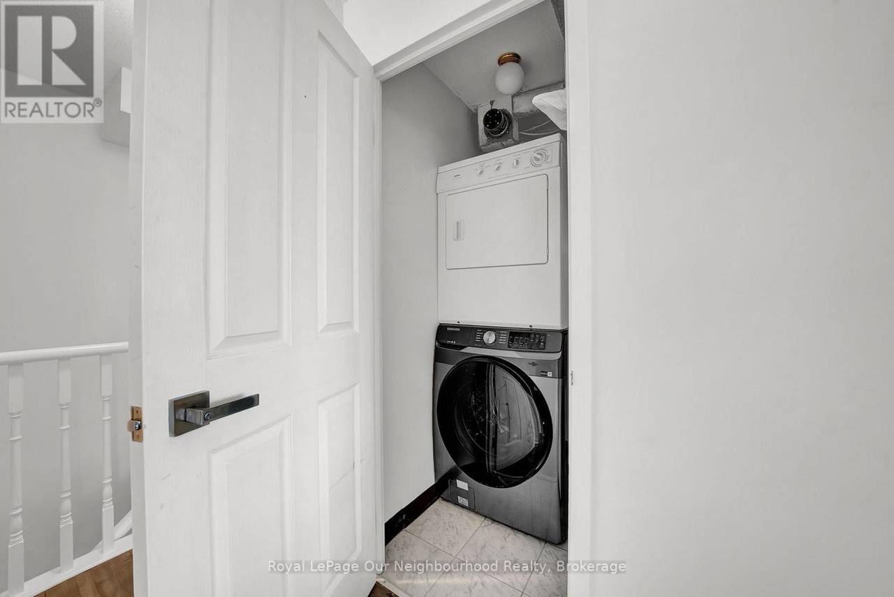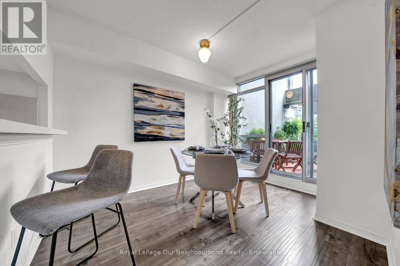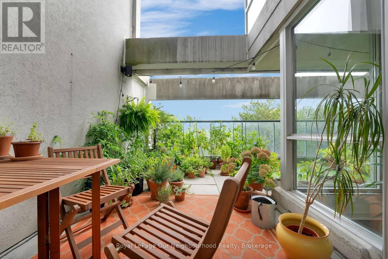 Welcome to 25 Cumberland Lane - a stunning 2-storey condo unit located steps from the waterfront in Ajax. Offering over 1,200 sq. ft. of beautifully updated living space, this home combines the convenience of condo living with the comfort and privacy of a townhouse layout.The main floor features a bright open-concept living and dining area with wall-to-wall windows and sliding doors that lead to your very own expansive private terrace. Talk about a gardeners dream and the perfect outdoor oasis for dining, entertaining, or simply enjoying the serene lake views. The modern kitchen is equipped with white shaker cabinetry, quartz counters, stainless steel appliances, and a convenient breakfast bar, flowing seamlessly into the dining space. Upstairs, the spacious primary retreat offers a sitting area, walk-in closet, and a spa-inspired ensuite with a sleek glass shower. The second bedroom is filled with natural light and ample closet space, with easy access to the second updated bathroom. For added convenience, the home includes in-suite laundry and ample storage throughout. Residents enjoy resort-style amenities such as an indoor pool, hot tub, fitness centre, party room, library/games room, and secure underground parking included with the unit. This prime Ajax location offers the best of both worlds - just steps from Lake Ontario, parks, and trails, while still being minutes from shops, restaurants, transit, and the 401. Experience a lifestyle where every day feels like a getaway in this move-in ready waterfront home. (id:64974)