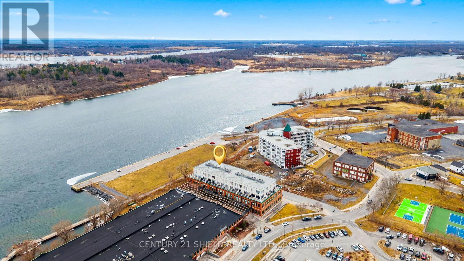 Welcome to "PENTHOUSE LIVING" in Cornwall's iconic Edison Building: A beautifully restored former Canada Cotton Mill celebrated for its rare Thomas Edison connection and industrial heritage. This exceptional 2-storey, 1-bedroom, 2-bath "penthouse maisonette" offers 996 sq ft of bright, airy living space, soaring ceilings, and a layout that feels both elegant and distinctive. With unforgettable western sunset views over the St. Lawrence River, the waterfront walking trails and bike path, walking distance to the marina, this home offers a condo lifestyle that is truly hard to match. As you walk through the main entrance of the building, you'll feel historical whispers and a charismatic vibe that has a tale to tell. After you park in the underground parking, you can store your recreational equipment in your locker and head to the elevator, then right over to your 3rd-floor, beautiful "Maisonette Penthouse". Step inside, you'll be impressed with the soaring 10' ceilings (9'-2nd Flr), sun-filled main living area: It offers an open-concept kitchen, dining & living room. The gourmet kitchen has quartz countertops and a functional prep area with loads of cupboards, seamlessly connected to the LR boasting XL windows (wall to wall) & patio doors open onto a private terrace with glass railings & privacy dividers! The perfect spot to enjoy your fresh morning brew and take in the ever-changing beauty of the water, trees, and sky! Simply... mesmerizing! Take the hardwood stairs to the upper level leading the way to the spacious primary bedroom with a breathtaking view of the St-Lawrence River, a spacious walk-in closet, a full 4 pc ensuite, laundry and storage space. Truly, a one-of-a-kind loft-like feel with architectural charm, rarely found in one of Cornwall's most distinctive heritage conversions, where industrial character, waterfront living, and breathtaking sunsets come together, magically! PLS allow 24 business hours with all offers. (id:64974)