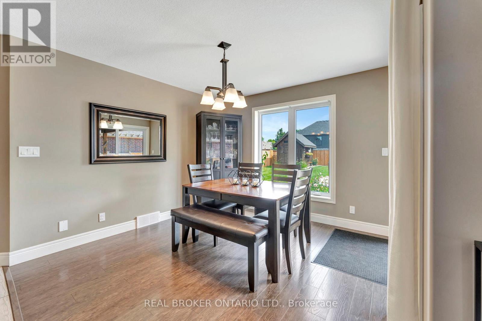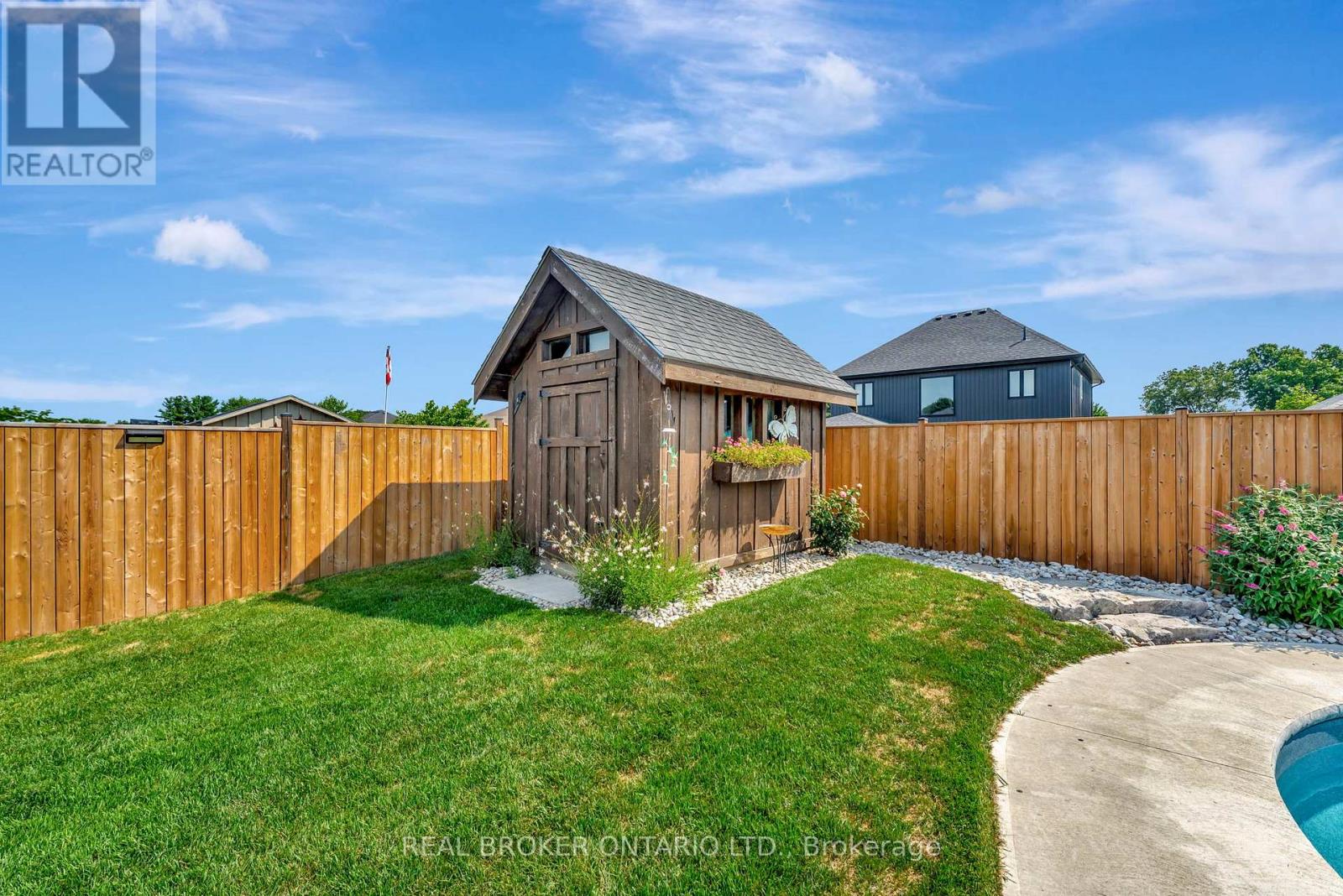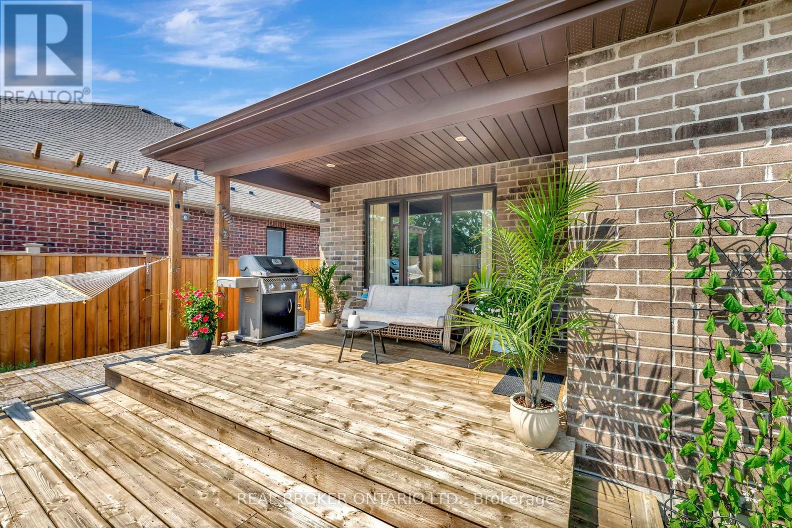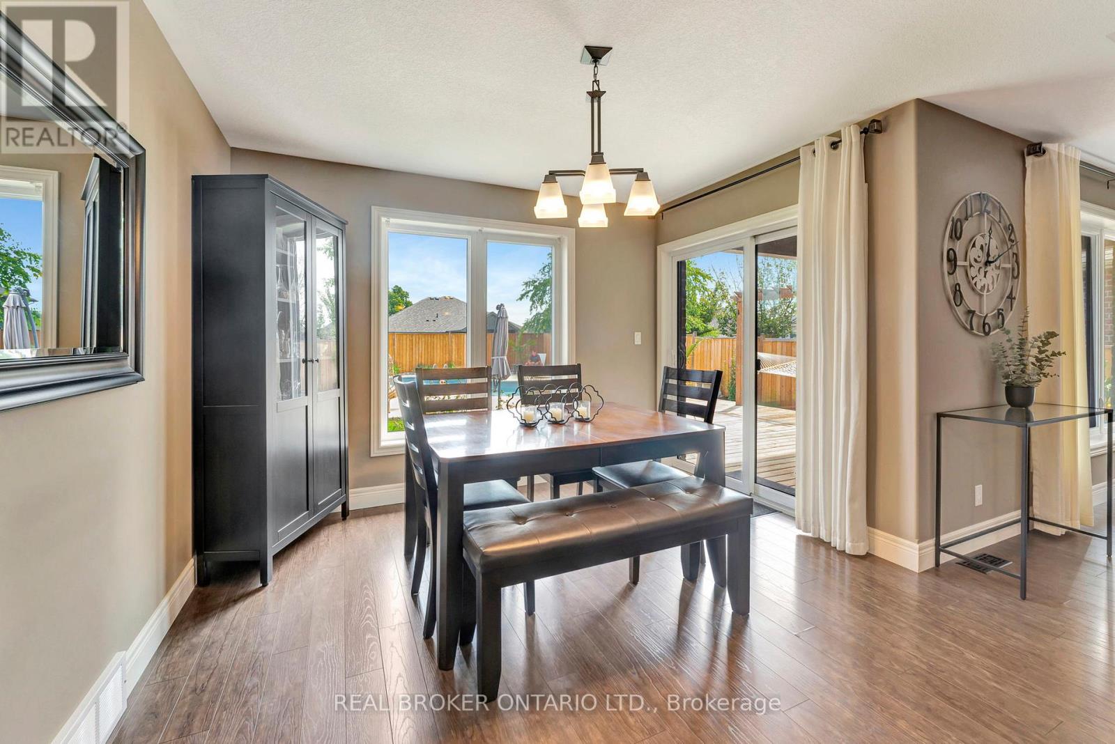 Welcome to this beautifully maintained 2+1 bedroom, 2 bathroom brick bungalow in Delhi, Ontario - offering stylish finishes, functional living space, and your own backyard oasis. Step inside to a welcoming foyer that leads to a bright front bedroom and convenient 4-piece bathroom - perfect for guests or a home office. The open-concept living room is warm and inviting, anchored by a stunning stone fireplace that creates the perfect focal point for relaxing or entertaining. The gorgeous quartz kitchen features rich dark wood cabinetry, a breakfast bar with pendant lighting, and a dedicated dining area with sliding doors leading to your outdoor patio. Just off the kitchen, the spacious primary bedroom retreat offers a luxurious 5-piece ensuite. Main floor laundry adds everyday convenience. Downstairs, the partially finished basement provides a large recreation room and an additional bedroom - ideal for guests, teens, or extended family- plus a bathroom rough-in offering the opportunity to easily add a third full bathroom. Step outside and experience your own private paradise. The expansive wood deck with a built-in hammock extends your living space, while the exposed concrete with stamped edging adds a polished touch. Enjoy summers by the beautiful heated 16x32 South Coast inground pool, all maintained effortlessly with a 4-zone Rain Bird irrigation system. This home blends comfort, style, and outdoor luxury - a true standout in Delhi. (id:64974)