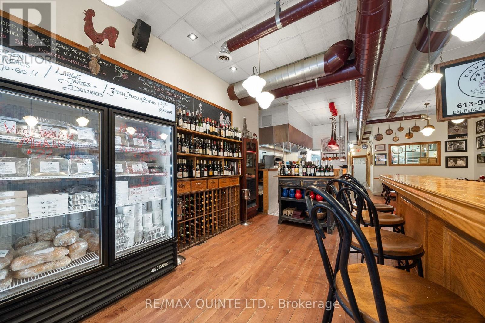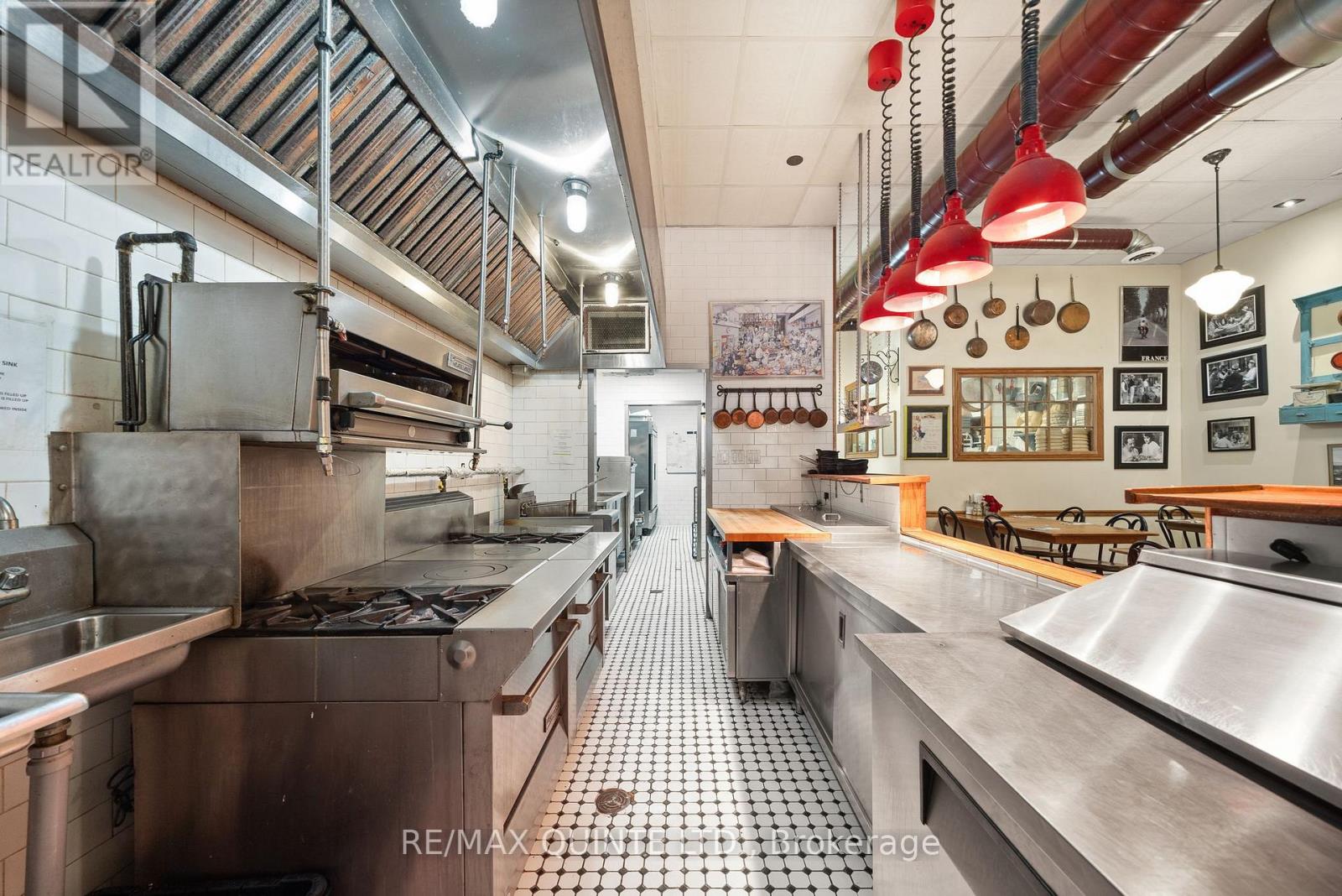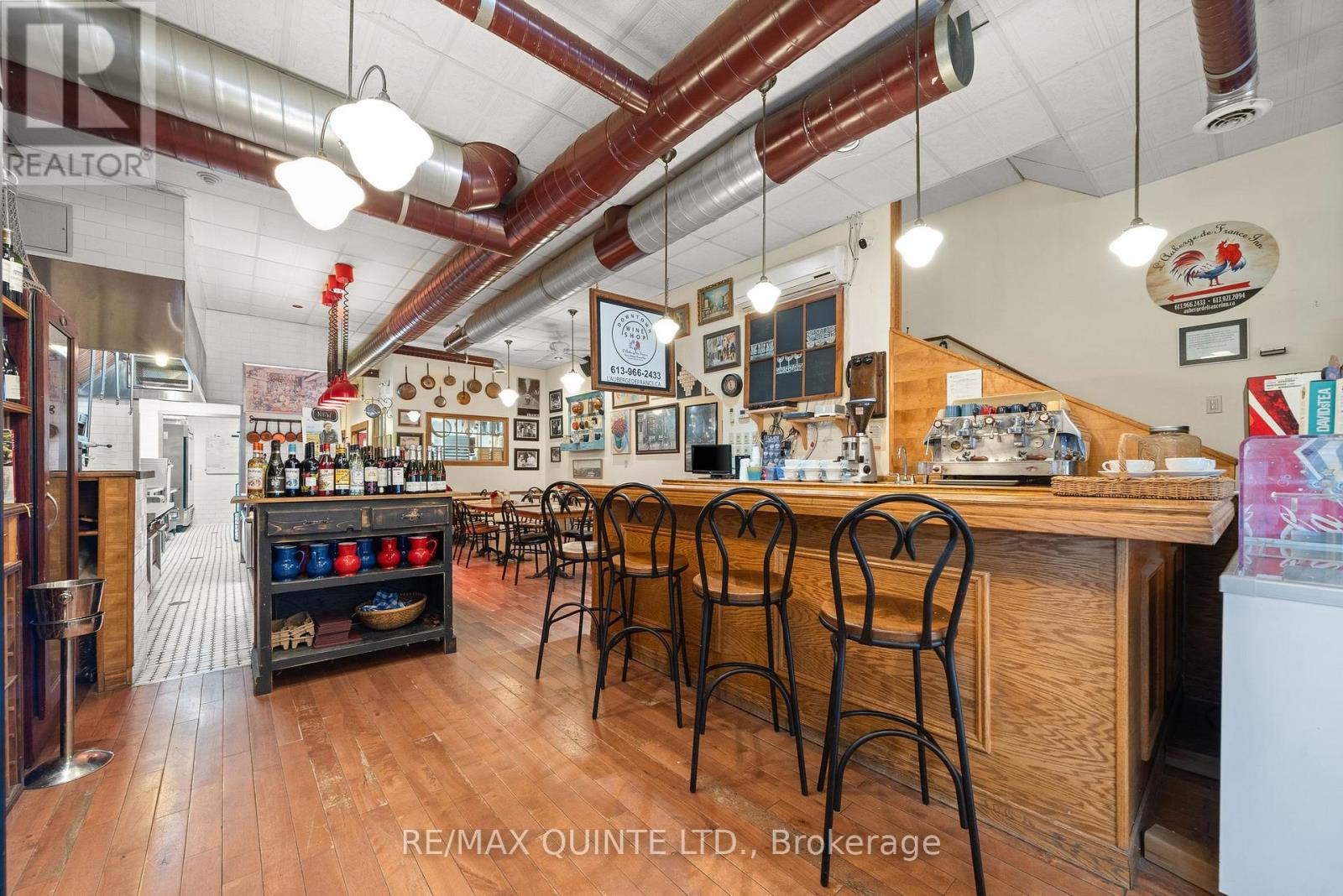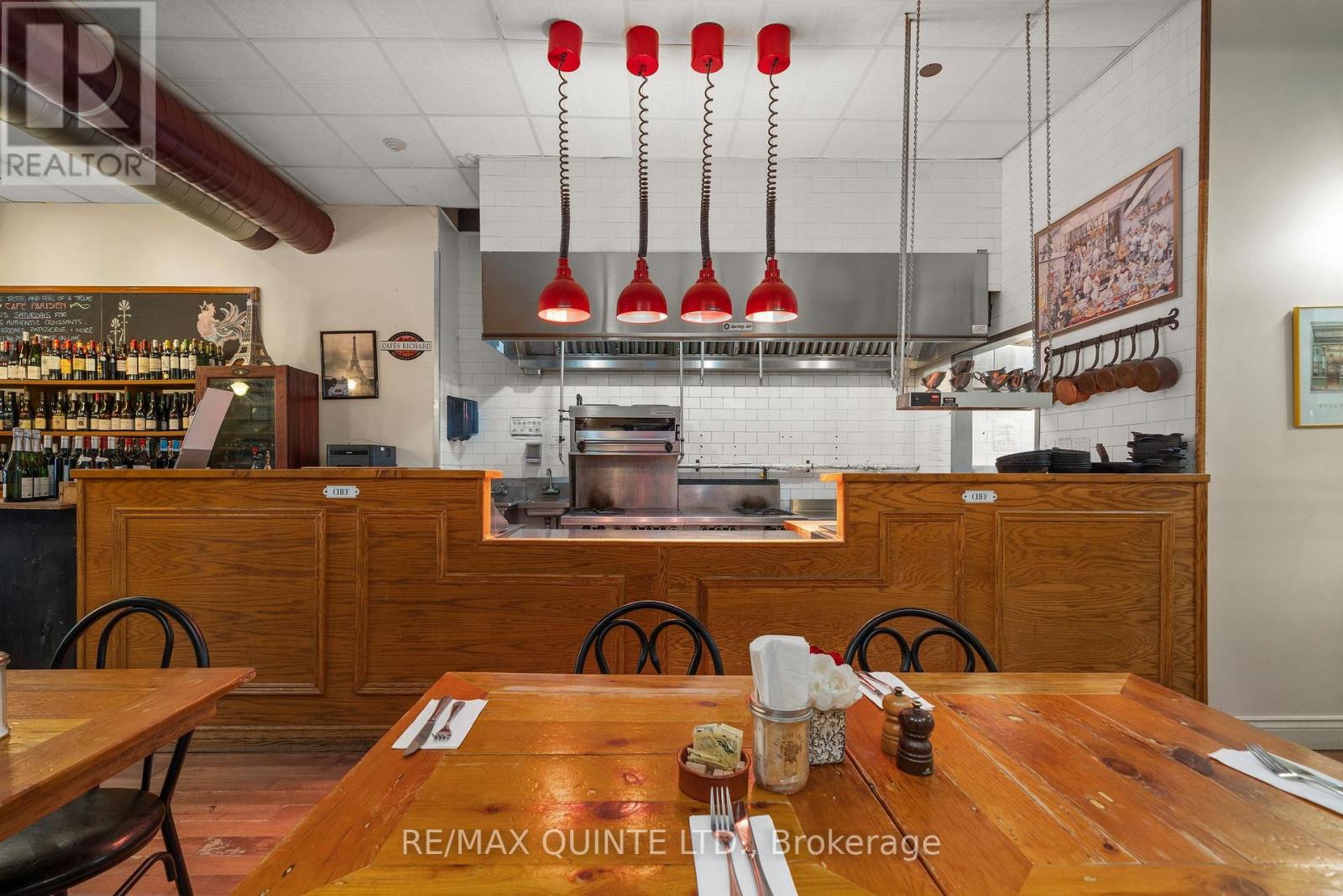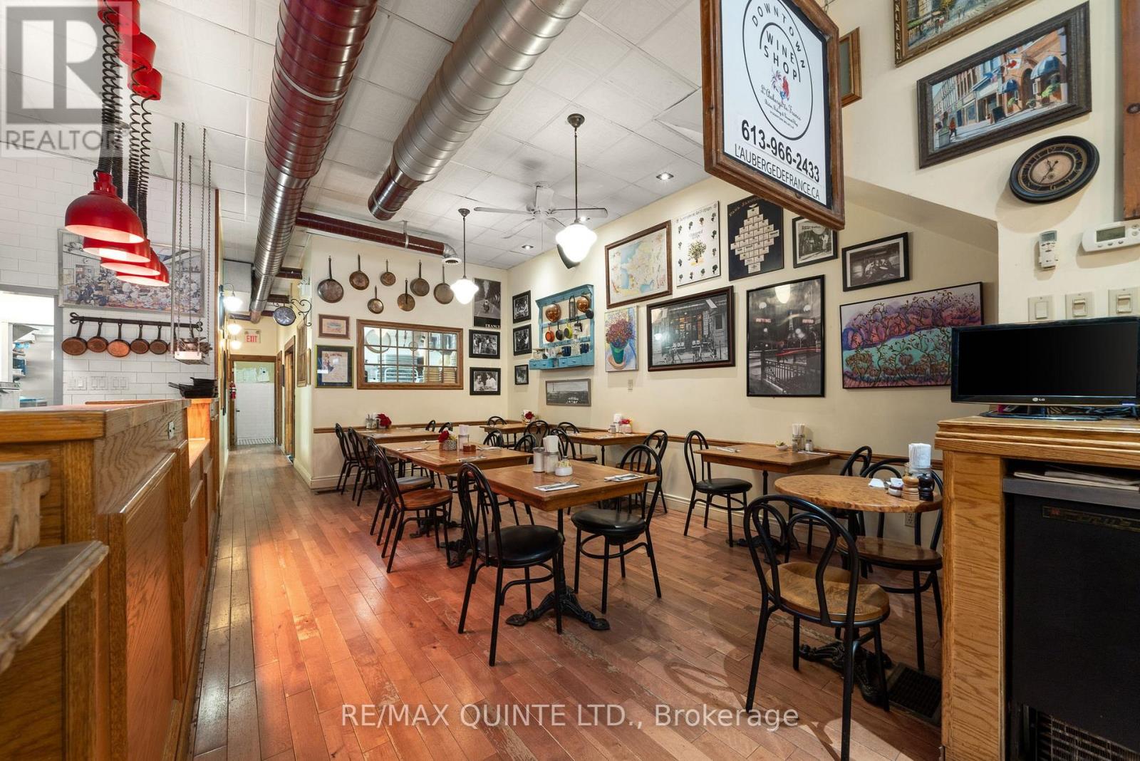 Very rarely does a flawlessly renovated building that contains not one, but two incredible businesses become available for sale. This 6700 square foot building contains not only one of the most well known restaurants in the Quinte area, but also a successful short term rental business known as the The Inn. The first floor is home to a 34 seat gourmet restaurant known as L'Auberge de France that has a thriving dine-in and takeaway business. A bustling front patio in the summertime, which increases the number of seats to 58 , is regularly filled at lunch time and on weekends. Multiple income streams are derived from dine-in, take out, two large freezer cases for make-at-home dinners, and wine sales. In recent years, as the owner has begun to think about retirement, the restaurant's schedule has been reduced to 4 days a week with only lunch service each day. This represents a HUGE UPSIDE OPPORTUNITY for a chef or restauranteur who wants to open in the evenings for dinner, stay open on additional weekdays, or cater events. One only needs to stop by during any lunch hour or Saturday morning to see the huge demand for additional hours that is present here among a large and loyal customer base. The layout of the main kitchen and the lengthy list of equipment included in this sale is a restaurateurs dream that would work well for any style of food or restaurant. An open concept layout lets the dining room and the Chef's kitchen blend seamlessly and function at maximum efficiency. The top two floors have been transformed into a two bedroom, two bath, 4000 sq ft one a kind AirBnb is so busy it is already booking late into 2026. As with the rest of the building, the seller undertook a full renovation down to the studs that has resulted in the creation of a one of a kind space that will provide income for years to come. On the third floor there is an additional space with its own private entrance that could potentially be converted into a second AirBnb or an owners suite. (id:64974)