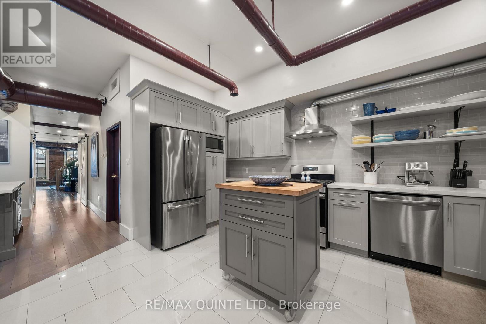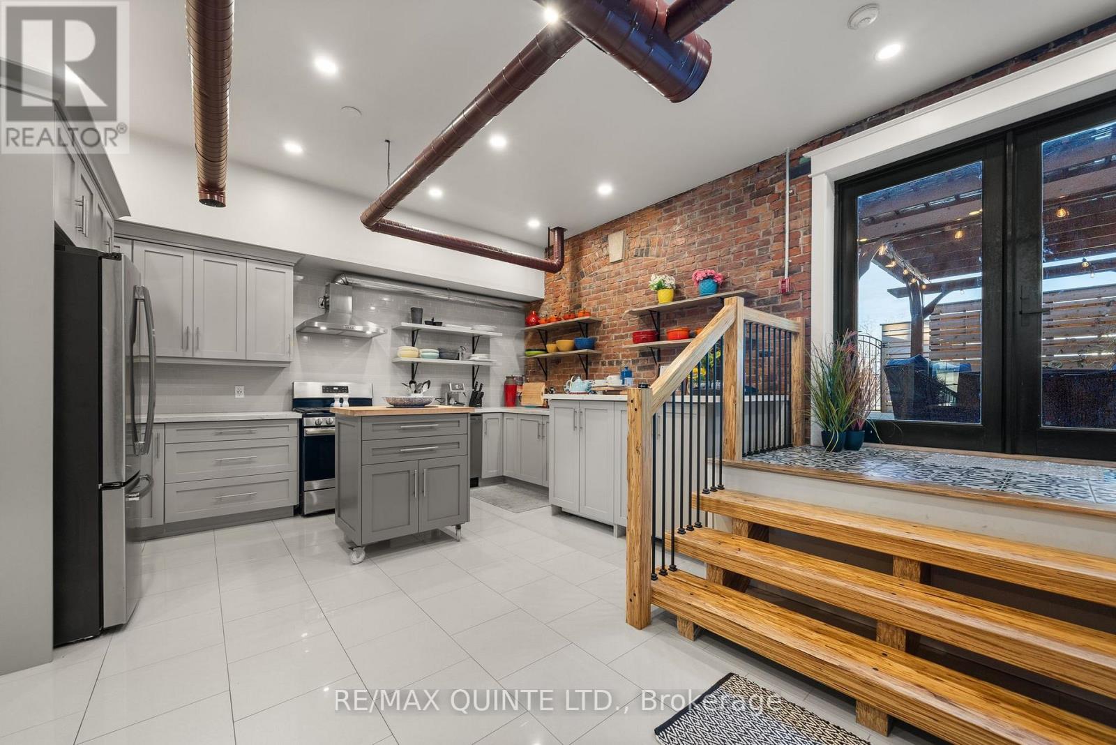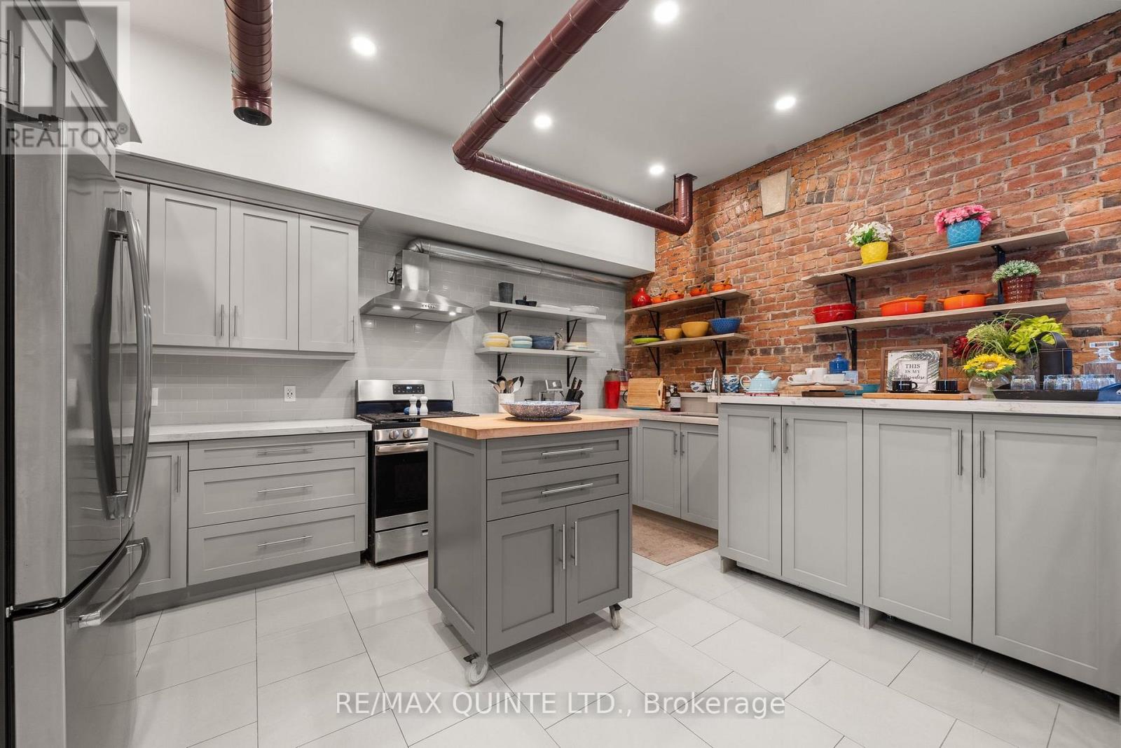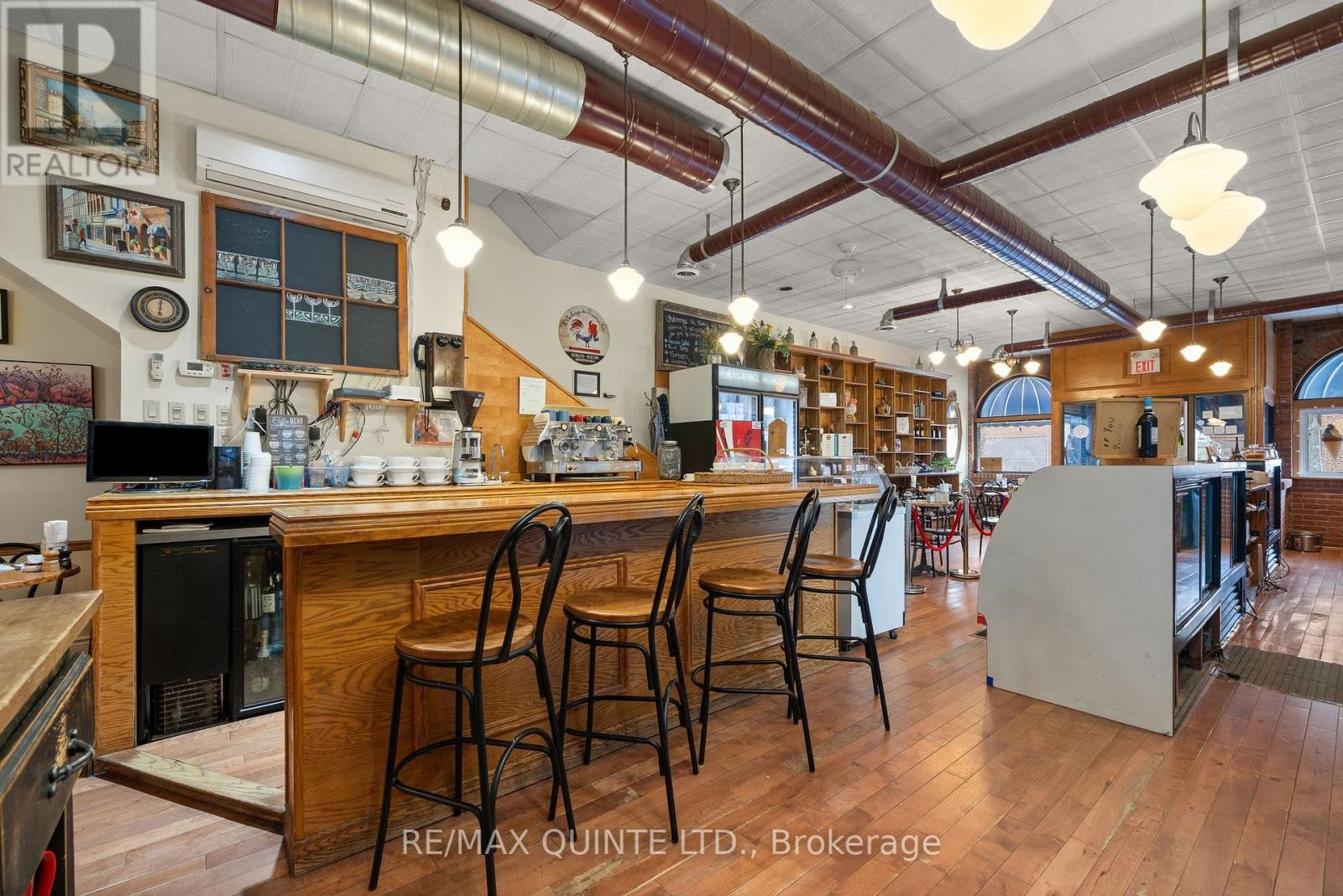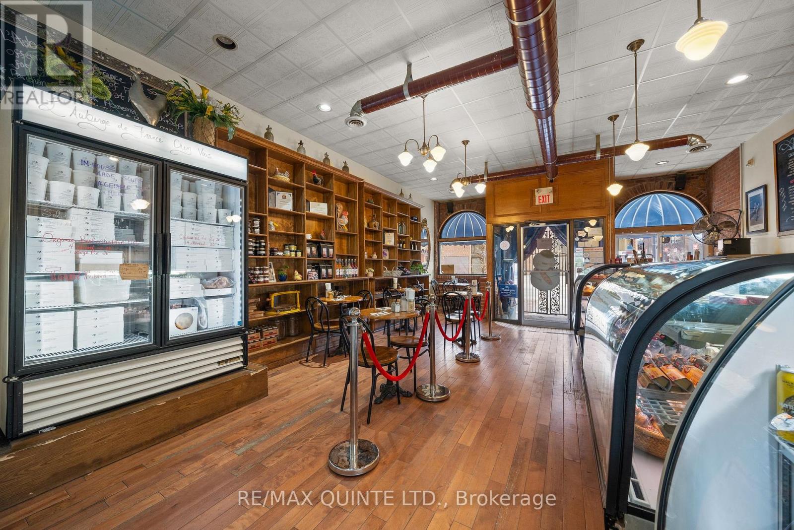 Very rarely does a flawlessly renovated building that contains not one, but two incredible businesses become available for sale. This 6700 square foot building contains not only one of the most well known restaurants in the Quinte area, but also a successful short term rental business known as the The Inn. The first floor is home to a 34 seat gourmet restaurant known as L'Auberge de France that has a thriving dine-in and takeaway business. A bustling front patio in the summertime, which increases the number of seats to 58 , is regularly filled at lunch time and on weekends. Multiple income streams are derived from dine-in, take out, two large freezer cases for make-at-home dinners, and wine sales. In recent years, as the owner has begun to think about retirement, the restaurant's schedule has been reduced to 4 days a week with only lunch service each day. This represents a HUGE UPSIDE OPPORTUNITY for a chef or restauranteur who wants to open in the evenings for dinner, stay open on additional weekdays, or cater events. One only needs to stop by during any lunch hour or Saturday morning to see the huge demand for additional hours that is present here among a large and loyal customer base. The layout of the main kitchen and the lengthy list of equipment included in this sale is a restaurateurs dream that would work well for any style of food or restaurant. An open concept layout lets the dining room and the Chef's kitchen blend seamlessly and function at maximum efficiency. The top two floors have been transformed into a two bedroom, two bath, 4000 sq ft one a kind AirBnb is so busy it is already booking late into 2026. As with the rest of the building, the seller undertook a full renovation down to the studs that has resulted in the creation of a one of a kind space that will provide income for years to come. On the third floor there is an additional space with its own private entrance that could potentially be converted into a second AirBnb or an owners suite. (id:64974)