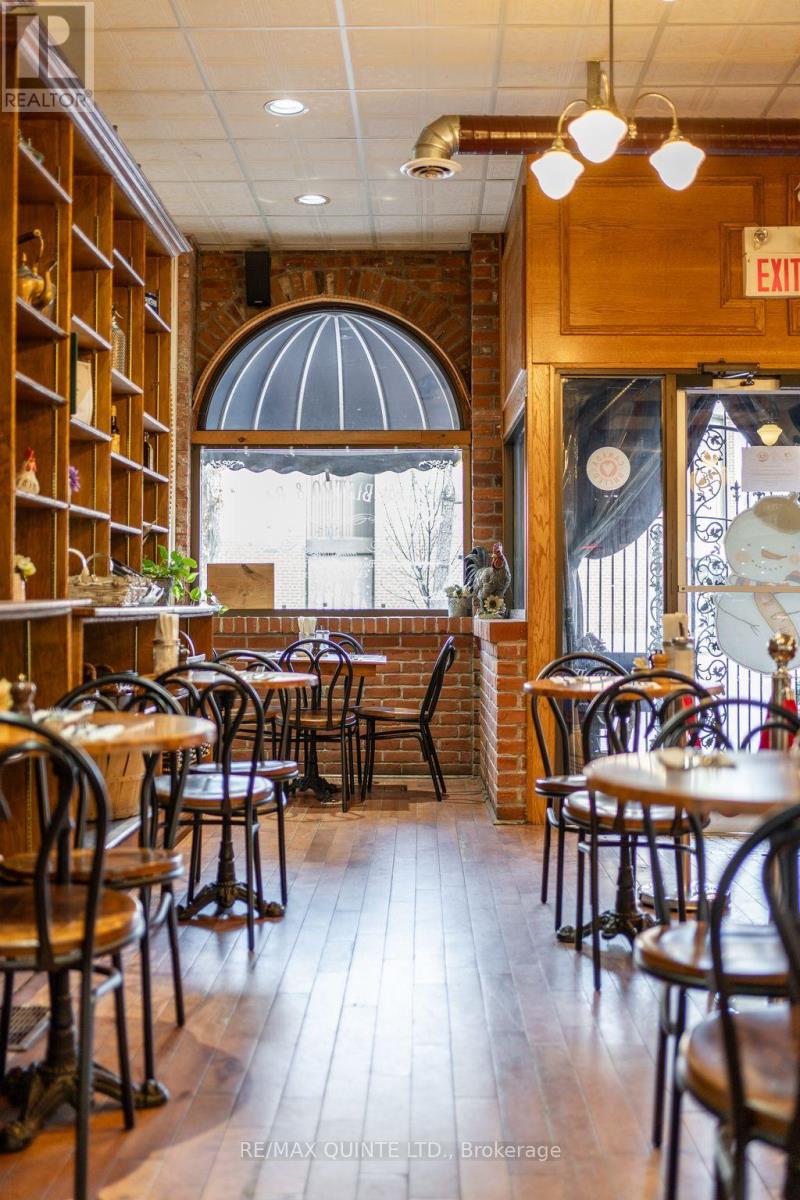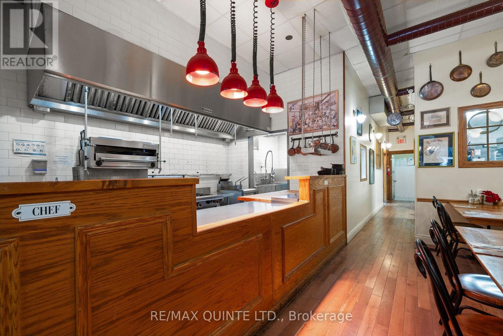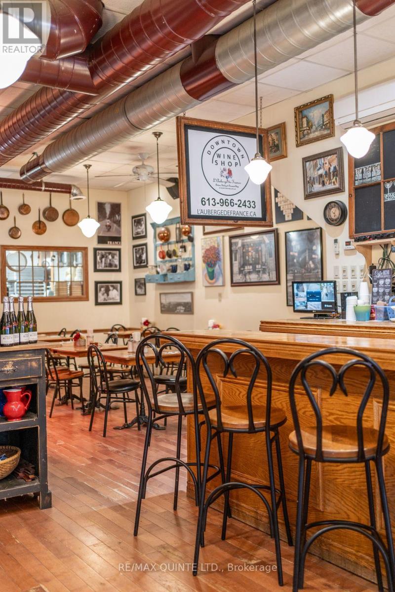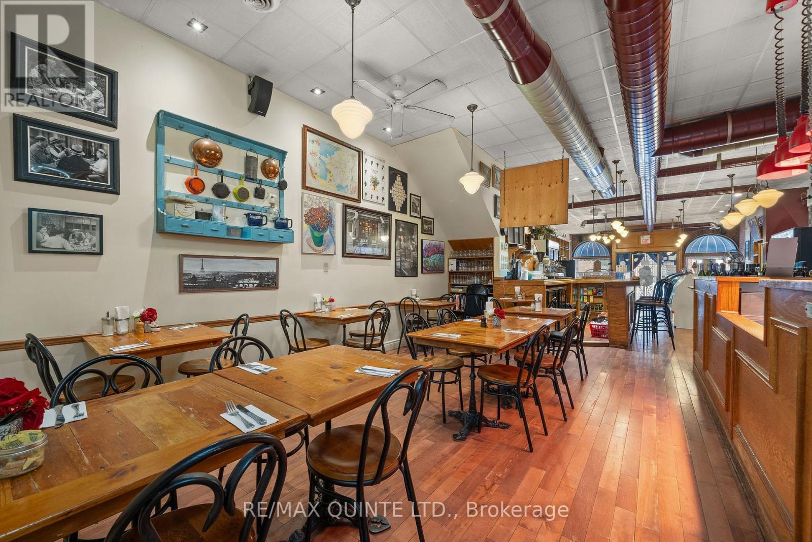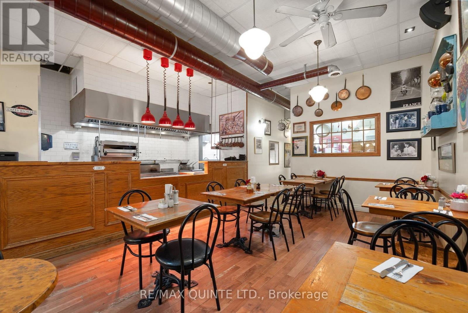 AN EXCEPTIONAL OPPORTUNITY TO ACQUIRE ONE OF THE MOST WELL KNOWN AND BELOVED RESTAURANTS IN THE QUINTE AREA!!! L'Auberge de France is a thriving gourmet restaurant with a loyal, established customer base and multiple proven income streams - offered here as a complete business and equipment package. Currently operating four days per week with lunch service only, the restaurant seats 34 guests indoors and expands to 58 seats with a bustling front patio during the summer months. Revenue is generated through multiple channels: dine-in service, takeout, two large freezer cases offering make-at-home prepared dinners, and wine sales. The reduced schedule reflects the current owner's transition toward retirement - not a lack of demand. The loyal customer base consistently demonstrates appetite for expanded hours, making this a significant upside opportunity for a chef or restaurateur looking to grow. Opening for dinner service, adding weekday hours, or introducing event catering could substantially increase revenue from day one. The kitchen is a restaurateur's dream. The lengthy list of included equipment is suited to virtually any cuisine style or restaurant concept. An open-concept layout allows the dining room and chef's kitchen to blend seamlessly, maximizing both efficiency and guest experience. L'Auberge de France has built something rare - a strong brand, a fiercely loyal following, and infrastructure ready to support significant growth. A new owner with the vision to expand hours or services would be stepping into an immediately productive operation with years of goodwill already established in the community. ***Additional information including an equipment list, inventory, and income and expenses is available upon request and after singing a confidentiality form*** (id:64974)