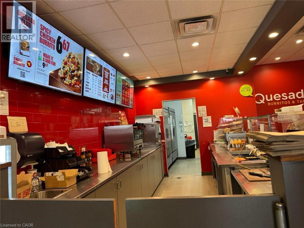 Exceptional opportunity to own a well-established Quesada Burritos & Tacos franchise at one of Mississauga’s busiest intersections—Winston Churchill Blvd & Argentia Rd. This approx. 1,450 sq. ft. location offers a secure 5-year lease with automatic renewal and strong long-term potential. Surrounded by major retailers including Walmart, Costco, Winners, Homesense, and Shoppers Drug Mart, the plaza benefits from constant daily foot traffic and excellent visibility. Successfully operating for over 10 years, this turnkey business offers stable income, strong brand recognition, and a loyal customer base. Monthly rent is $7,867 (including TMI & taxes) with reasonable franchise fees (6% royalty + 2% advertising). A rare opportunity to step into a proven, profitable business. (id:64974)