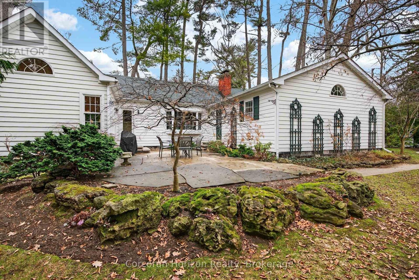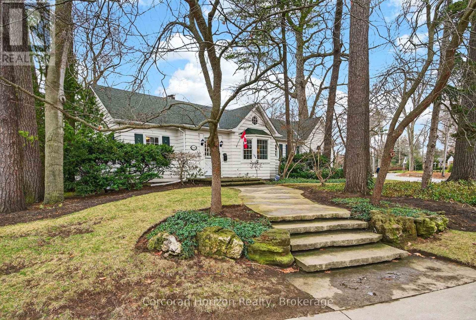 Tucked into one of Roseland's most coveted enclaves, this exceptional corner property offers a rare opportunity to secure a meaningful foothold in Burlington's premier lakeside community-defined by its mature canopy, estate homes, and access to top-ranked schools including John T. Tuck Public School and Nelson High School. Set on an expansive 101 x 130 ft lot and surrounded by multi-million dollar estates, this property is as compelling for what it is today as for what it could become. The residence itself sprawls over 2,300 sq ft on the main level and has been meticulously maintained by the same family for nearly four decades-an uncommon level of stewardship that speaks throughout. Inside, the home carries a quiet sense of character and scale: soaring ceilings in the principal rooms, a thoughtfully updated kitchen with stone countertops and Miele appliances, wood sash windows, and a generously proportioned primary suite. Outdoors, a private, sheltered patio is seamlessly integrated into the architecture of the home, complemented by mature landscaping, irrigation, a detached garage, and reliable Generac backup power. The home is move-in ready today, while also offering clear and immediate upside-considered aesthetic updates would elevate it meaningfully. For those thinking longer term, the lot and setting provide an exceptional canvas for a future custom residence. This fabulous location is moments to the lake, parks, and the amenities of downtown Burlington, also with convenient access to major routes. Priced with intention, this is a rare chance to enter Roseland at a level that reflects both current value and future potential-an offering that is becoming increasingly difficult to find. (id:64974)