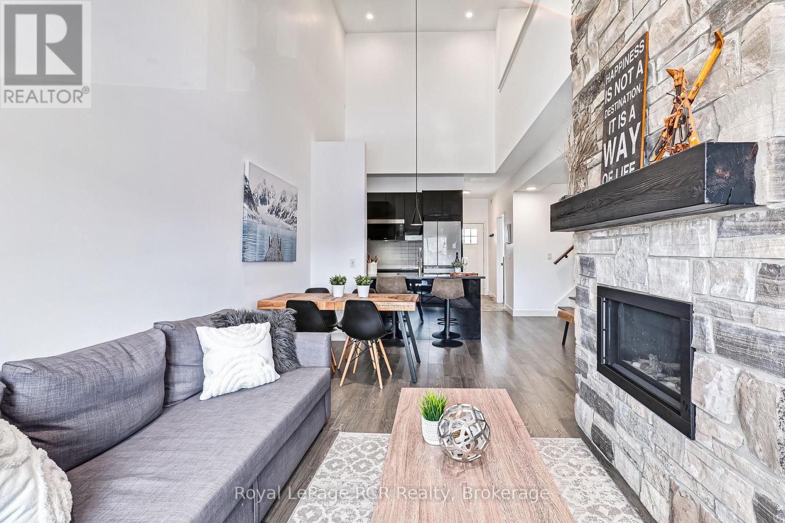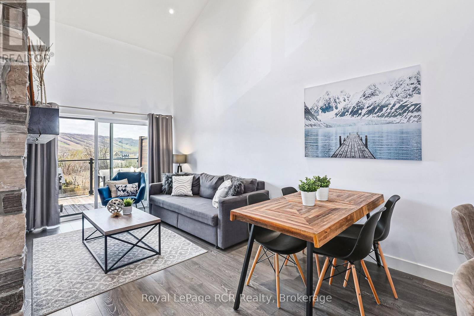 Welcome to 12 Beckwith Lane, Unit 305, a stunning third floor loft in the sought-after Mountain House community with breathtaking views of Blue Mountain. Being sold fully turn-key with all furnishings included, this spacious three-bedroom, two-bathroom condo in the Aspire building offers one of the largest floor plans in the complex. The open-concept living space features soaring cathedral ceilings, a cozy stone fireplace, and expansive windows that capture spectacular mountain views of sparkling ski hills in winter and lush greenery in the warmer months. Mountain House residents enjoy exclusive access to Zephyr Springs, the community's Nordic-inspired amenity centre with year-round heated outdoor pools, sauna, fitness centre, and yoga/relaxation spaces. The Après Lounge, with indoor and outdoor fireplaces and panoramic mountain views, is perfect for gathering with friends and family. Ideally located steps to the Scandinave Spa and just minutes to Blue Mountain Village, golf, beaches, and downtown Collingwood, this is the perfect opportunity to enjoy four-season living in one of the area's most desirable communities. (id:64974)